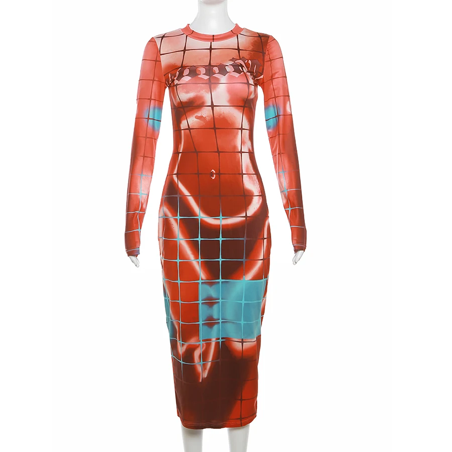 33548 Body 3D Print Maxi Long dresses Lady Women Elegant
