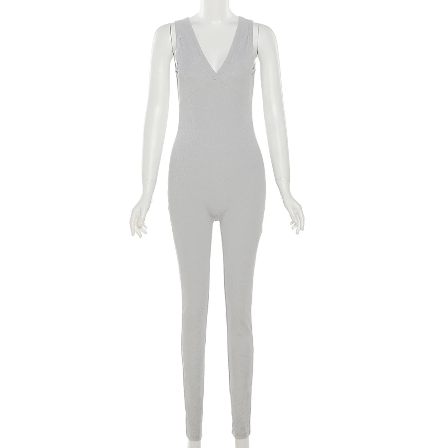 33611 Summer 2023 Rib Sleeveless Jumpsuit Workout Wear Jumpsuits Women