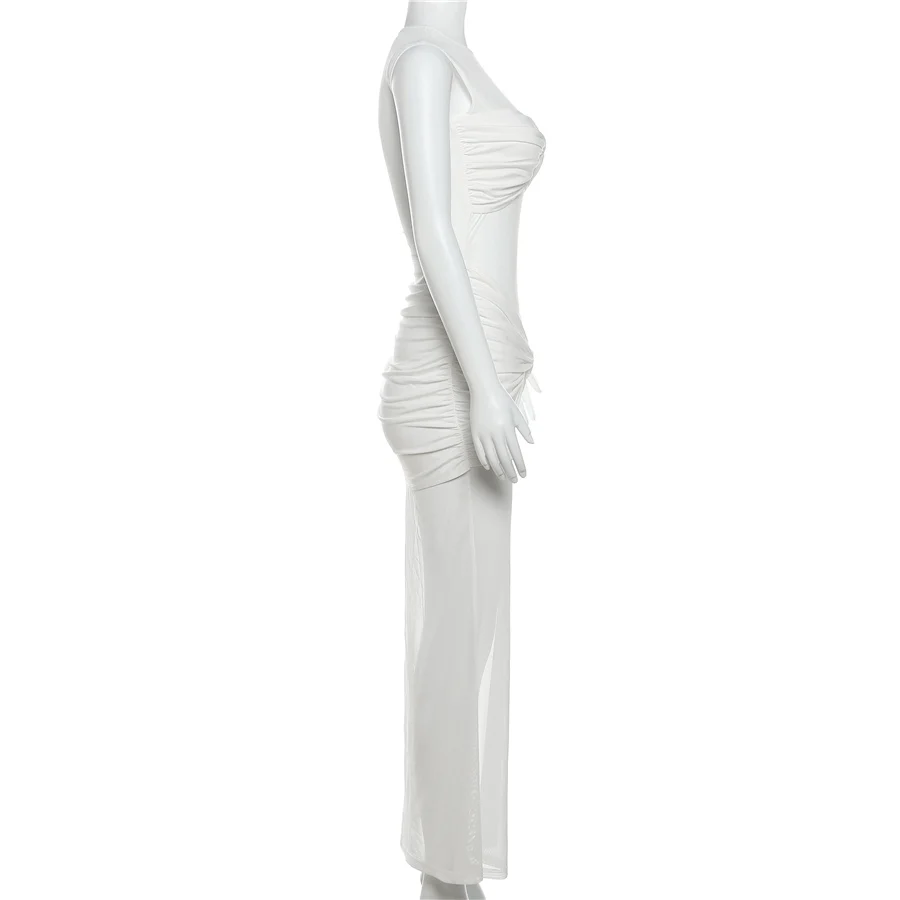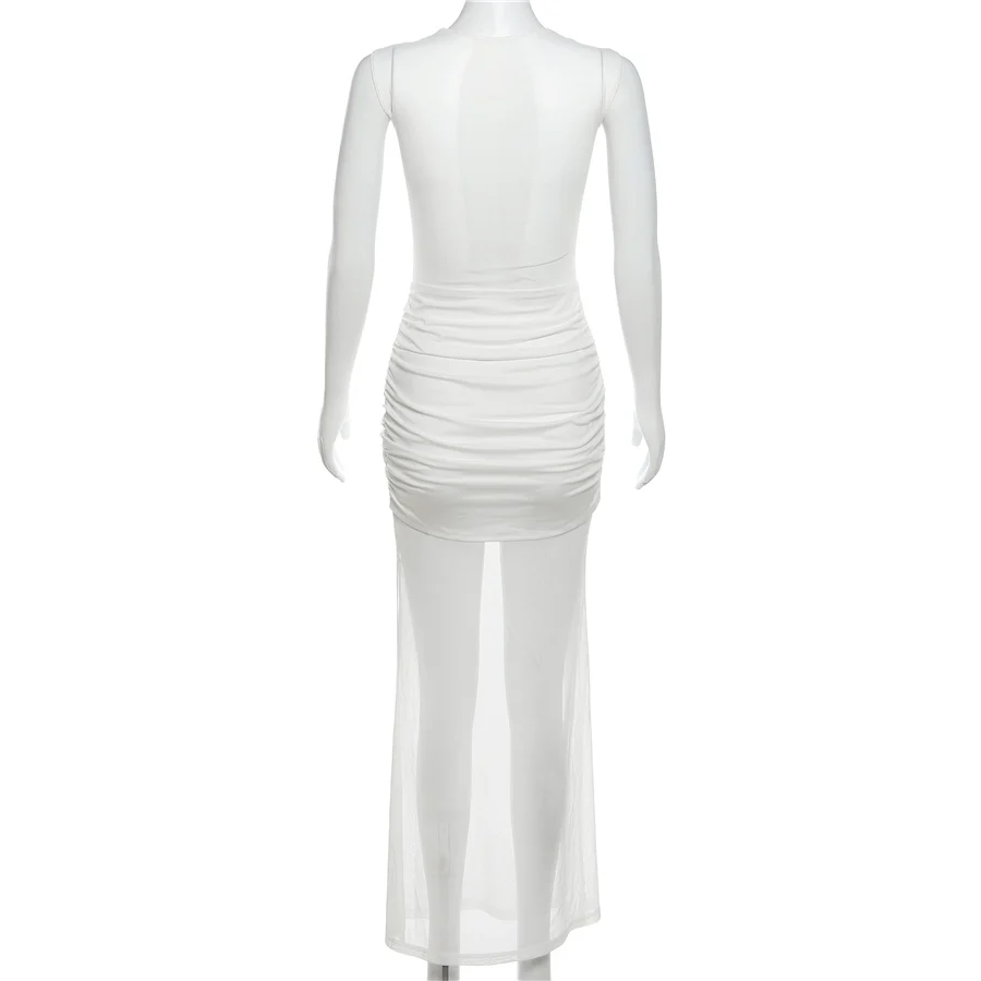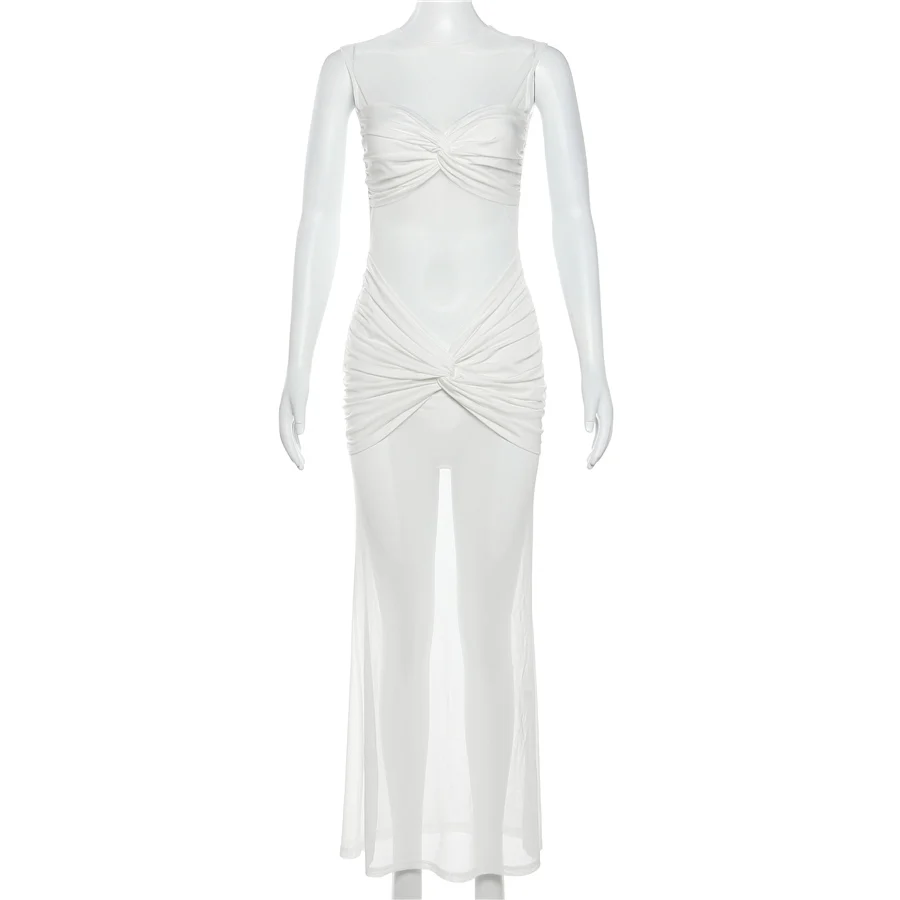 33649 Vintage Mesh Maxi Dress Holiday Beach Wear Dresses Women Lady Elegant