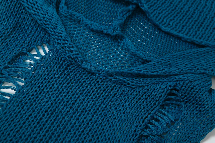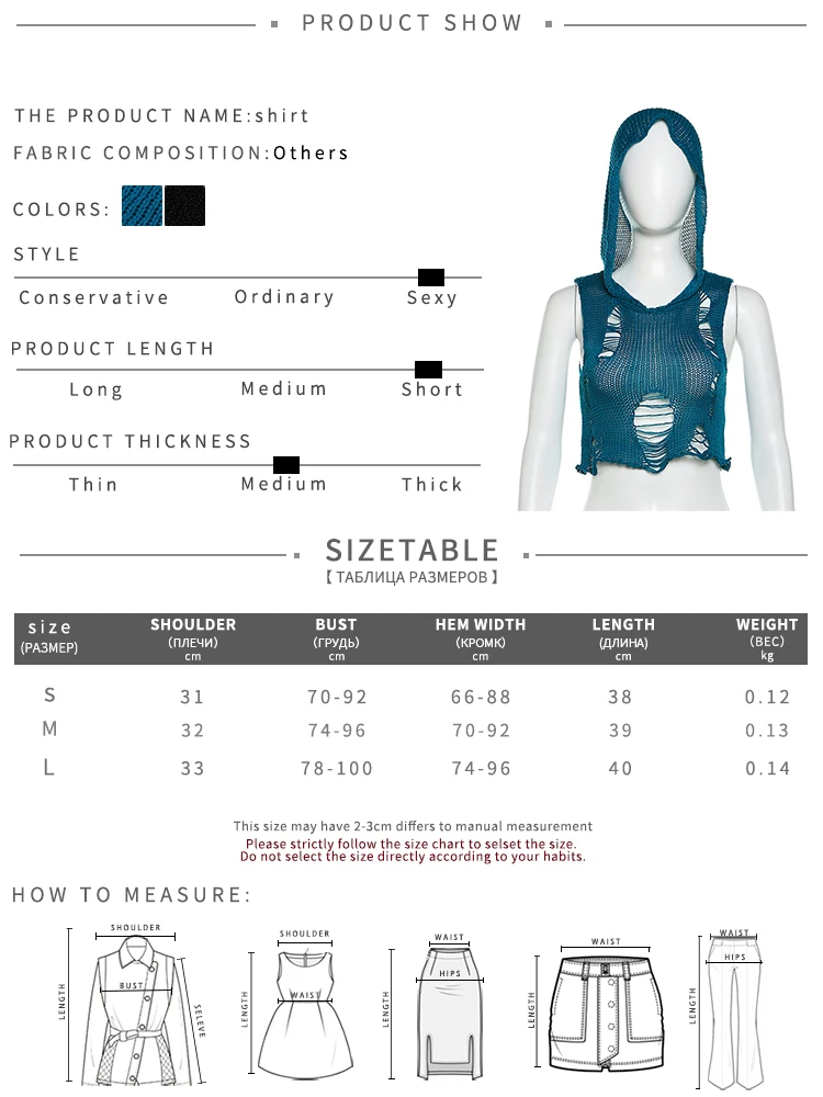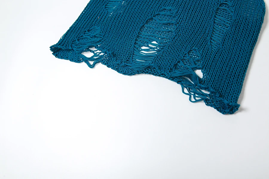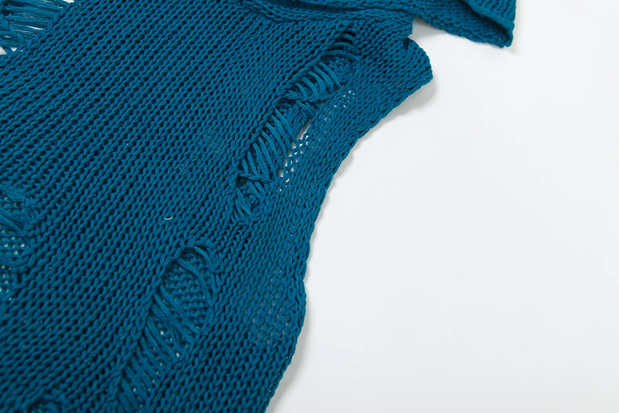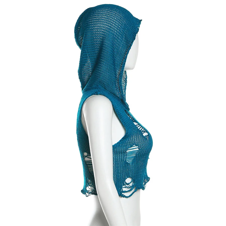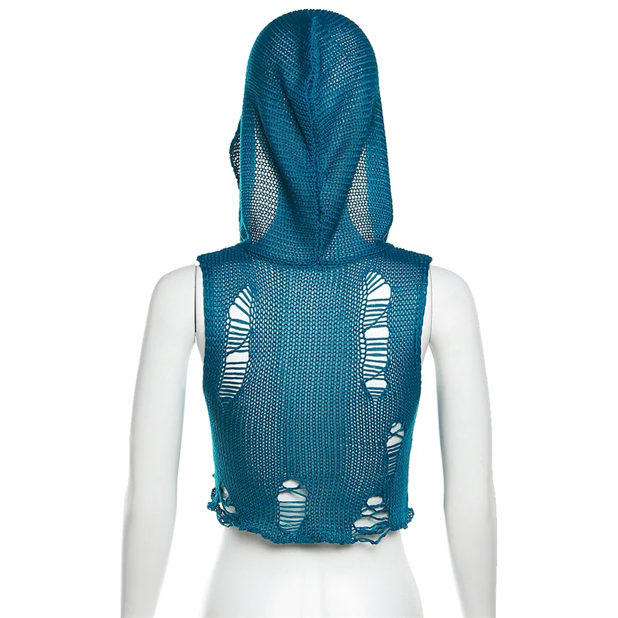 34304 Fashion Hood Knit Shirt Holes Tank Top Women