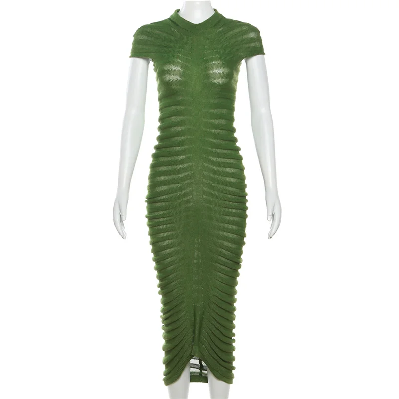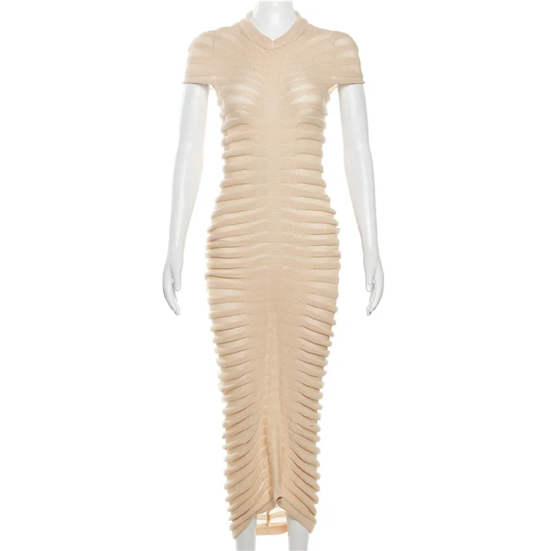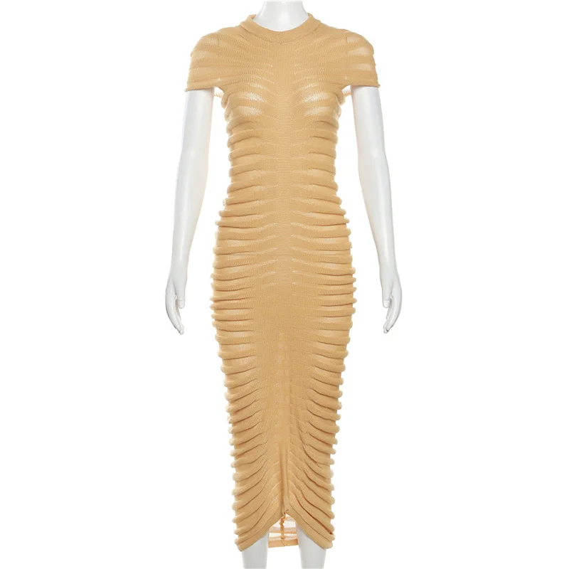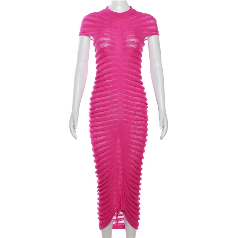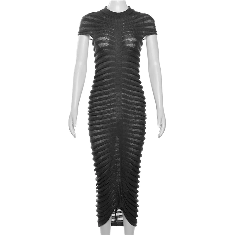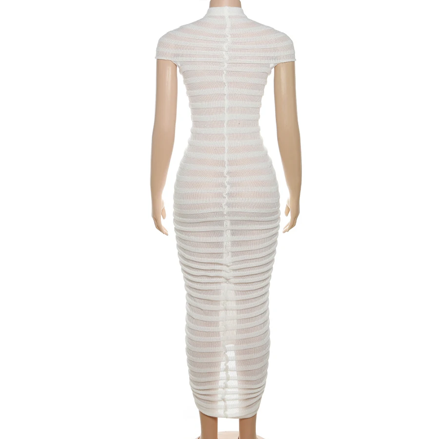 34607 Stripes See Through Dress Ladies Elegant Maxi Dresses Women Casual