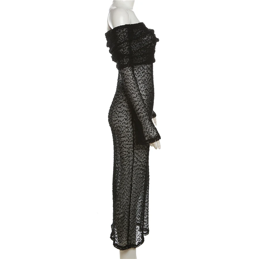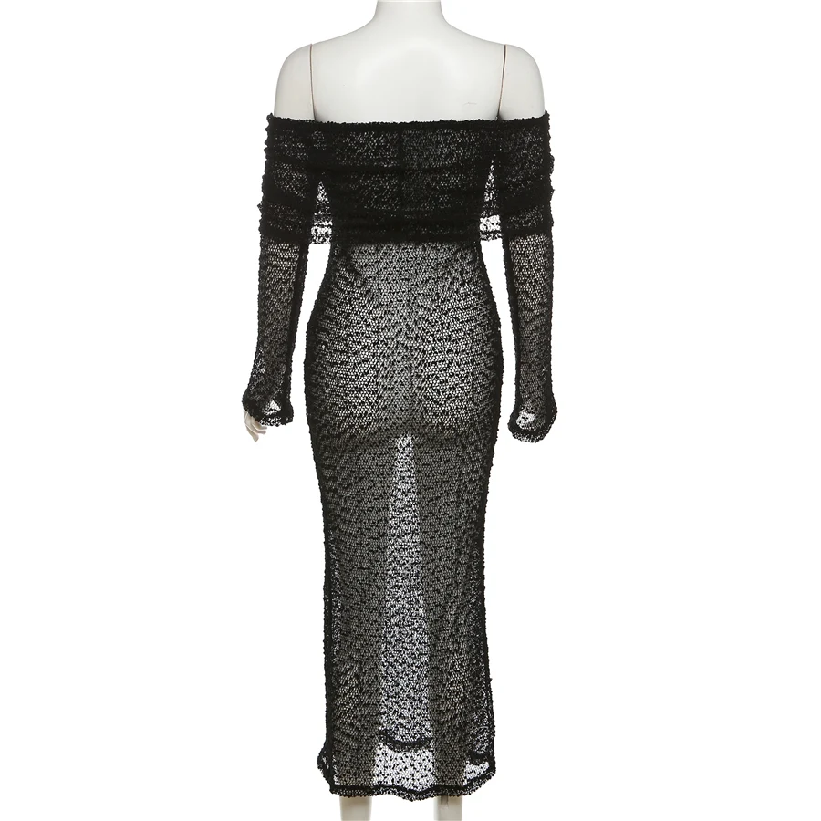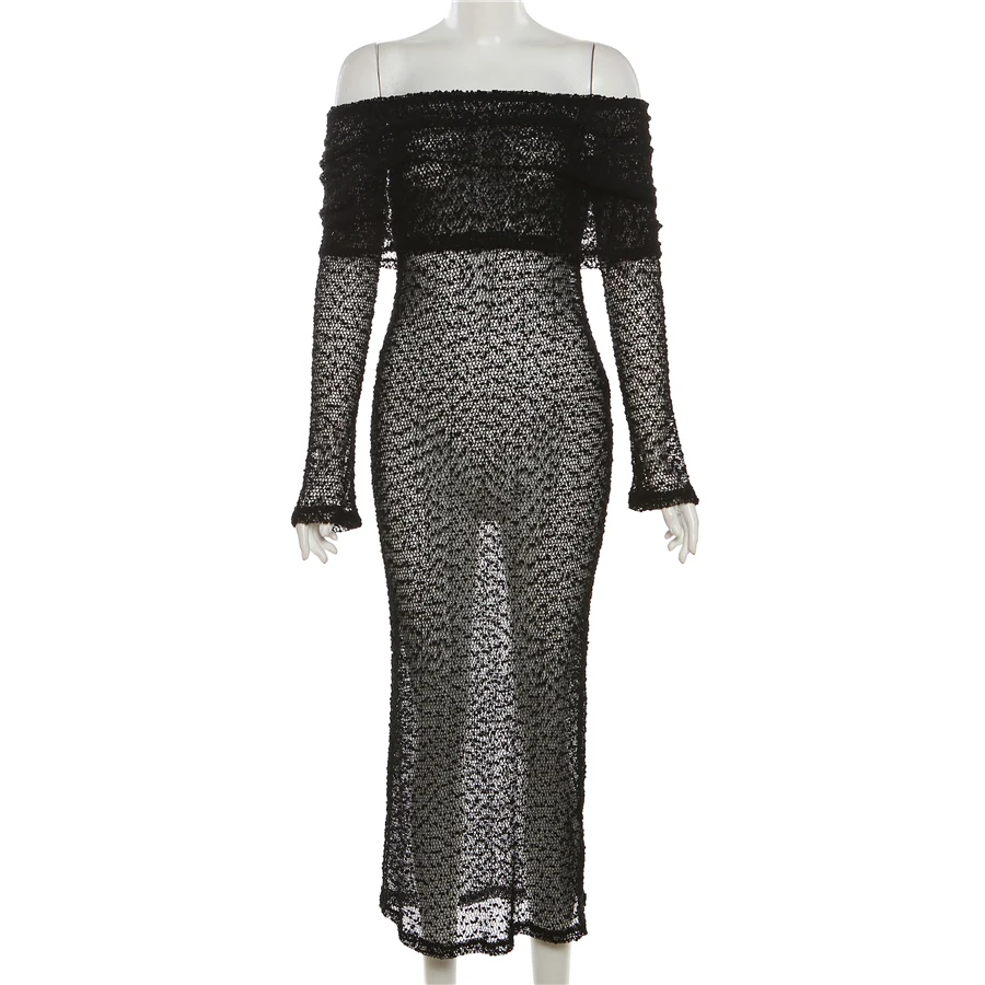 35007 Off Shoulder See Through Maxi Dress Ladies Elegant Dresses Women Sexy
