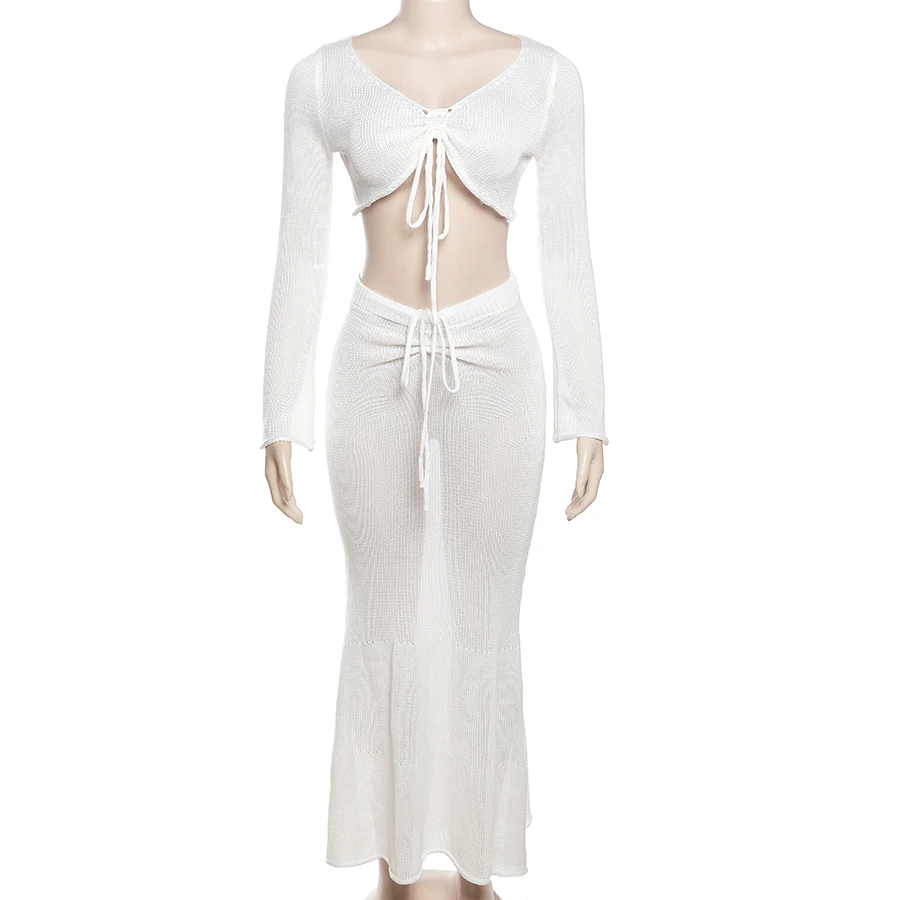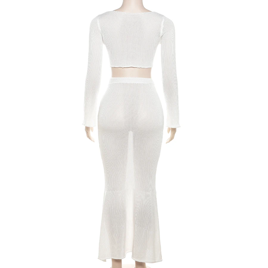 35136 Fashion Knit Women's Set Elegant Ladies 2 Piece Skirt Set