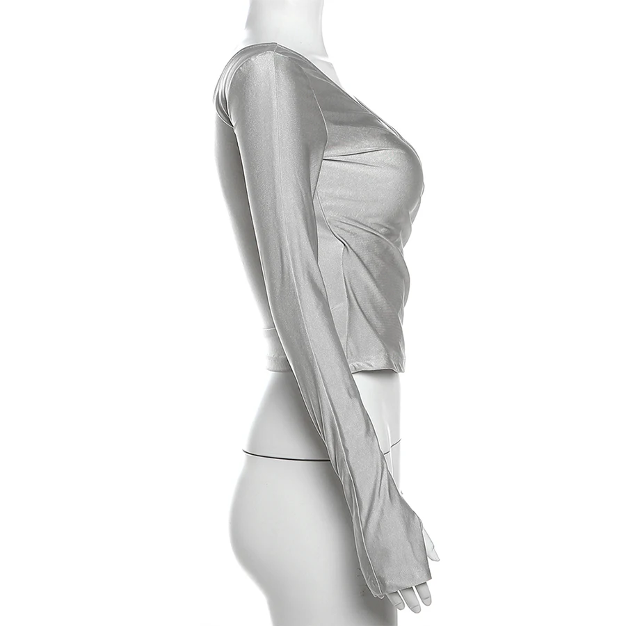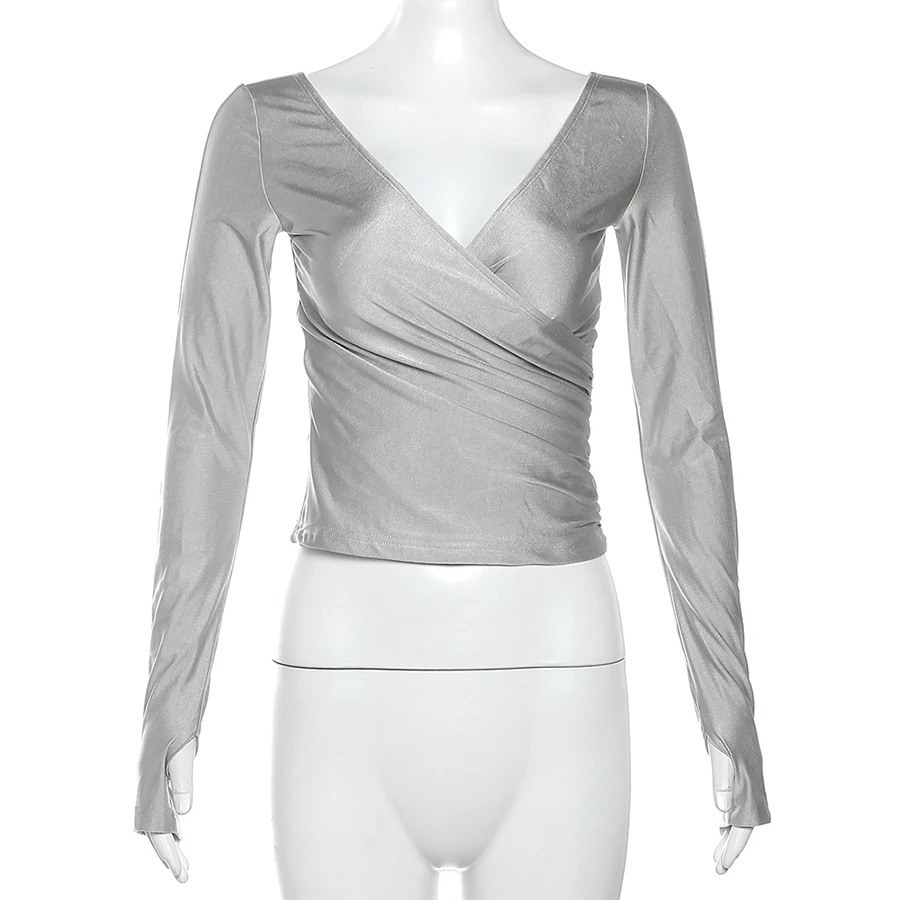 35151 Fall 2023 V-neck Shirt Ladies Elegant Streetwear Women Tees