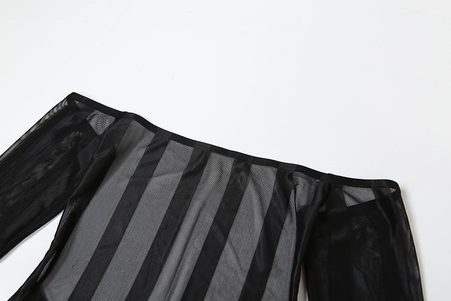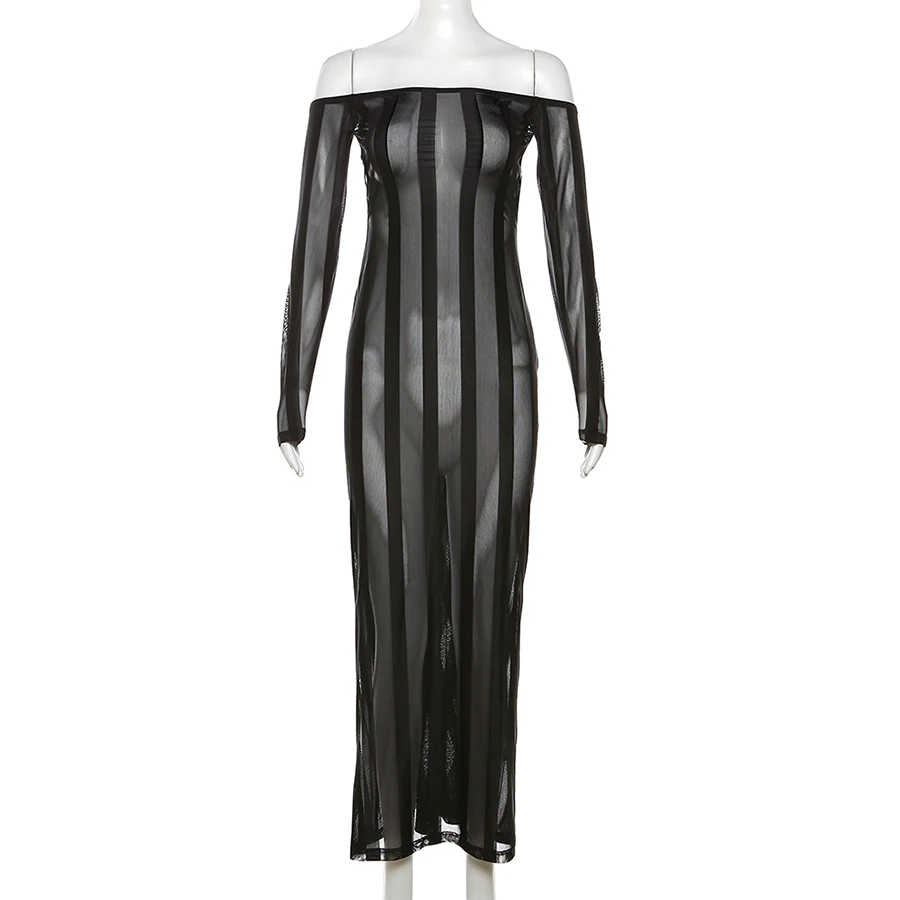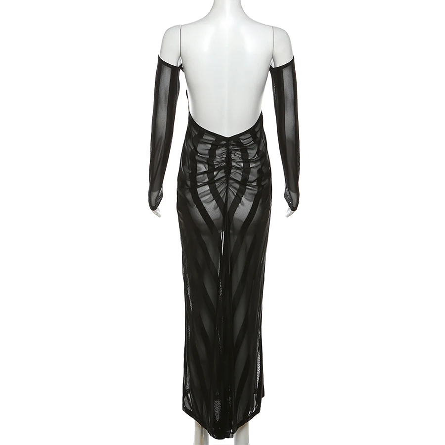 35250 Mesh See Through Maxi Dress Ladies Elegant Patchwork Dresses Women Sexy