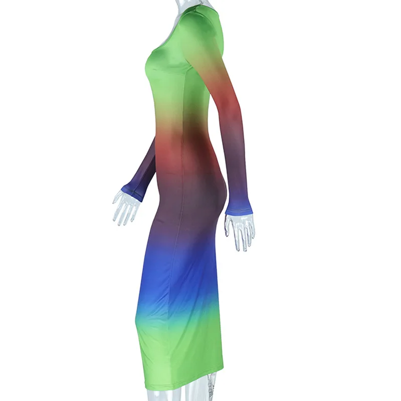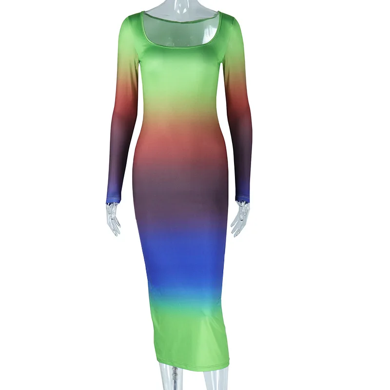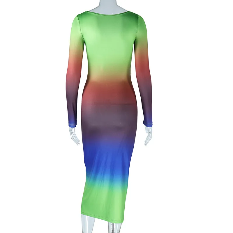 35365 Gradient Color Long Sleeve Dress Elegant Lady Wrap Long Dresses Women