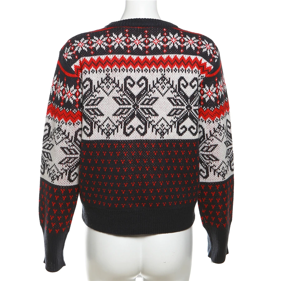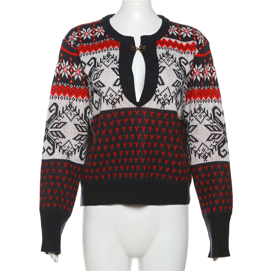 35642 Fall 2023 Pattern Patchwork Knit Women's Sweater Streetwear