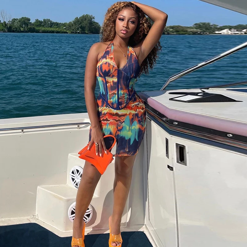 35818 Fashion Digital Print Dresses Holiday Street Wear Women Casual