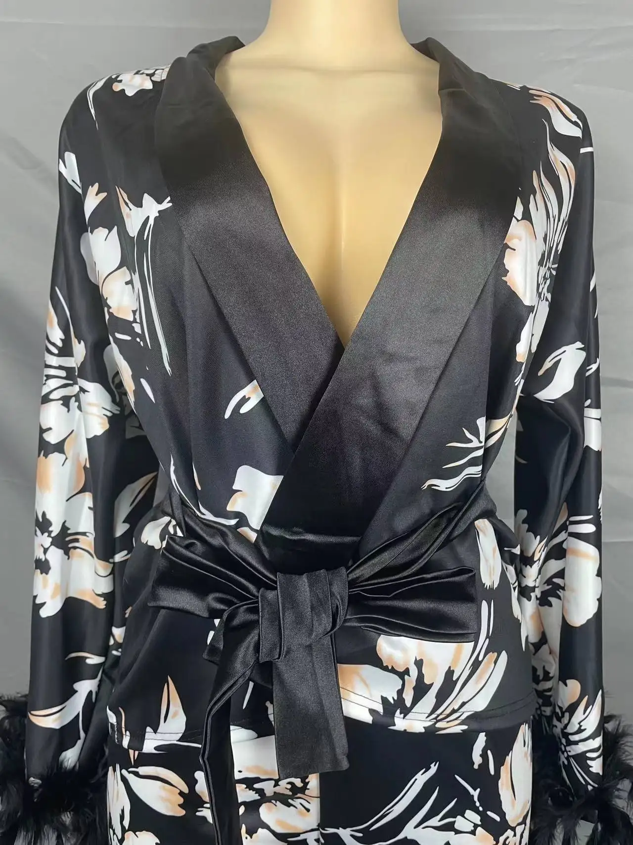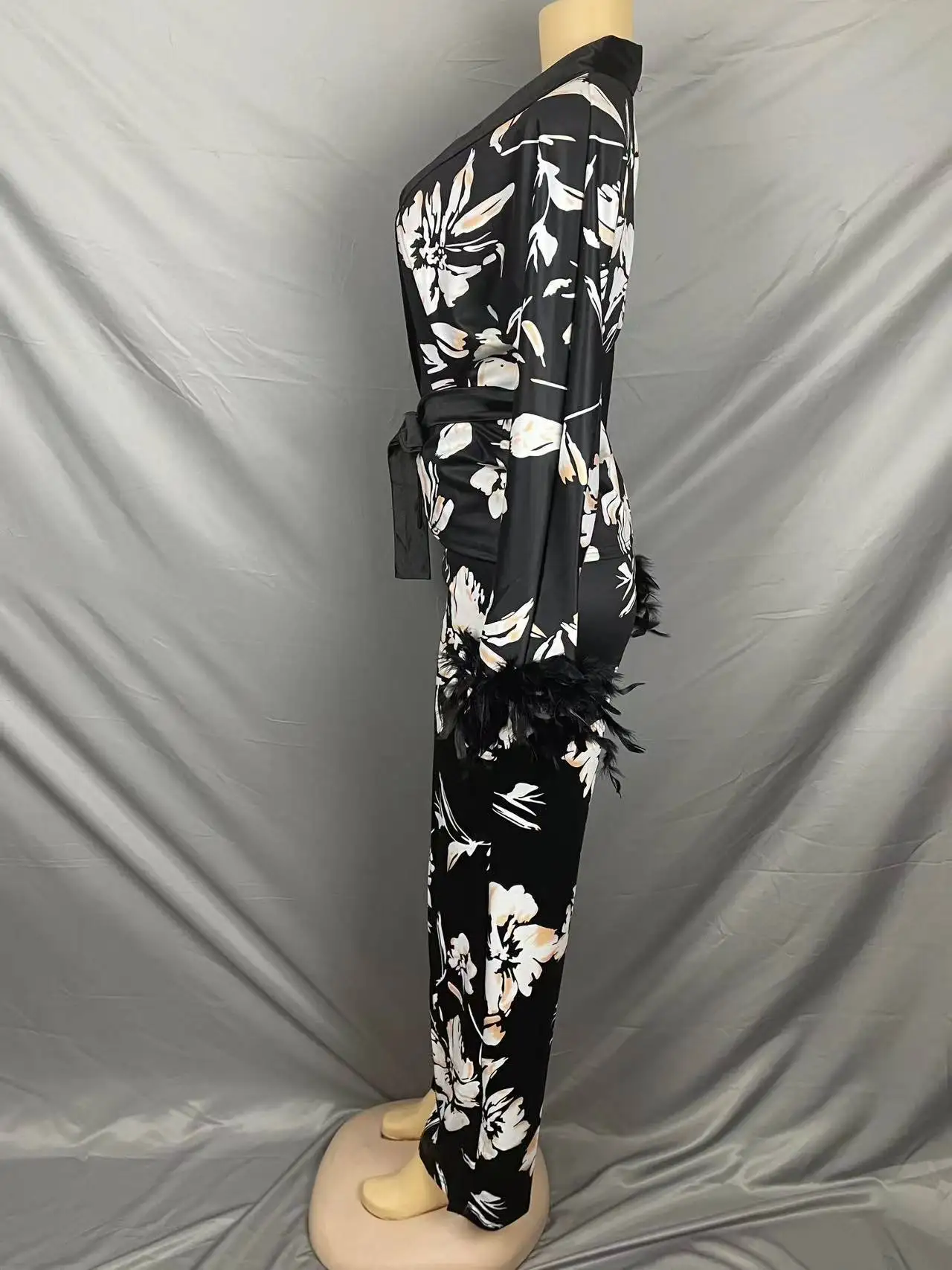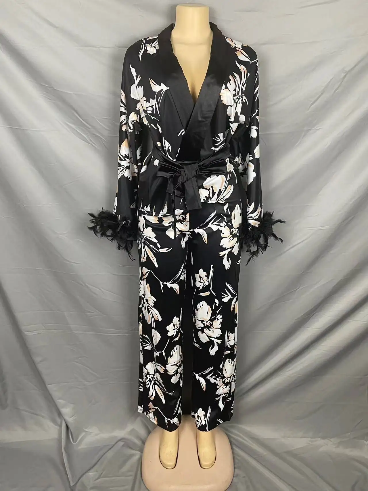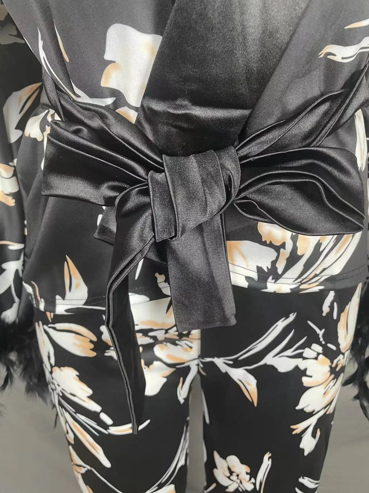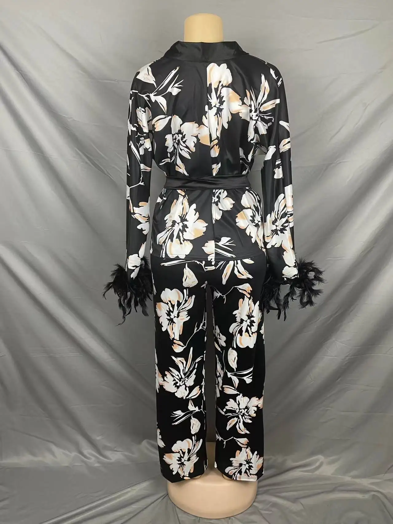 3602 Trendy Fall Outfits For Women Double Layer Crepe Lapel Loose Long Sleeve Shirt And Pants 2 Piece Set Women Two Piece Set