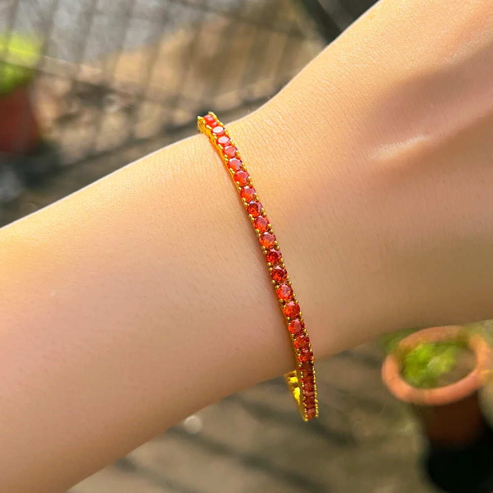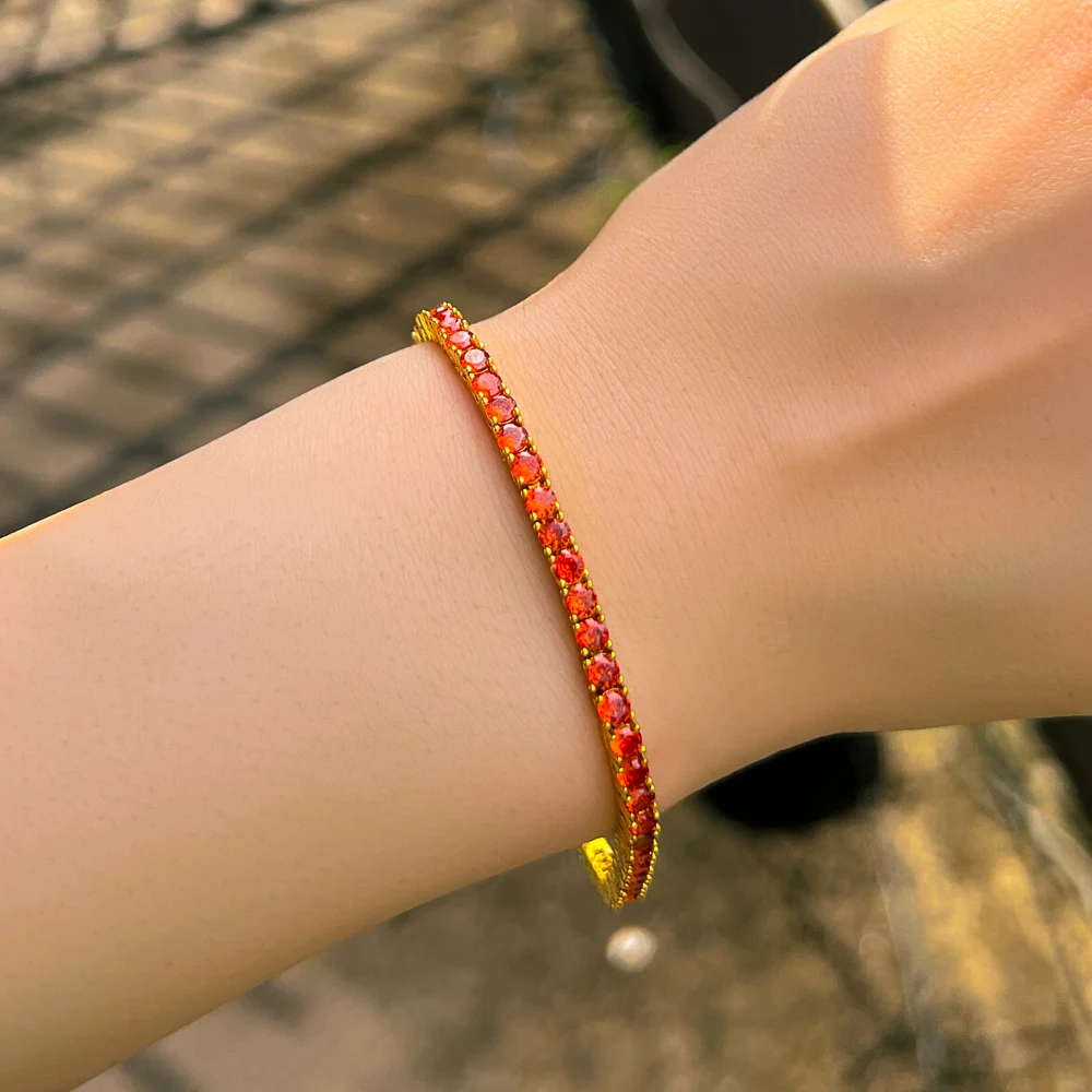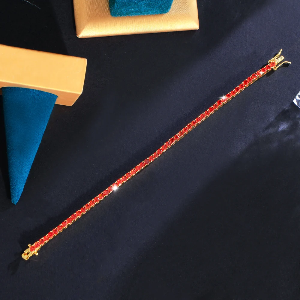 3A Top Quality Cubic Zirconia Prong Setting Round 3mm Red CZ Tennis Chain Link Bracelets for Women Engagement