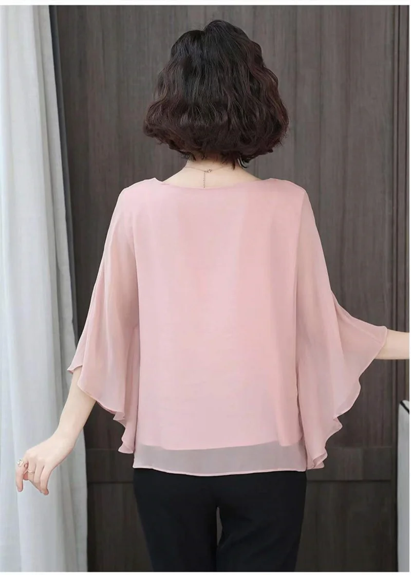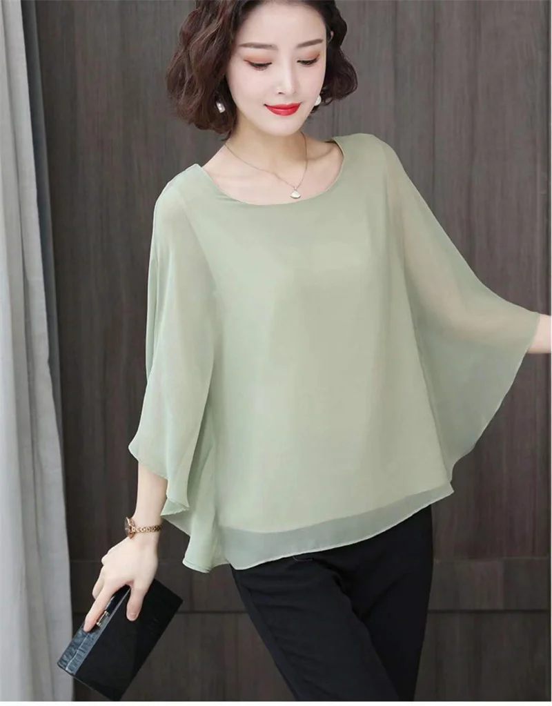4XL Bat Shirt Summer Women's Loose T-shirt Small Shirt 2025 Spring/Summer Large Wrinkle Resistant And Elegant chiffon Top Green