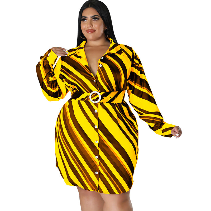 5XL plus size ladies shirts candy color stripe print casual dresses daily outdoor office holiday woman clothing