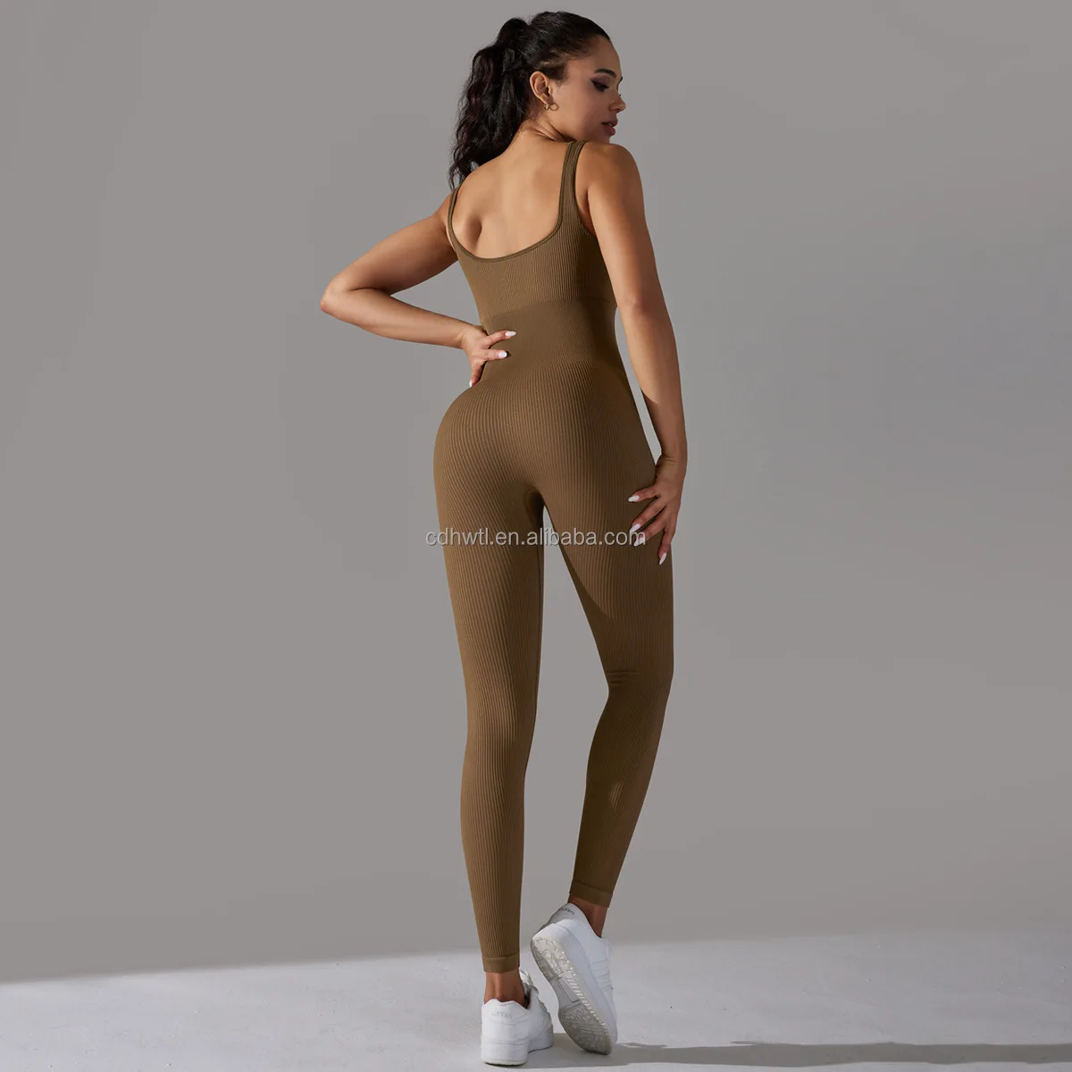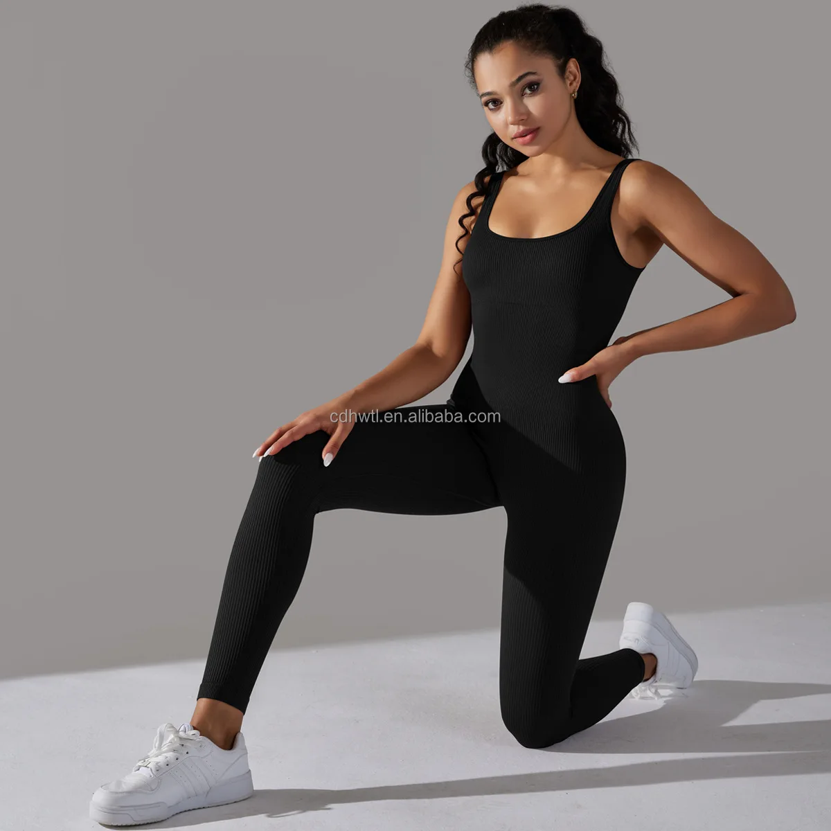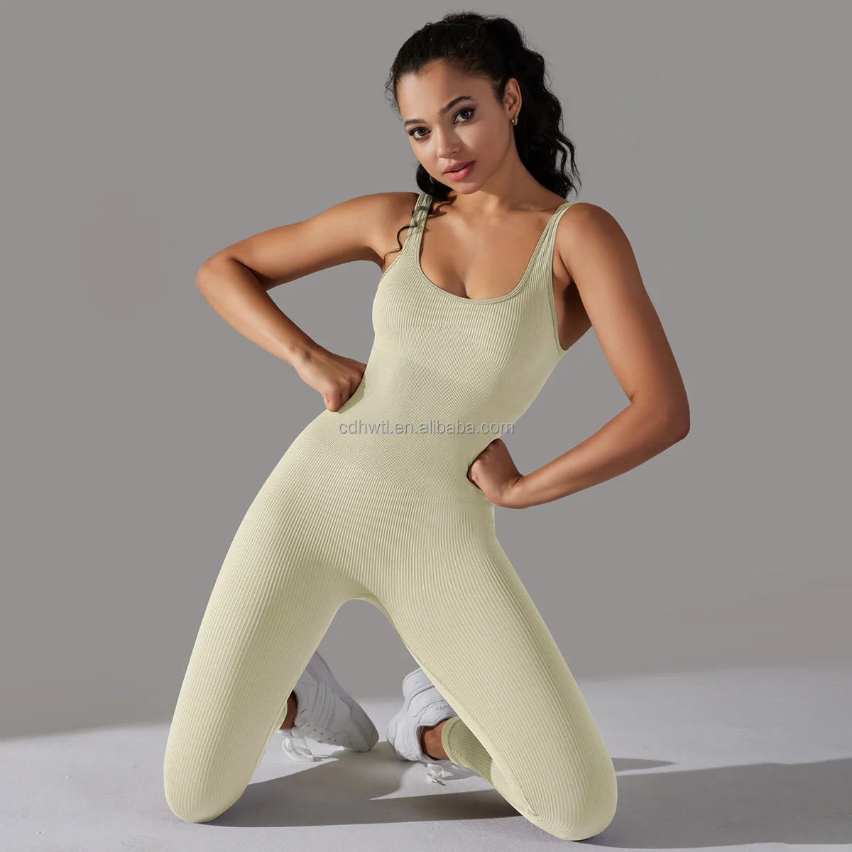 7 Colors Seamless Ribbed Women Yoga Jumpsuit Gym Fitness Wear Workout Clothes Sportswear Yoga BodySuits One Piece Tracksuit