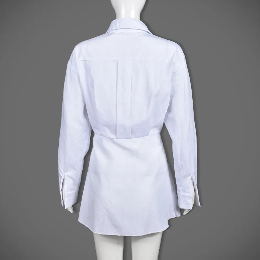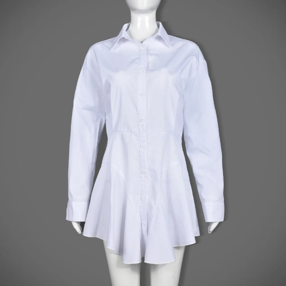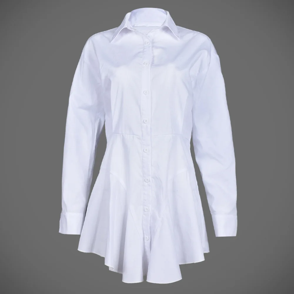 7965dg Autumn New Wholesale Women's Dress Solid Color Long Sleeve Irregular Turn-down Collar Dress For Woman Elegant Dress