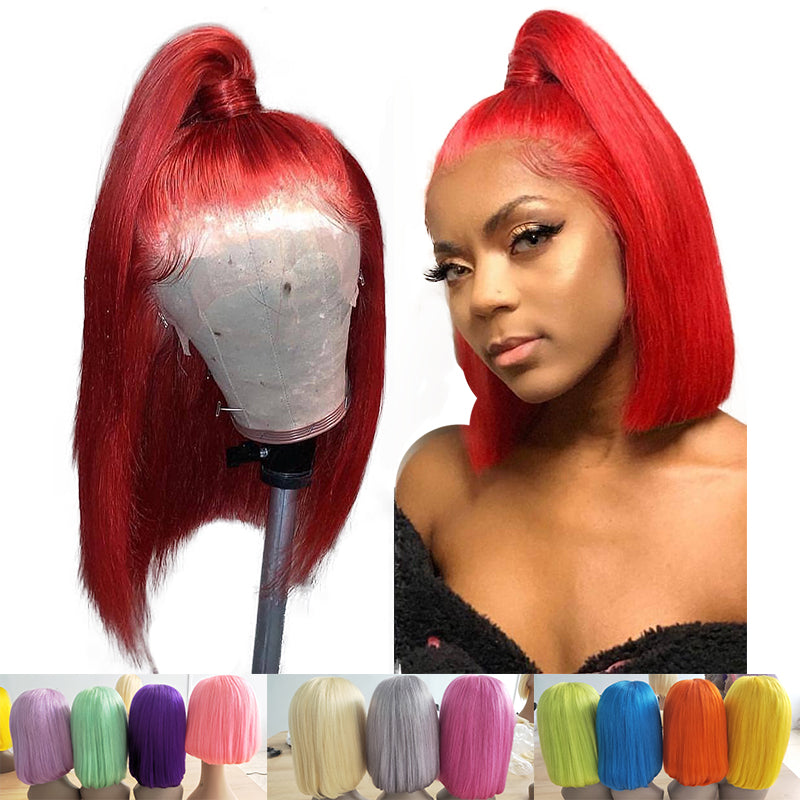 8 10 12 inch Short bob Wig 13x4 Colored Short Bob Lace Front Human Hair Wigs Pre Plucked Brazilian Straight Bob Wigs For Black Women Pink Wig