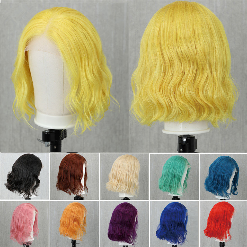 8 10 12 inch Short bob Wig Invisible ShortCut Bob Wig Natural Wave Lace Front Human Hair Wigs colored pink yellow blue colored 13x4 front lace wig 130%