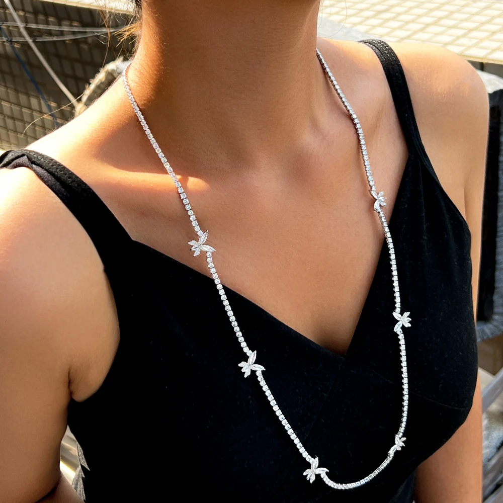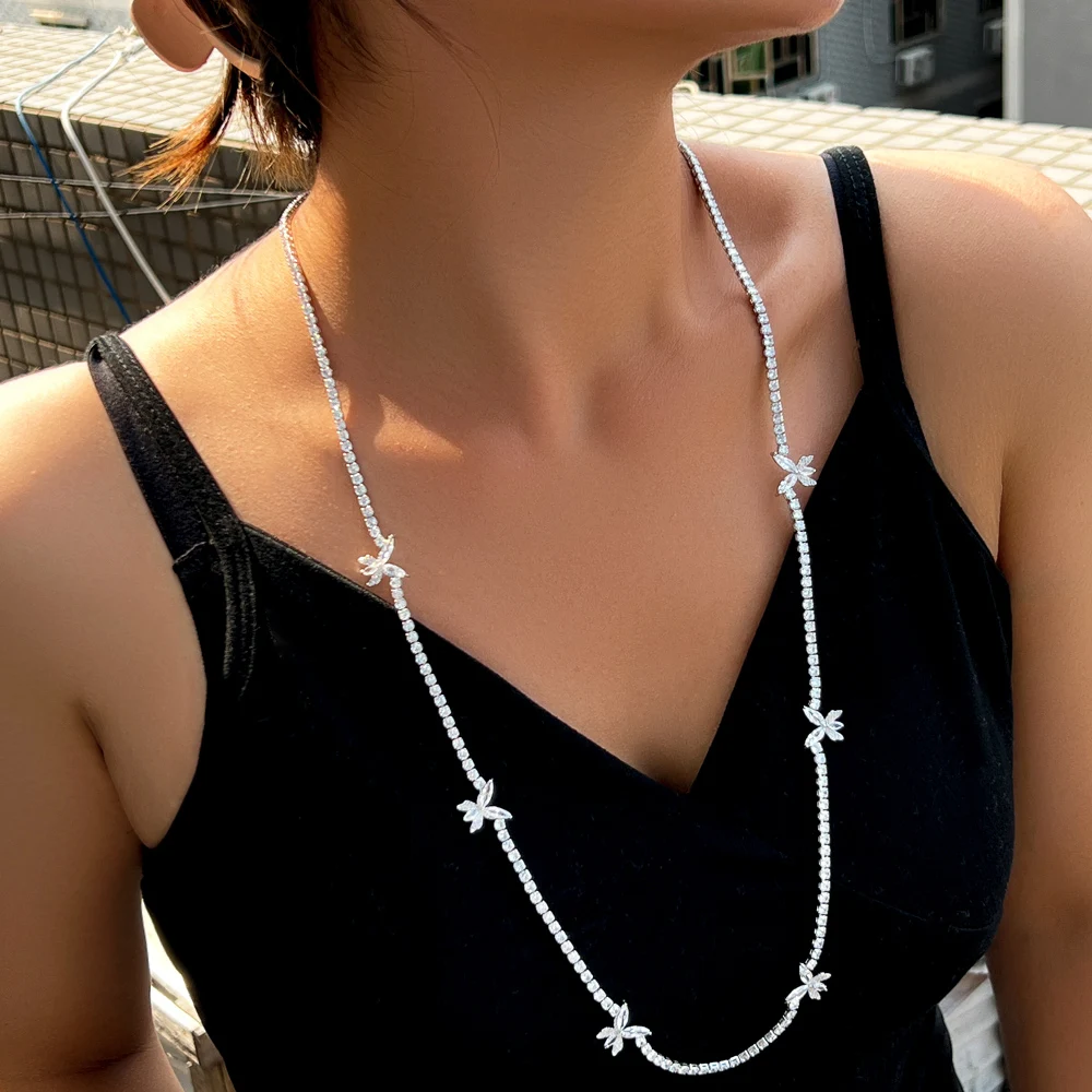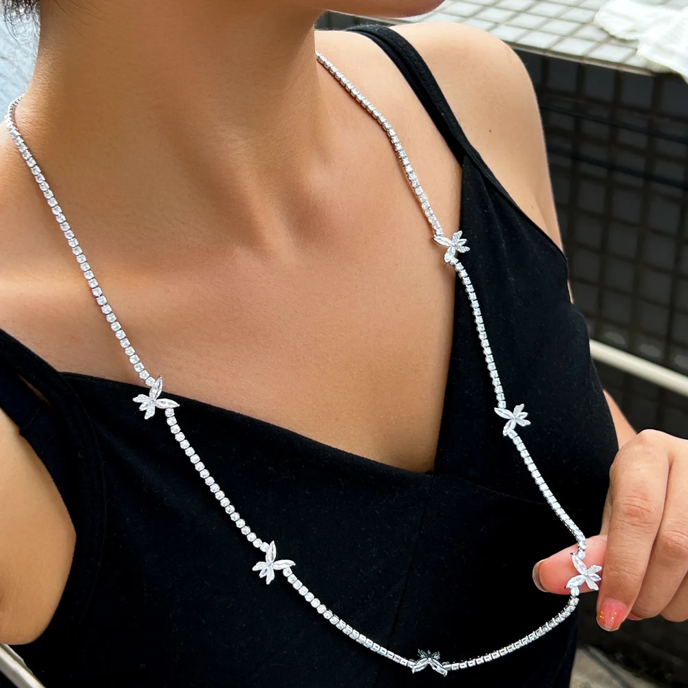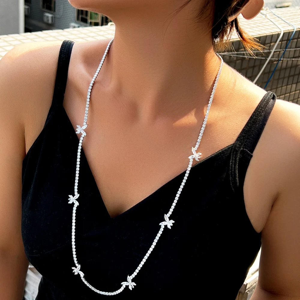 82cm Shiny Cubic Zirconia Paved Long Tennis Chain Butterfly Sweater Necklace for Women Engagement Party Jewelry