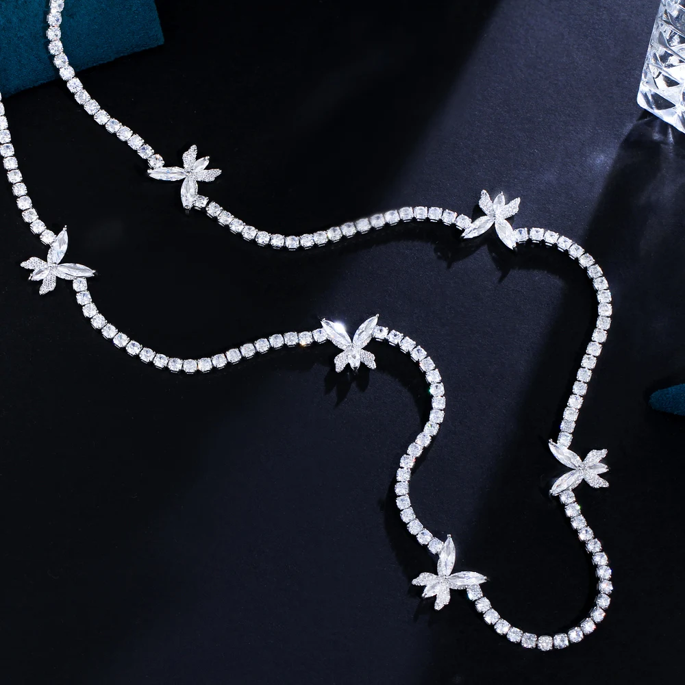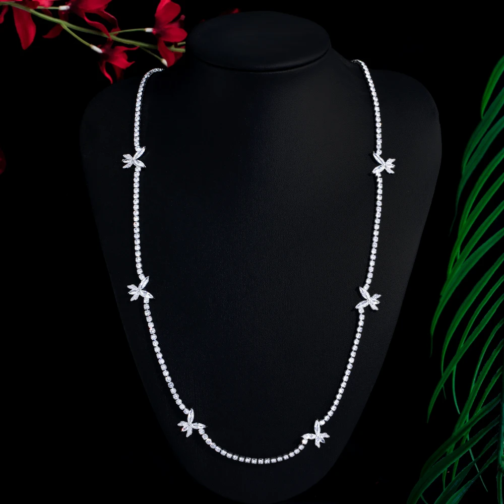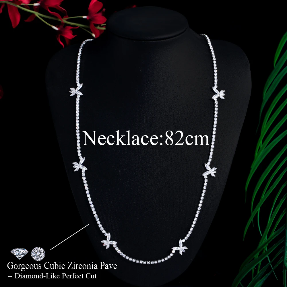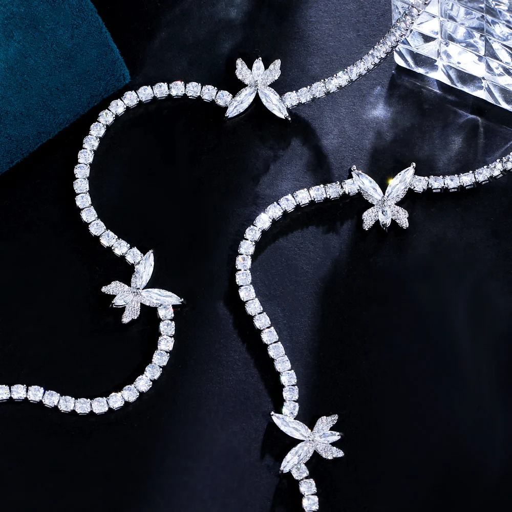 82cm Shiny Cubic Zirconia Paved Long Tennis Chain Butterfly Sweater Necklace for Women Engagement Party Jewelry