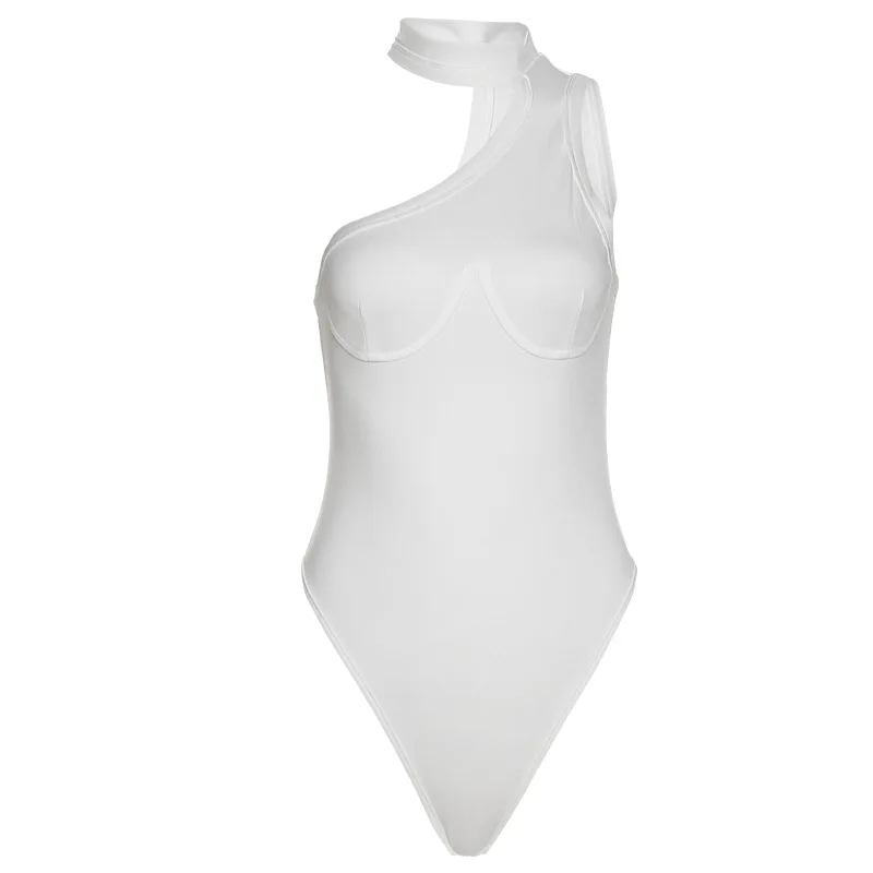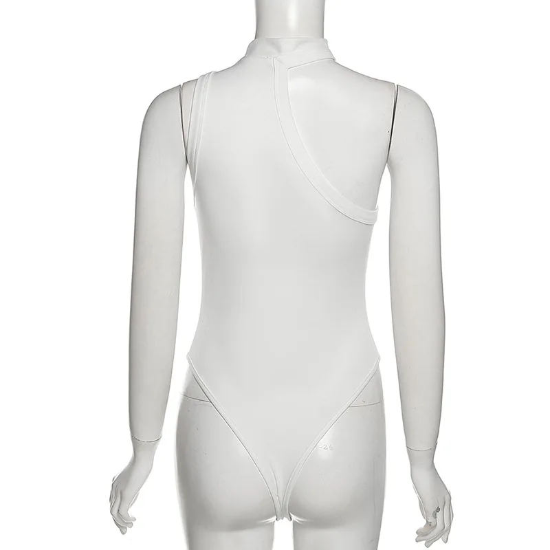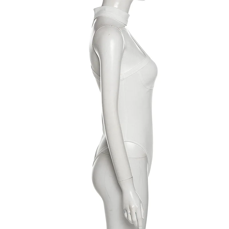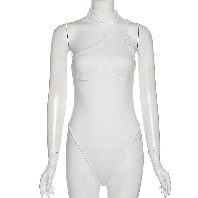 90% POLYESTER 10% SPANDEX Summer Sexy Sleeveless Cutout Halter Plain Bodycon Womens Bodysuit 2022