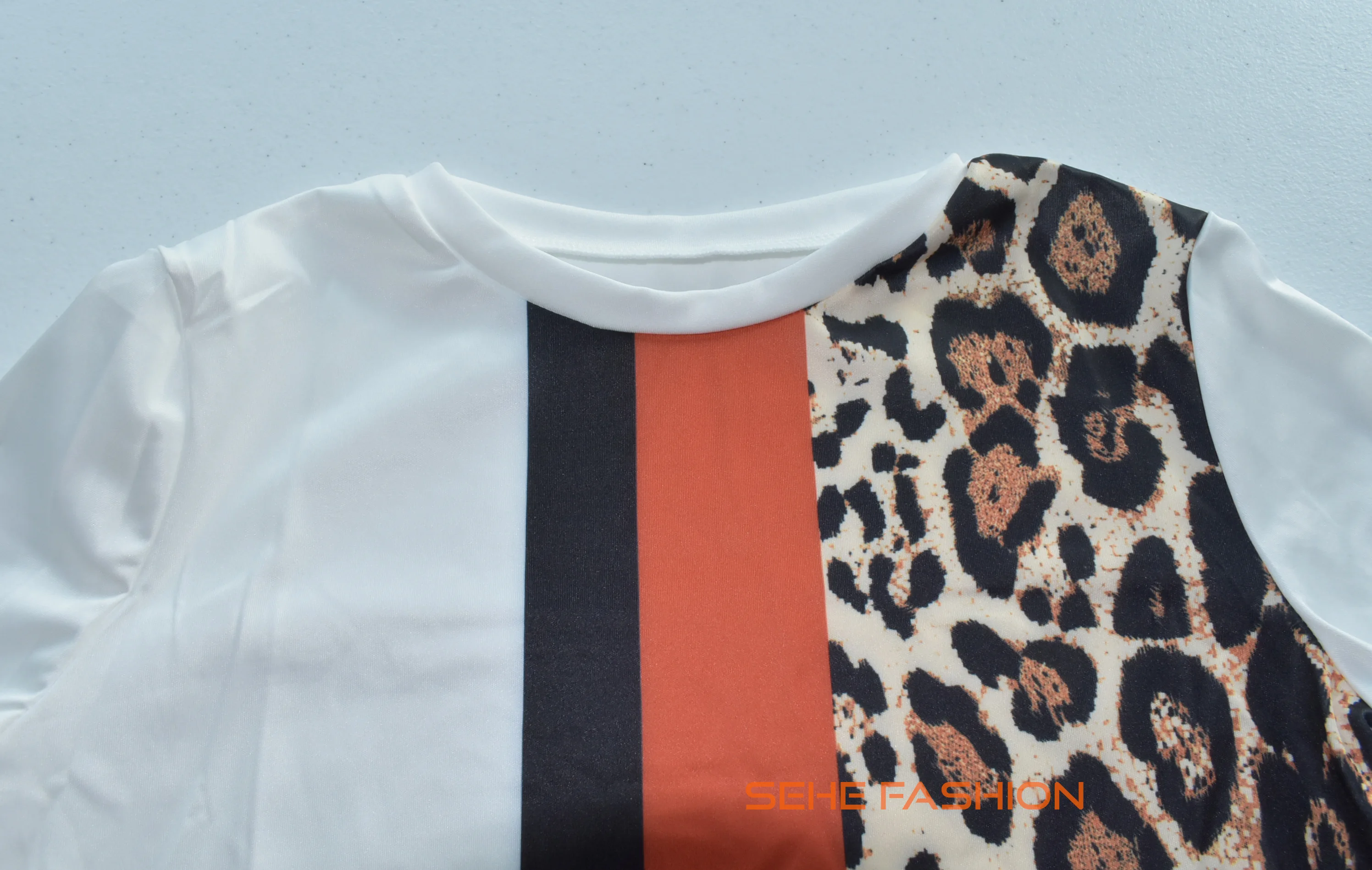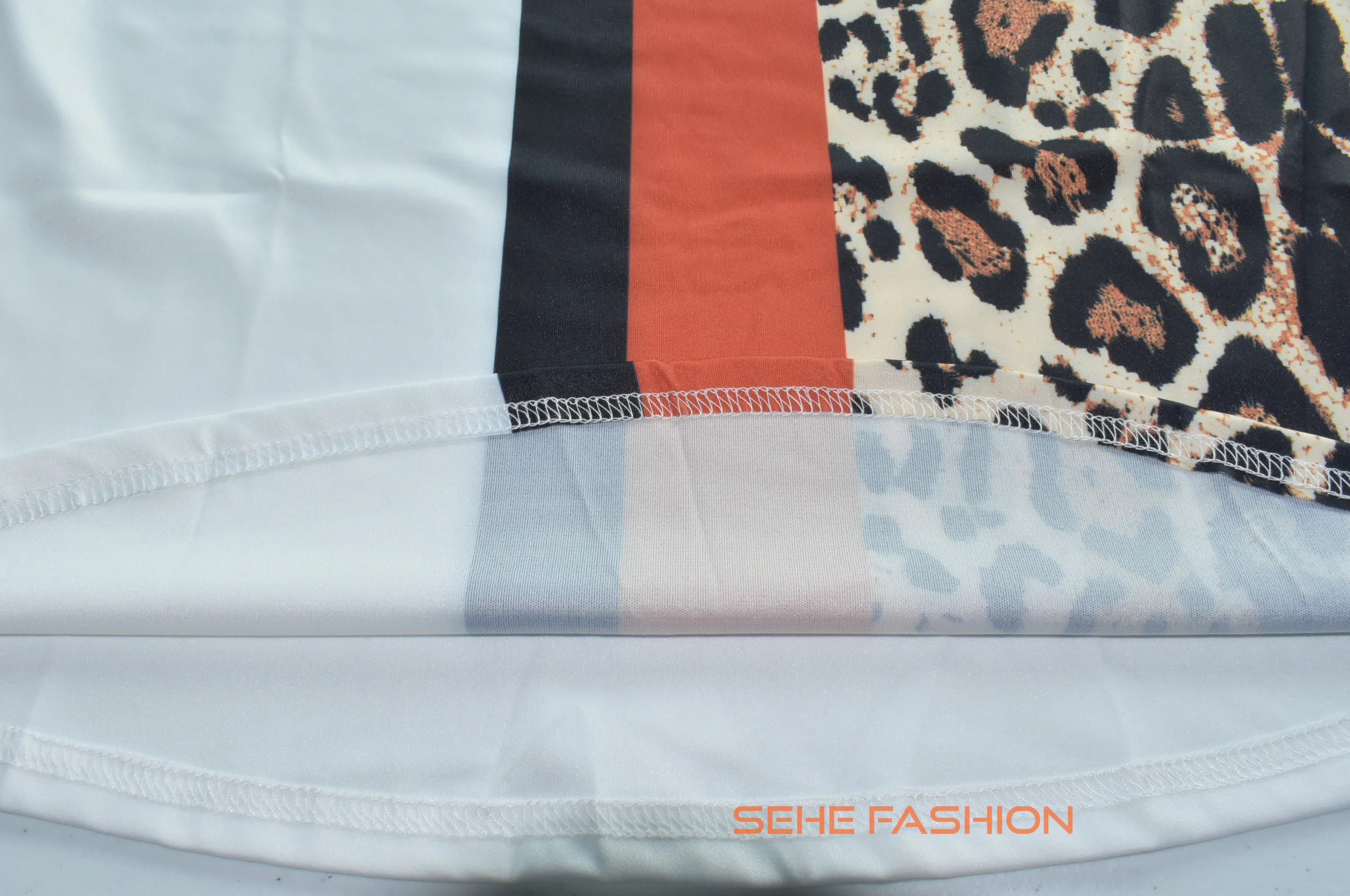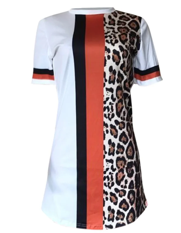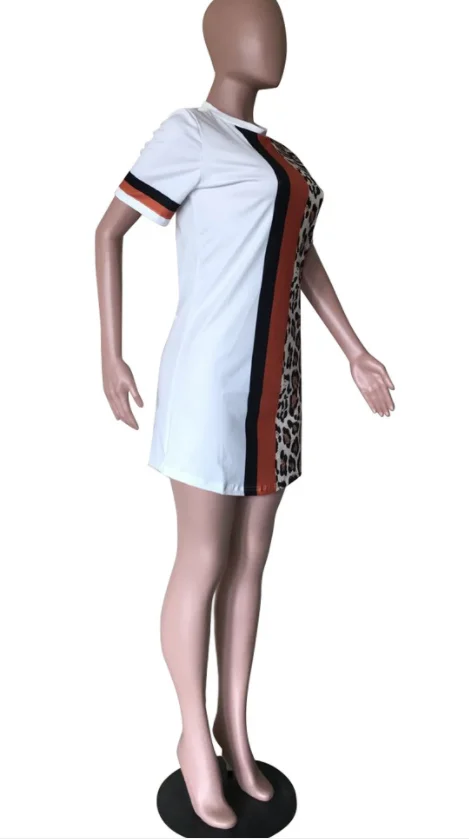 90710-MX35 Stylish Ladies Short Leopard Print Casual Dresses Vestidos Sexys Mujer