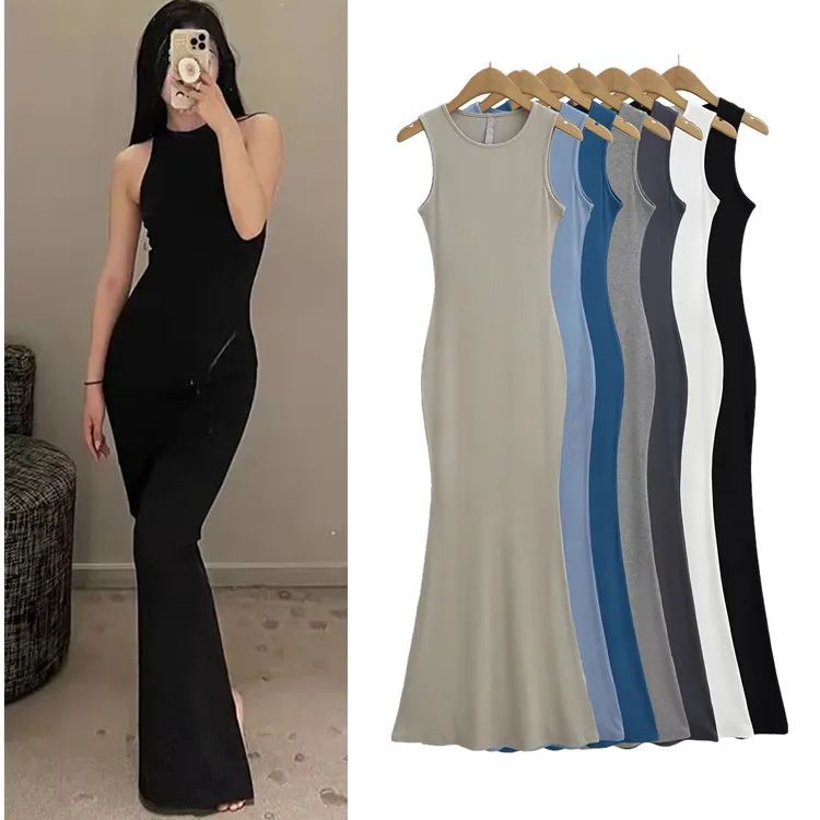 91% Modal 9% elastane Ribbed Women Sleeveless Tank top Dress Bodycon solid Women Long dress