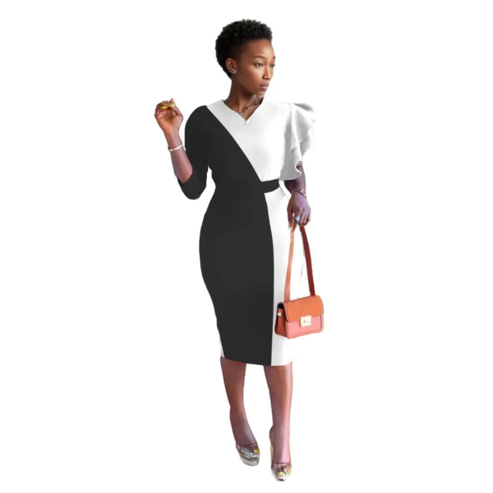 sehe fashion office wear one sleeve contrast color ladies dress