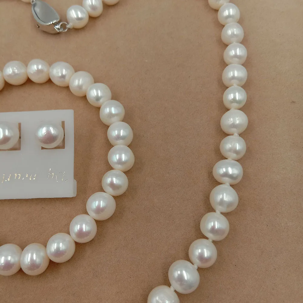 925 silver earring good luster pearl set Freshwater Pearl Jewelry Set for wedding Factory Price,wholesale 8 mm AA potato pearl