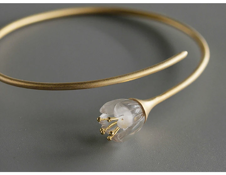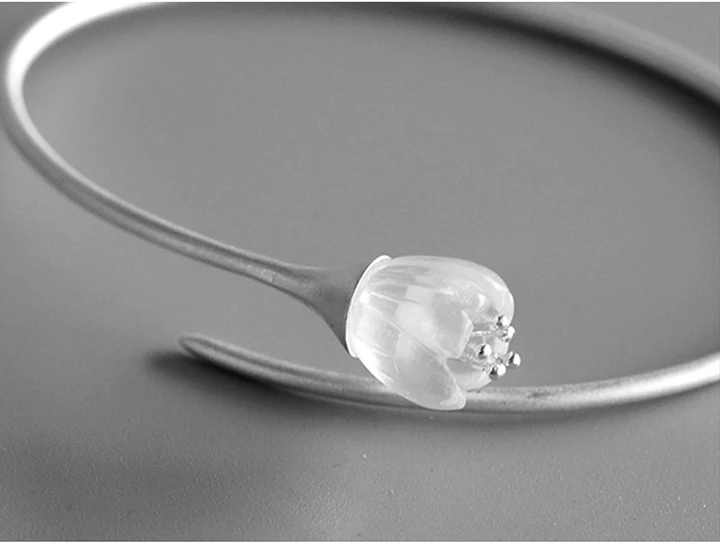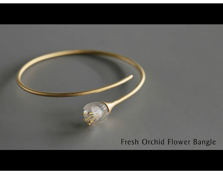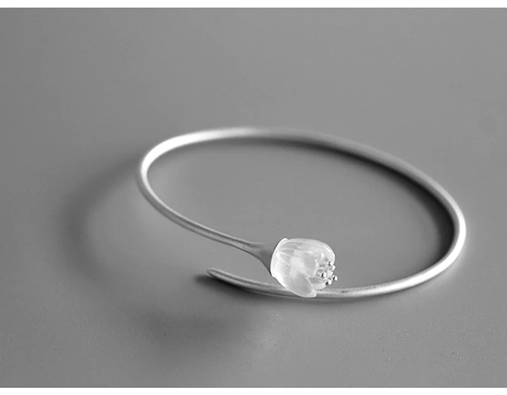 925 Sterling Silver Natural Crystal Fresh Bell Orchid Flower Women Bracelets Jewelry Wholesale