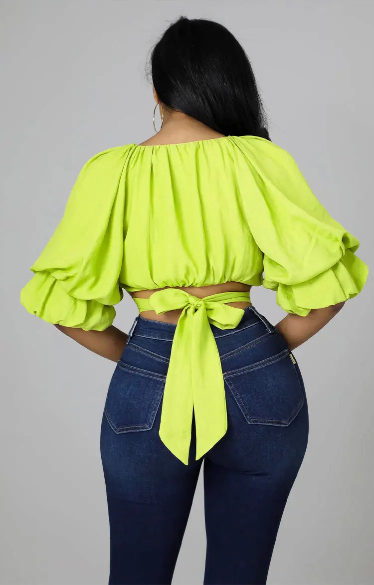 929 Summer Short Sleeve V Neck Crop Top Pullover Shirt Candy Color Blouse Shirt Elegant Women Tees