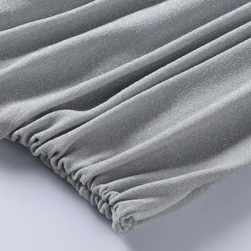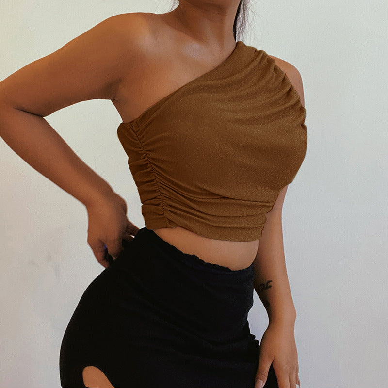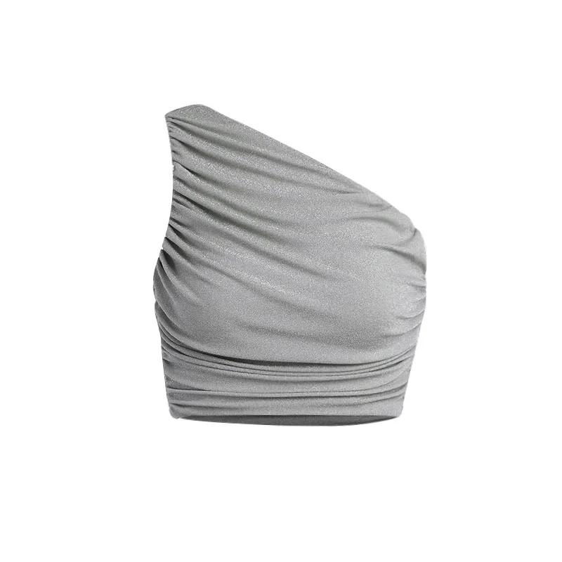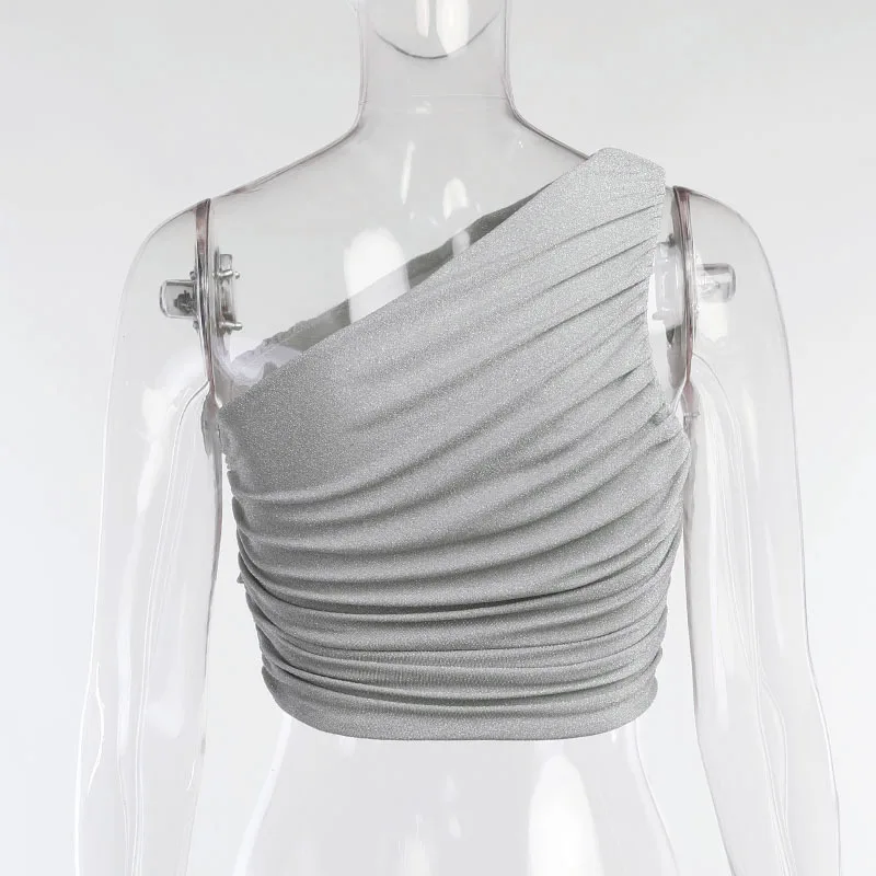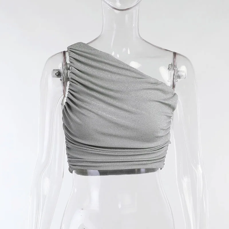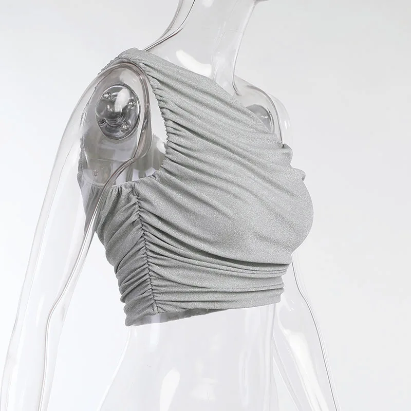 95% POLYESTER 5%ELASTANE Fashion Sparkling Plus Size Ruched Cropped Tank Sexy Cold Shoulder Korean Tops 2022