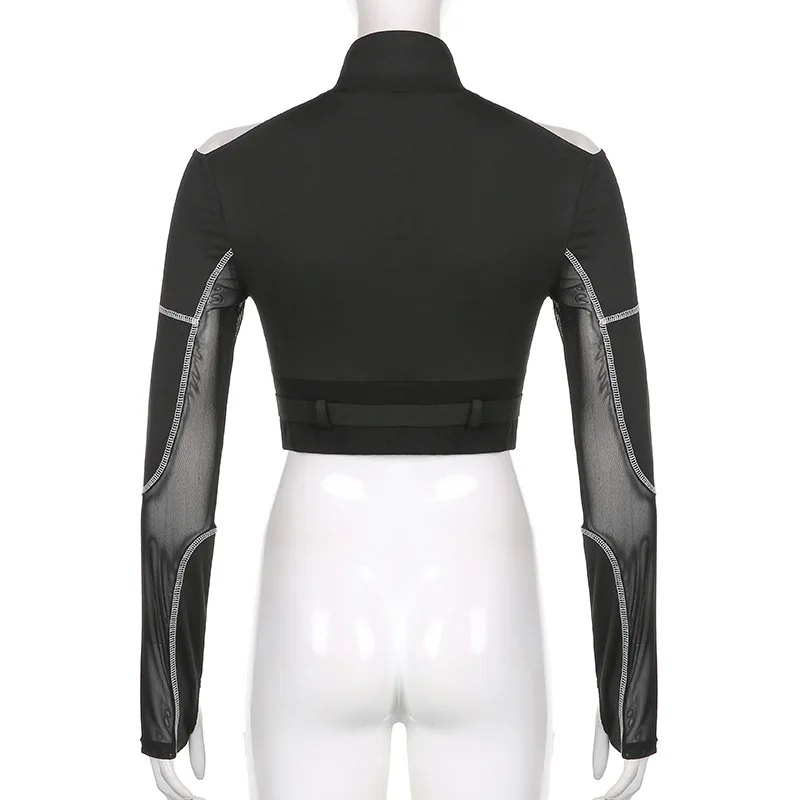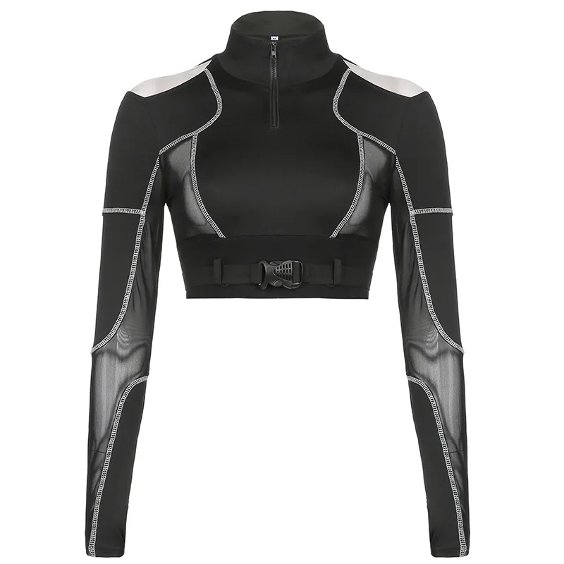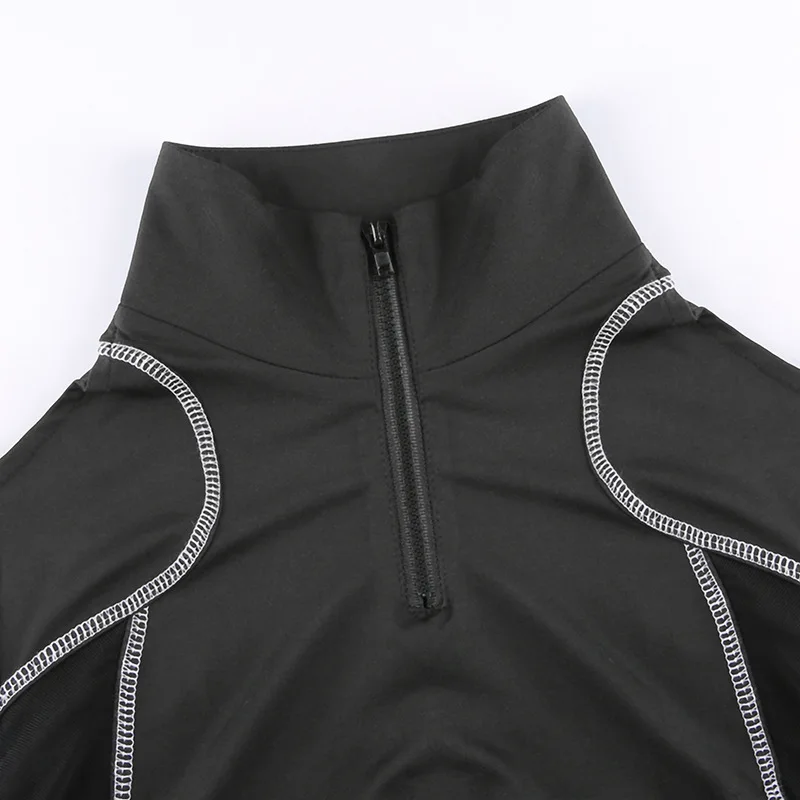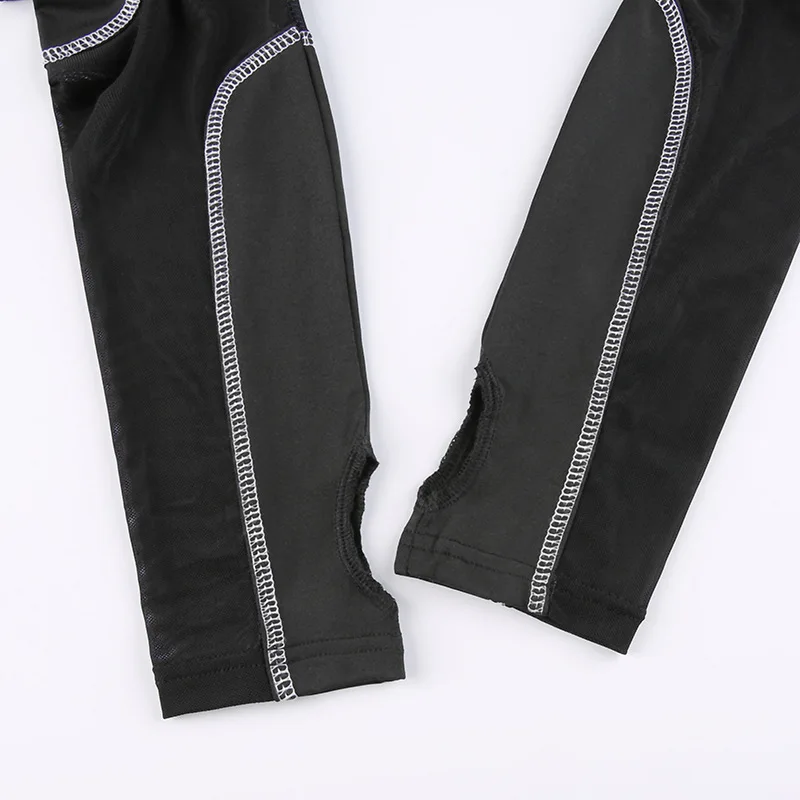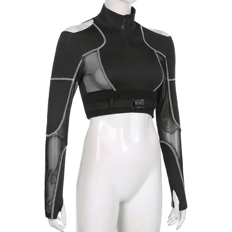 95% POLYESTER 5% SPANDEX Contrast Color Long Sleeve Bucket Mesh Patchwork Off The Shoulder Girls T-shirts&polo Shirts