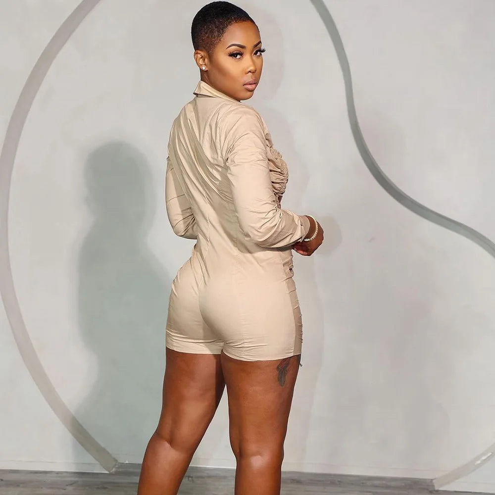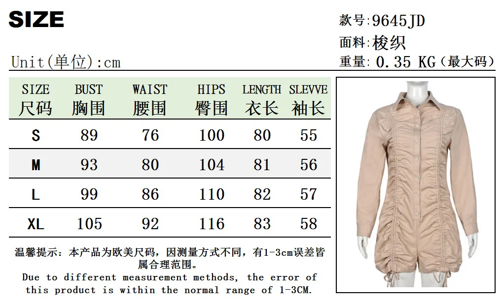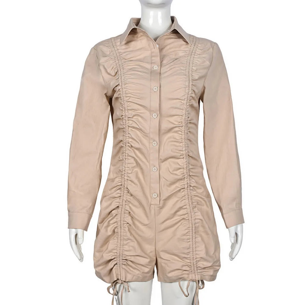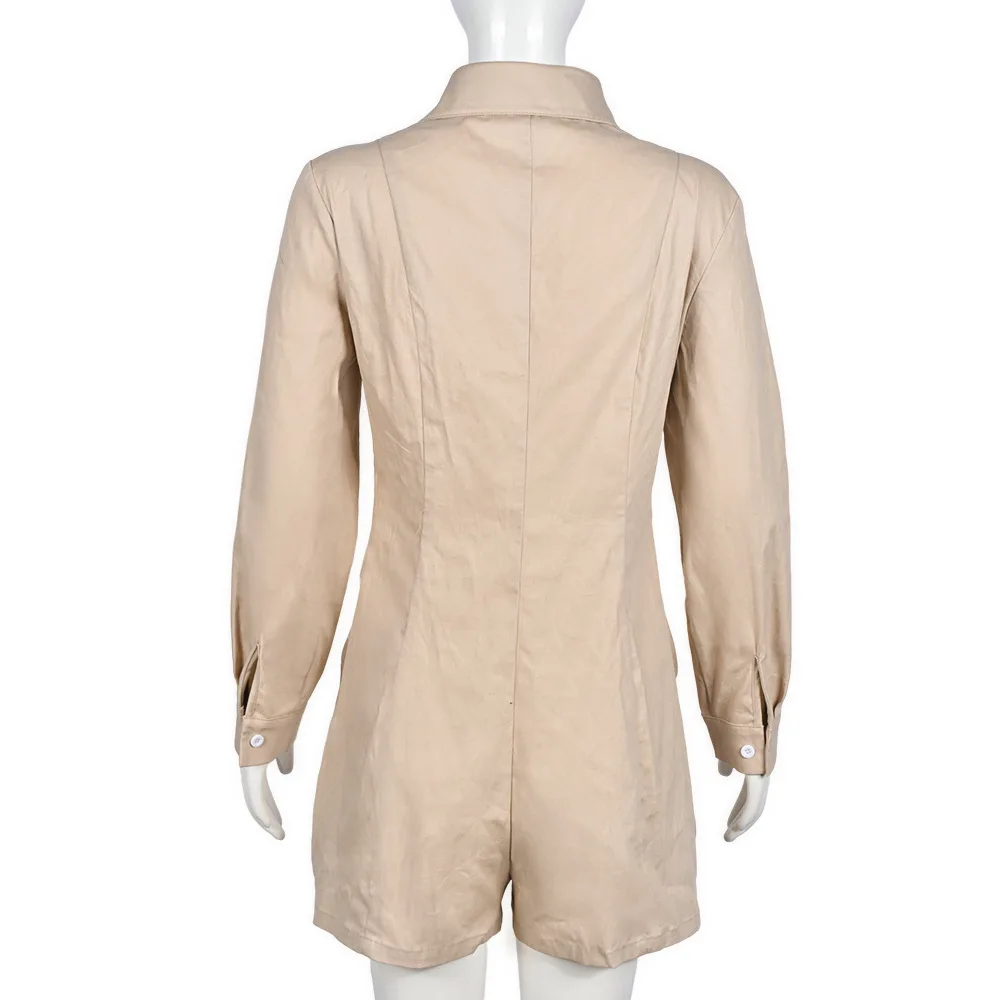 9645jd Fall New Women's One Piece Rompers Shirt Collar Sexy Cut-out Single Breasted Long Sleeve Jumpsuit Plus Size Clothes