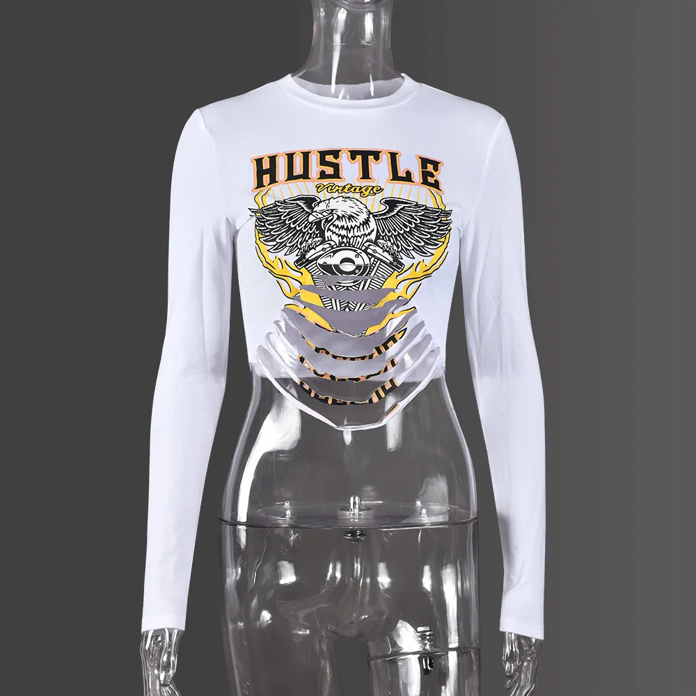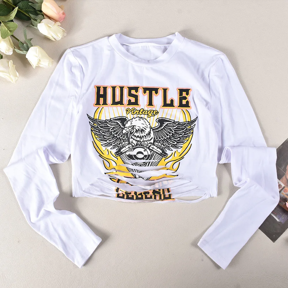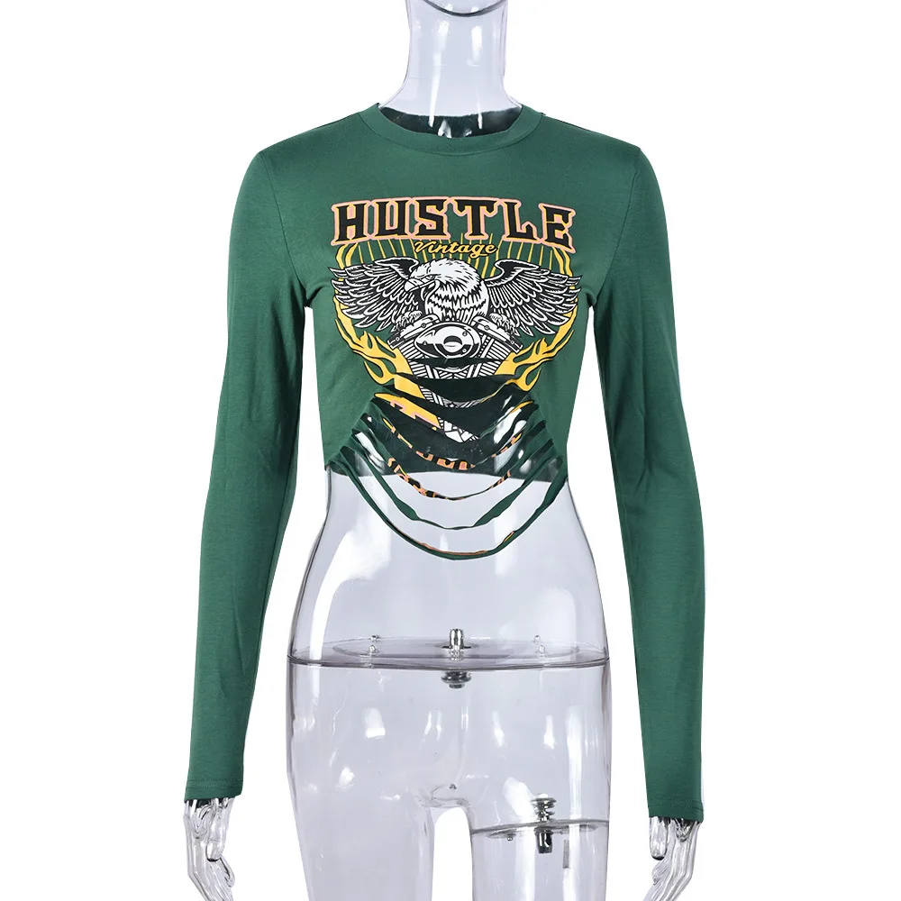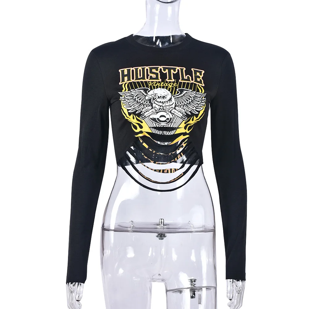 9670TD Women Vintage Gothic Graphic Shirts,Fall Long Sleeve Pullover Crop Tee Shirt Top