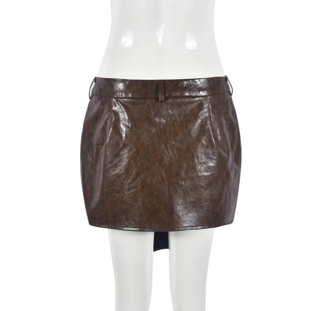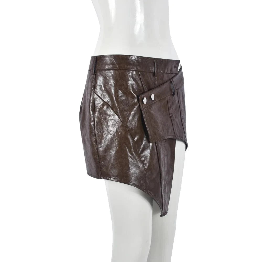 9790dd 2024 Spring New Women's Fashion Miniskirt Pu Leather Asymmetric Wrapped Skirt Plus Size Sexy Skirt Women's Clothes