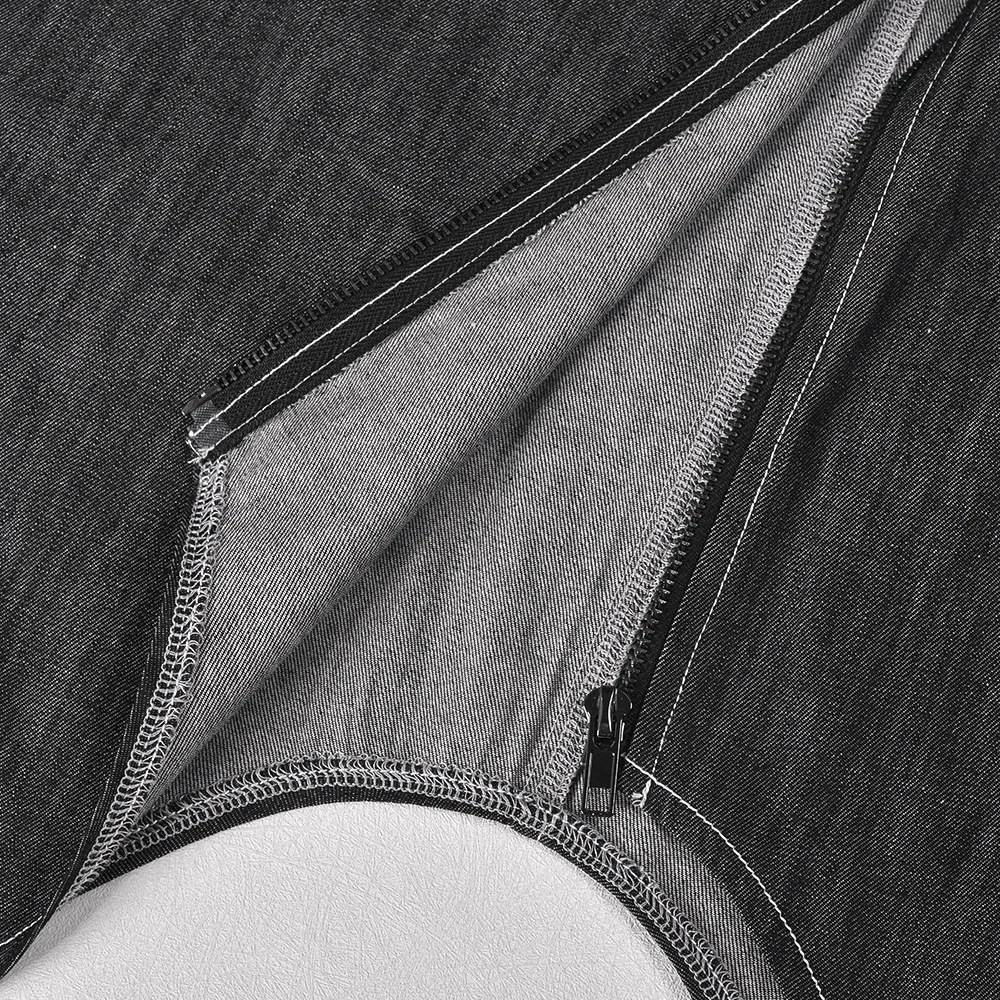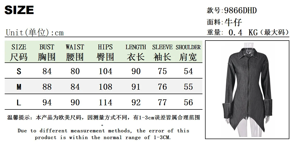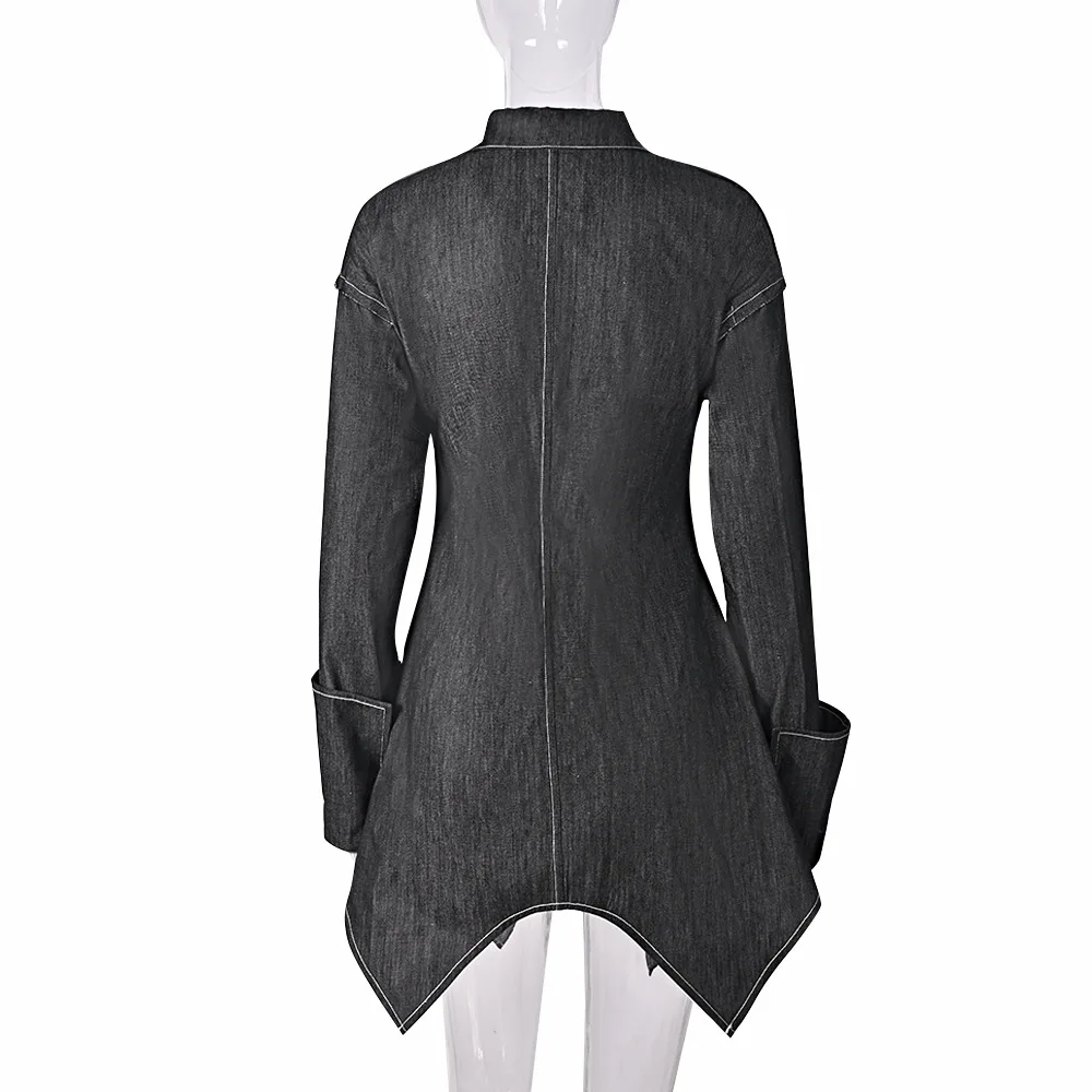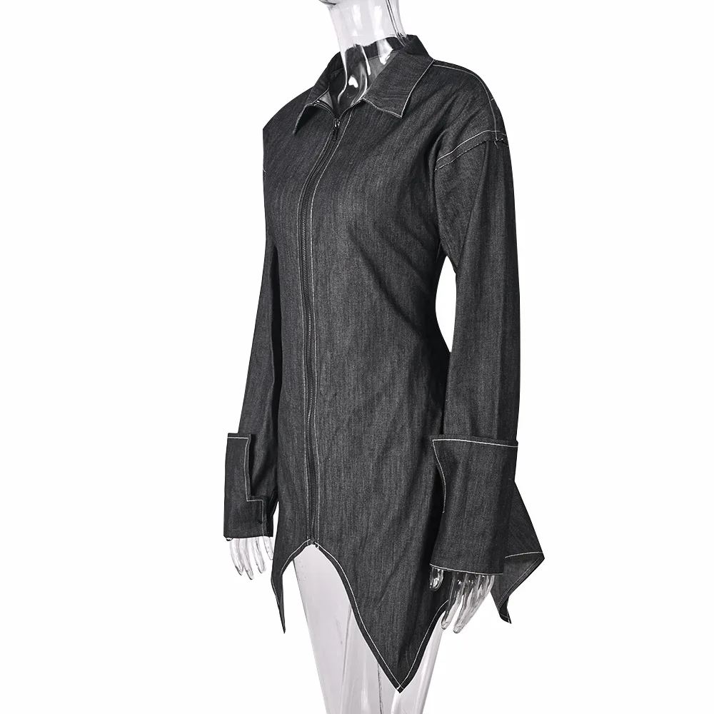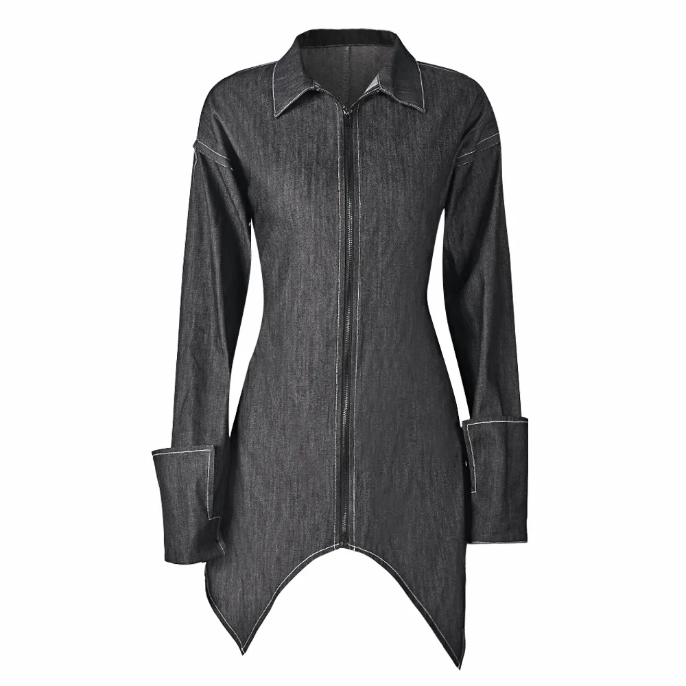 9866dhd New Sexy Elegant Women's Denim Dress Slim Long Sleeve Asymmetrical Shirt Collar Zipper Denim Dress For Lady Women