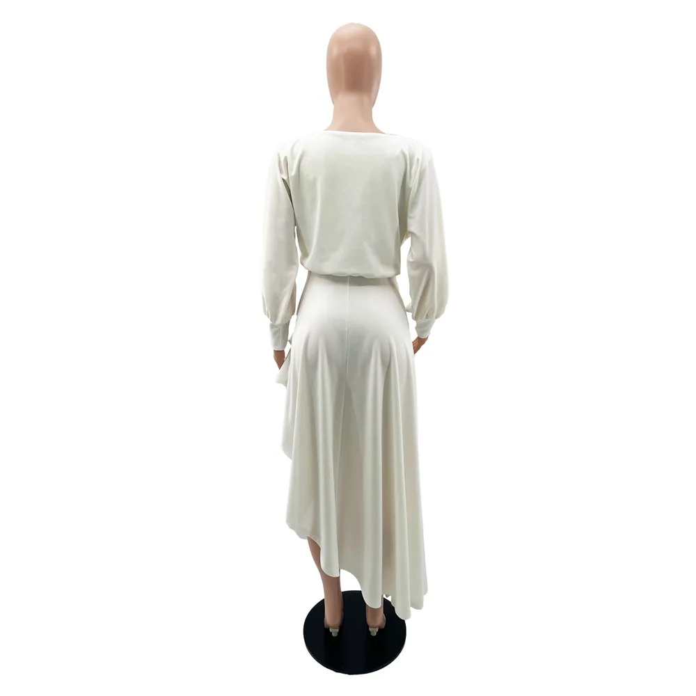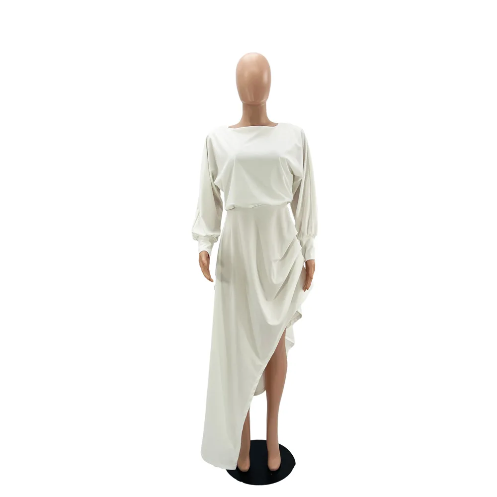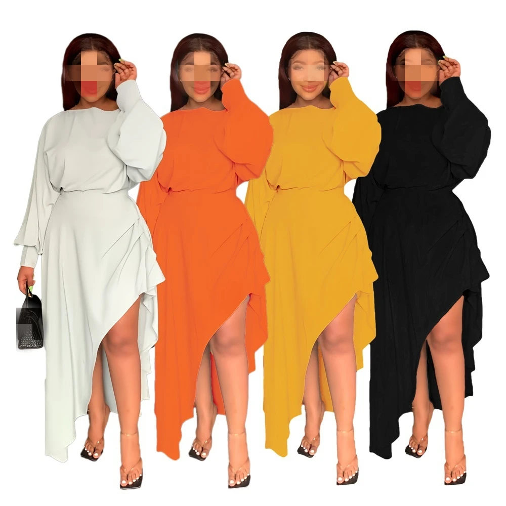 9890 New Arrival Fall Dresses For Women Loose Irregular Large Hen Long Sleeve Waist Long Dresses Women Casual Dresses