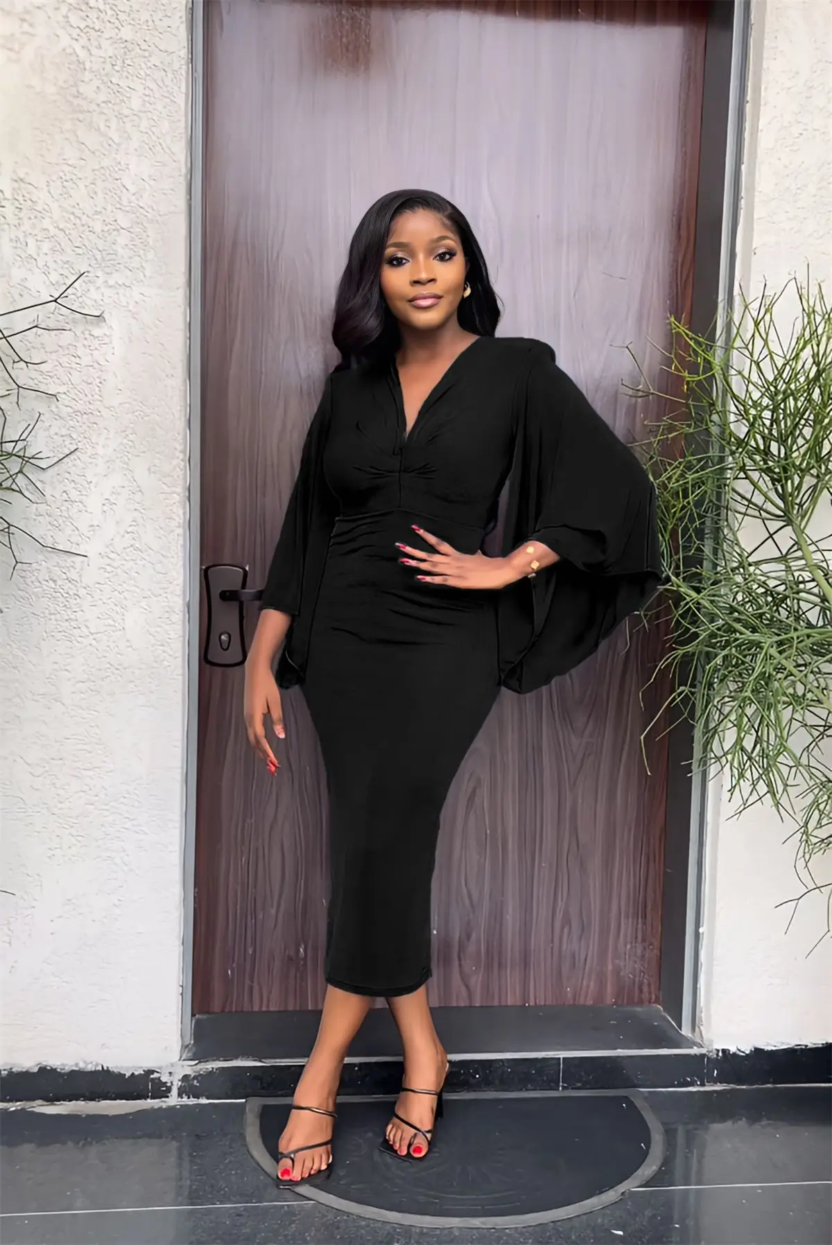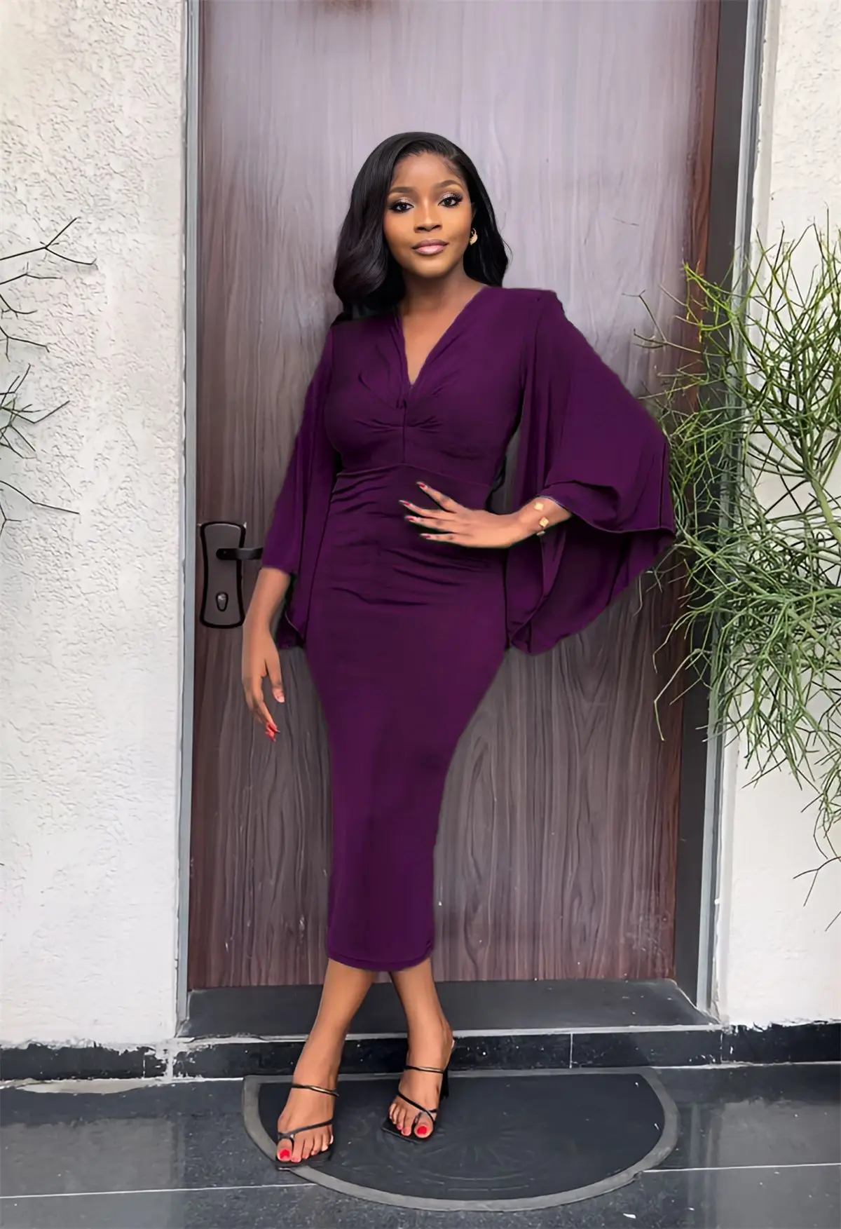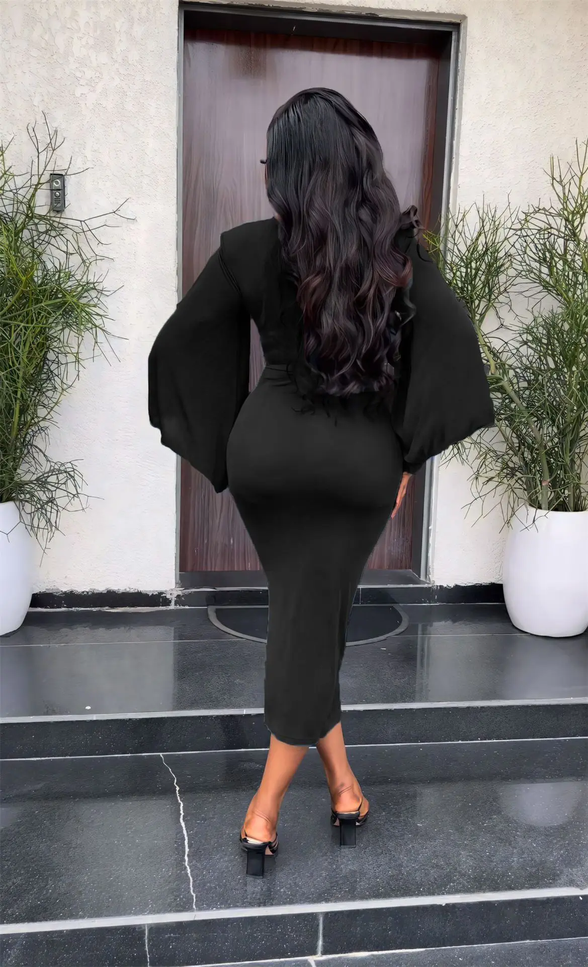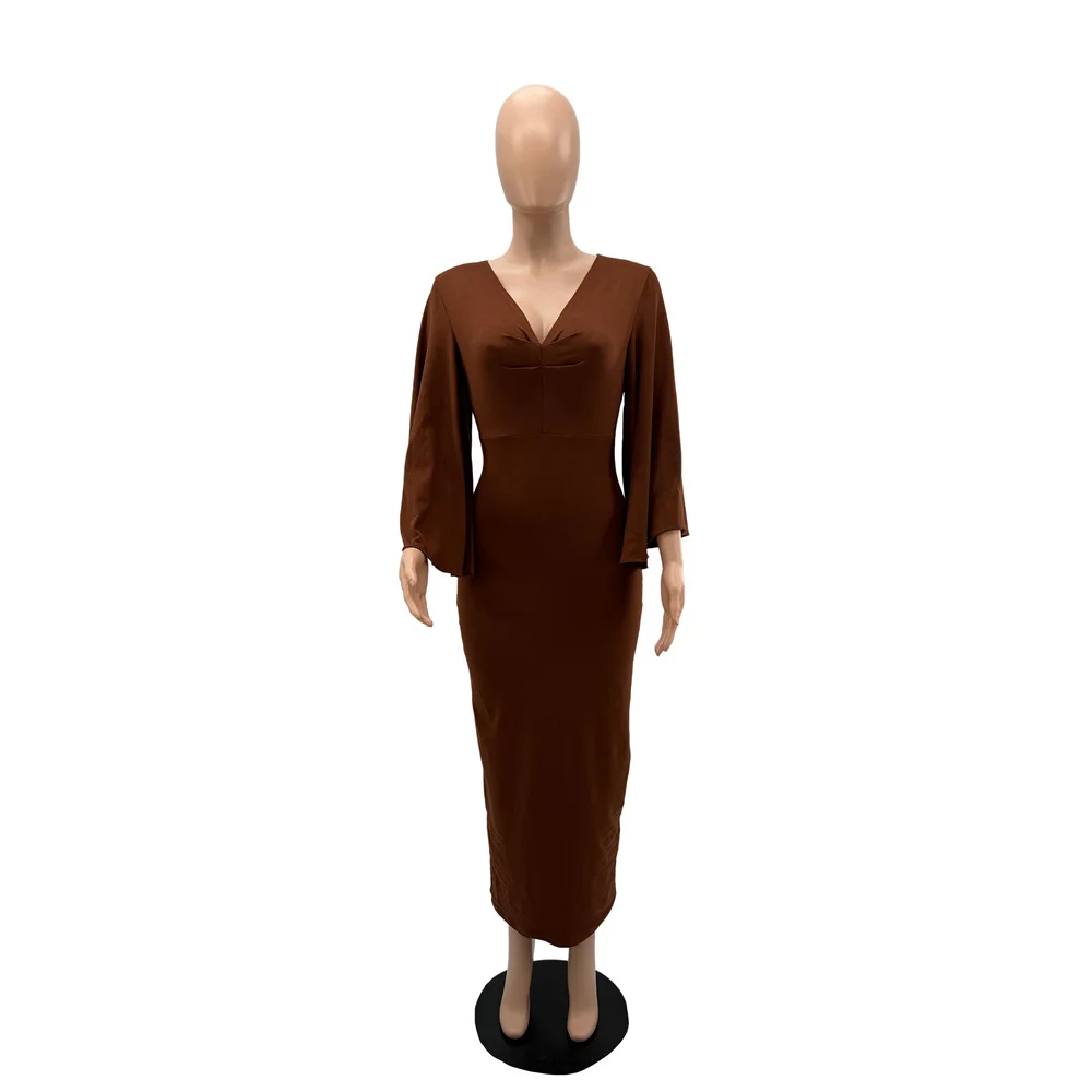 9962 spring women clothing elegance slim fit bodycon dress flared sleeve v neck corset dress casual style