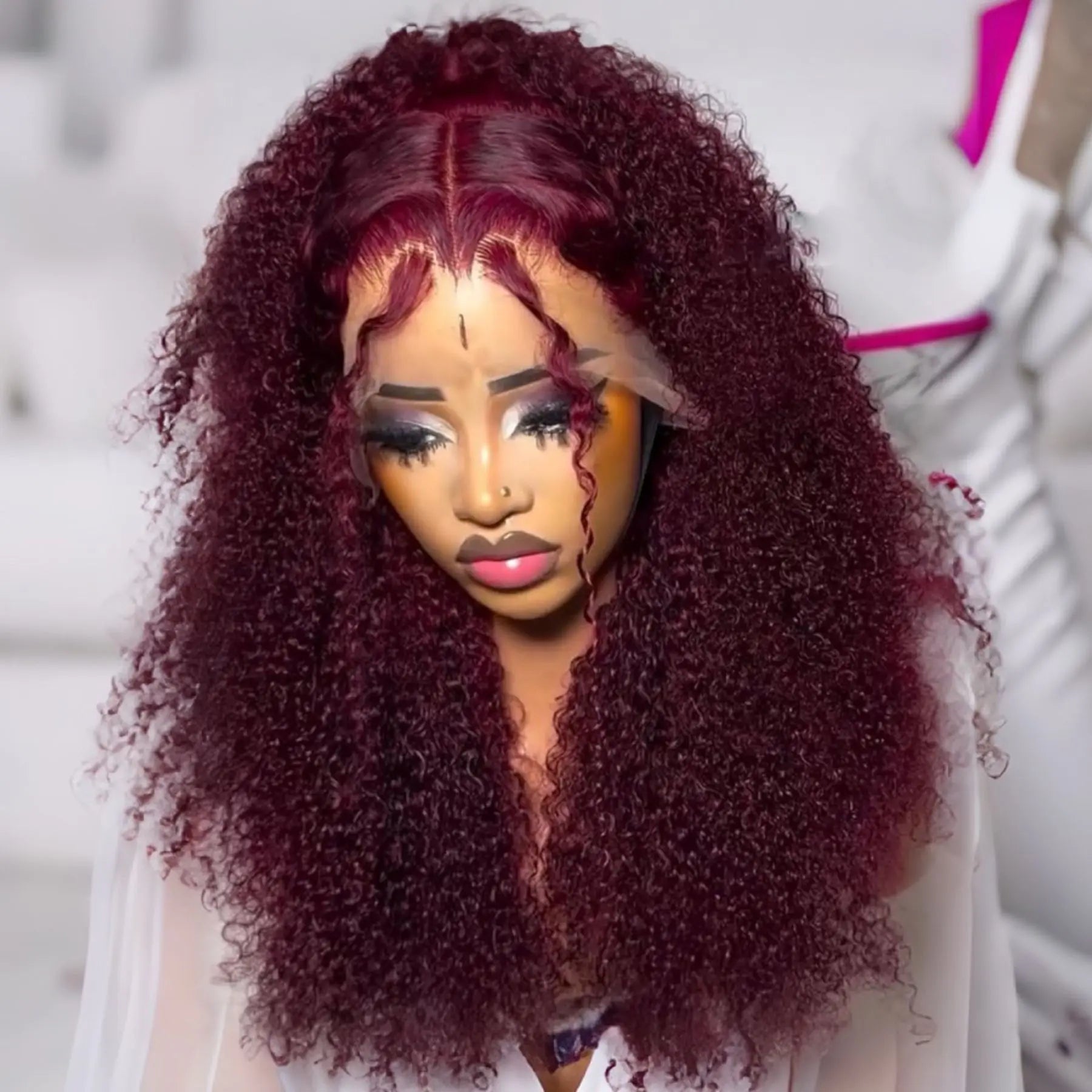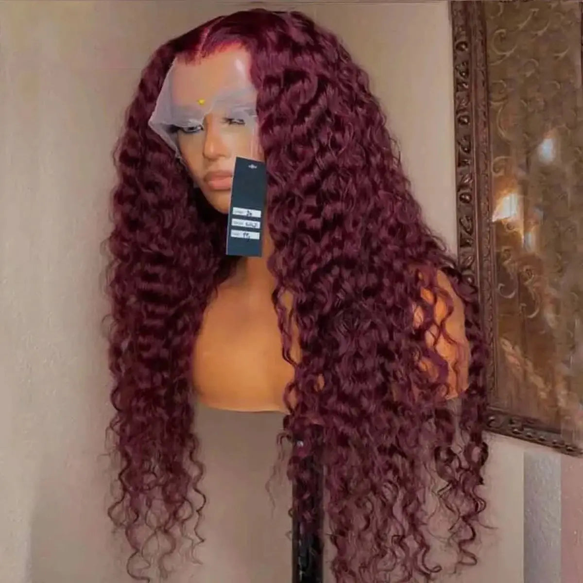 99J Red Burgundy Color Deep Wave 13X4 Lace Frontal Synthetic Wig For Women Natural Hairline Baby Hair Preplucked Bleach Knots