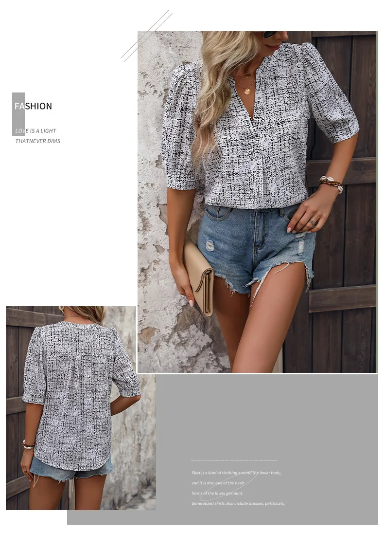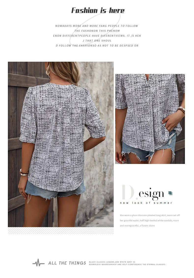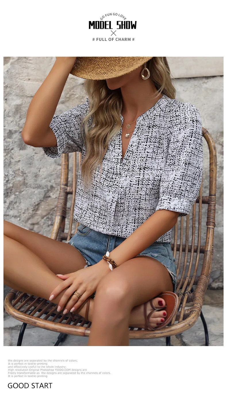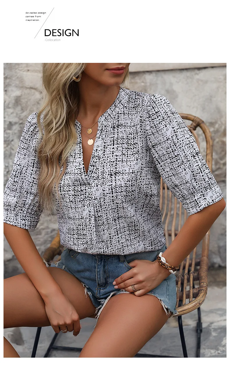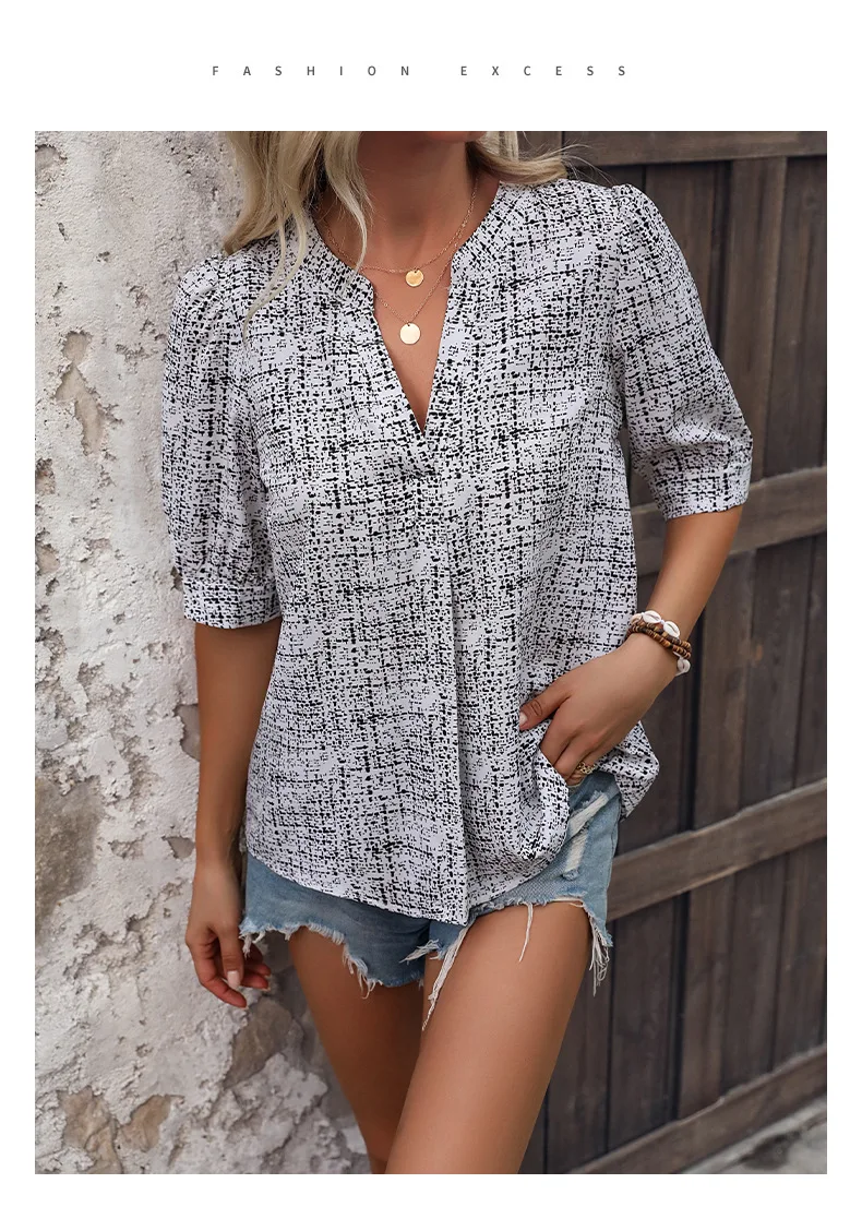 A372 All-over Printed Notched V-neck Shirt