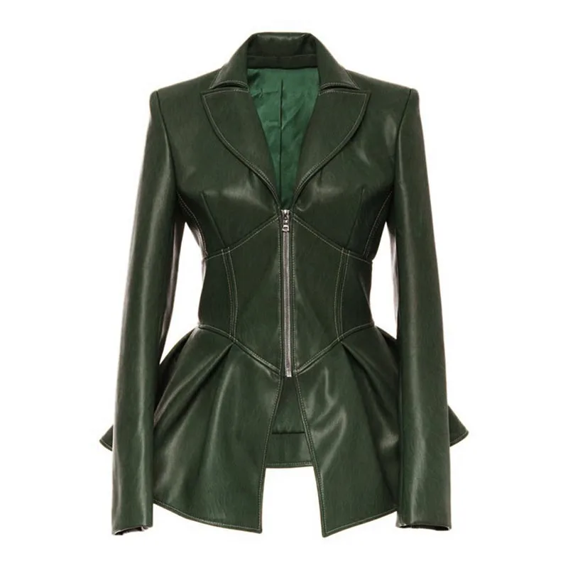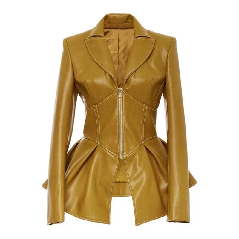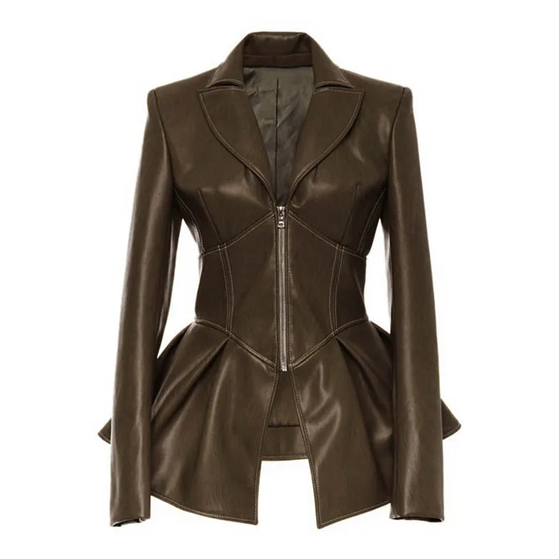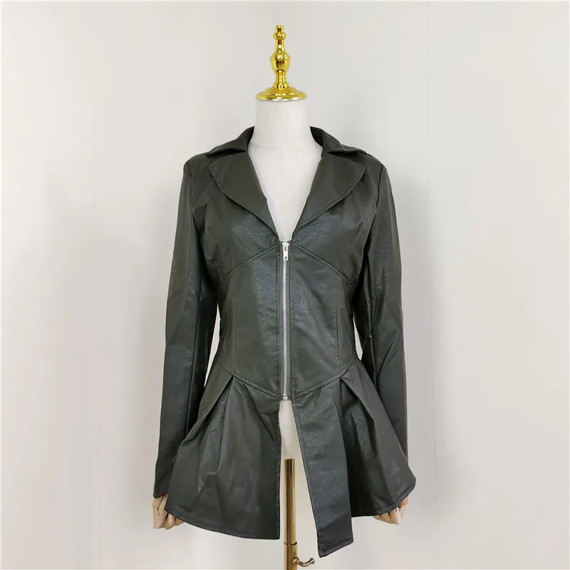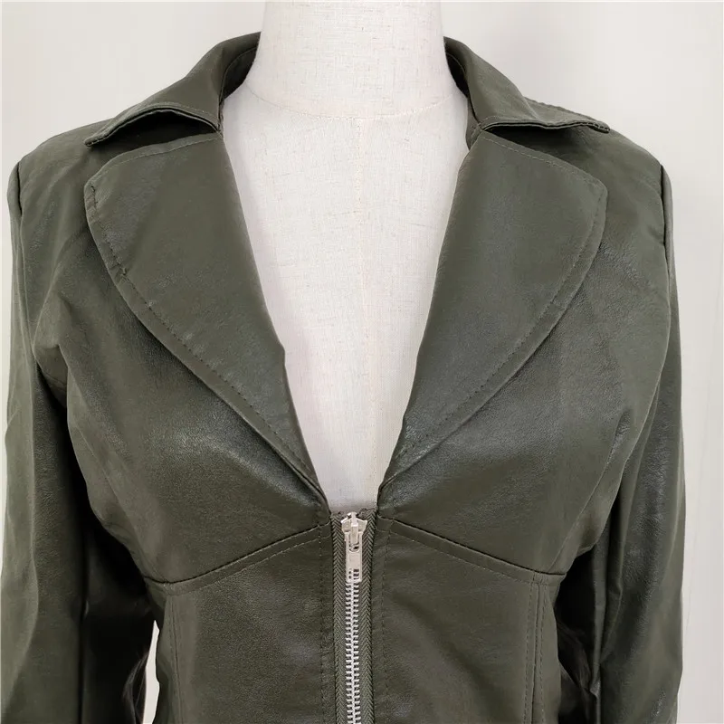 A4133 Autumn Clothing Long Sleeve Zipper Slim Casual PU Leather Jackets Women