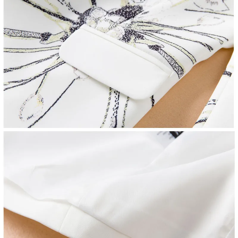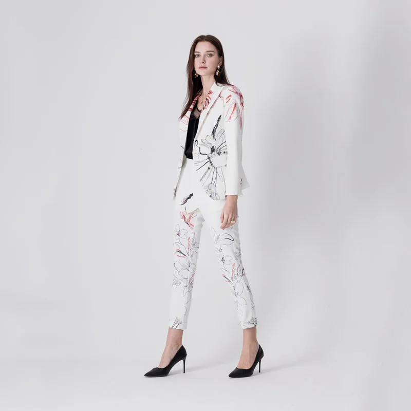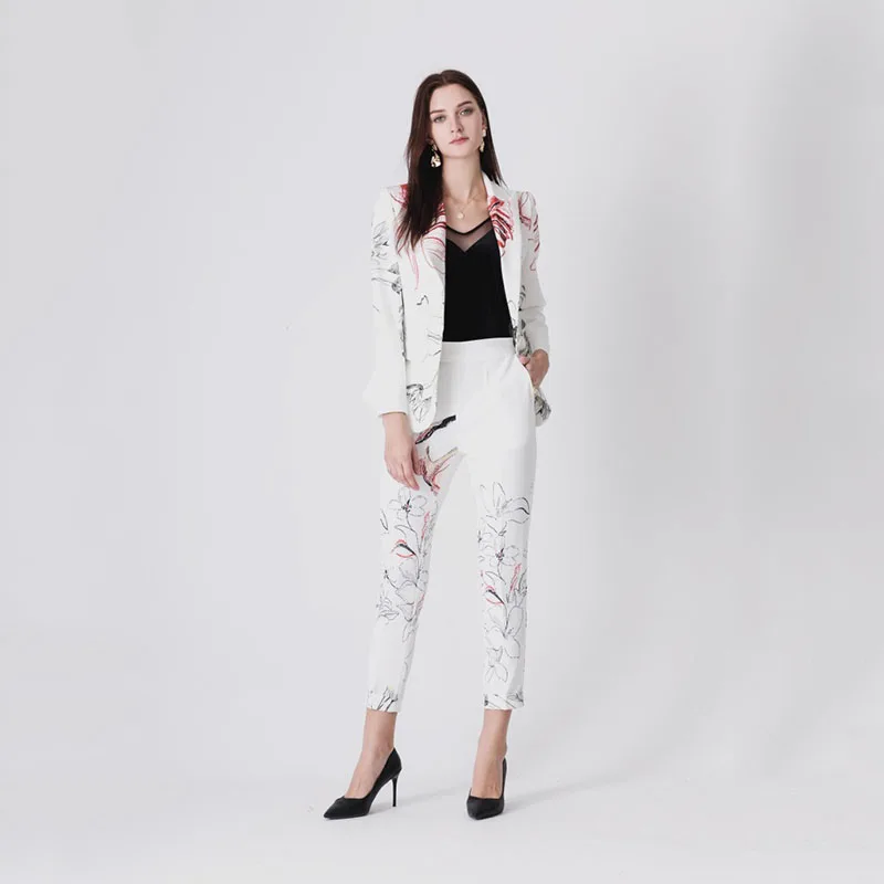 A4410 Migu Garment Office Wear Pattern Print Slim Women Two Piece Set Clothing Coat Pant