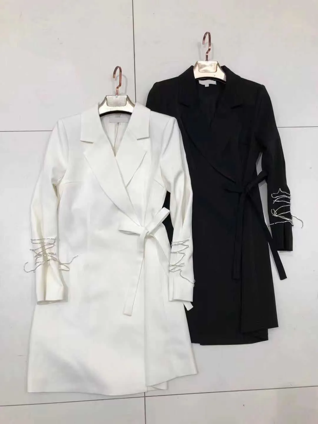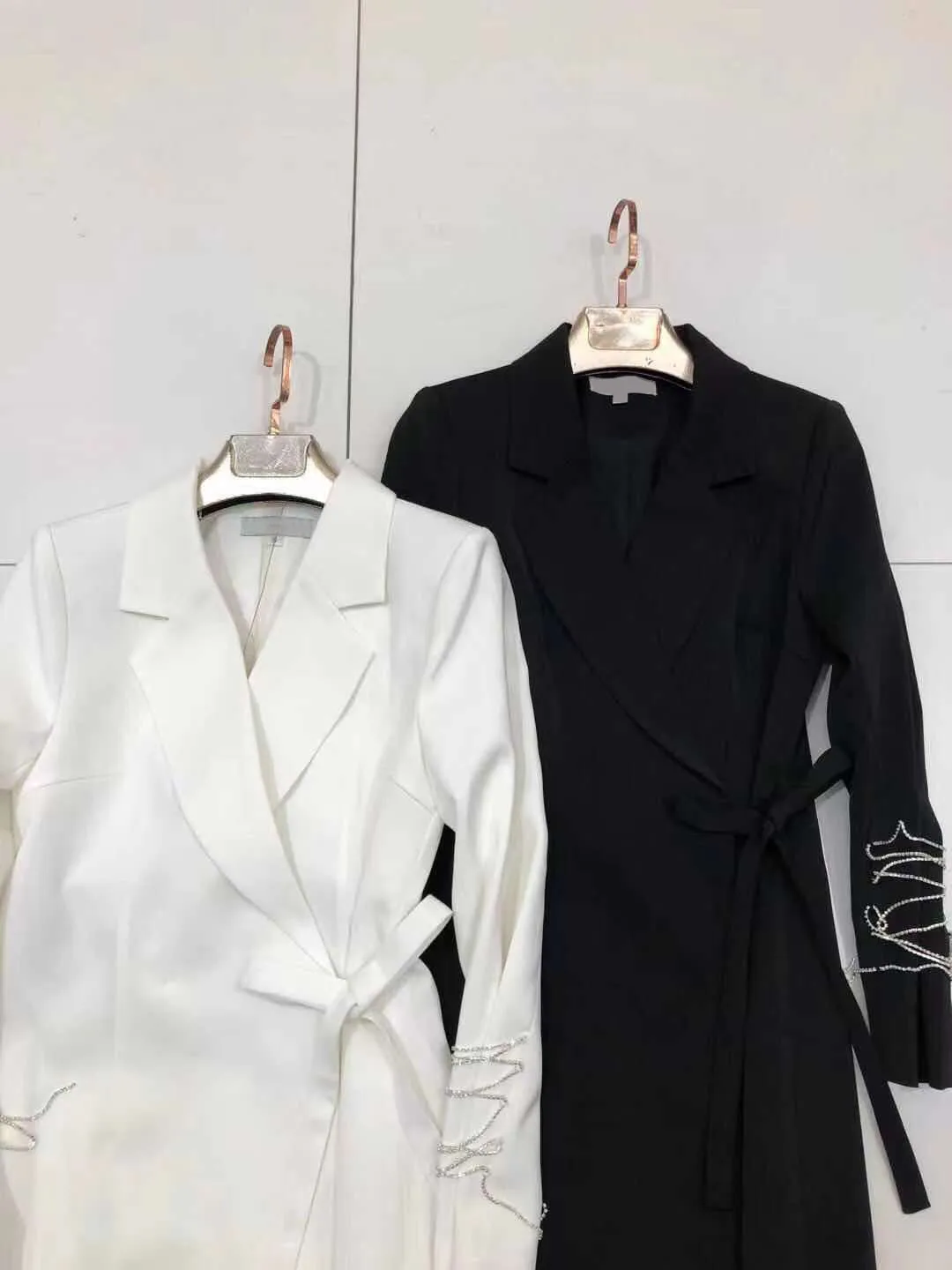 A5514 Korean Niche Fashion Women Casual Dress Rhinestone Long Sleeve Mini Shirt Dress