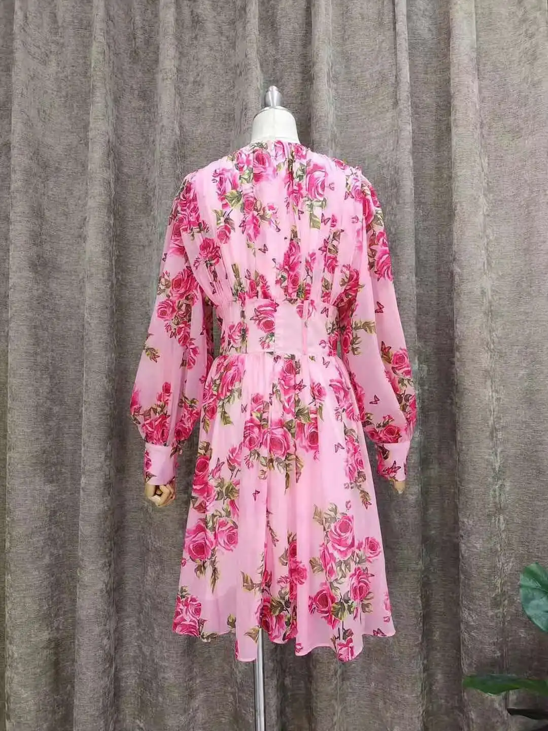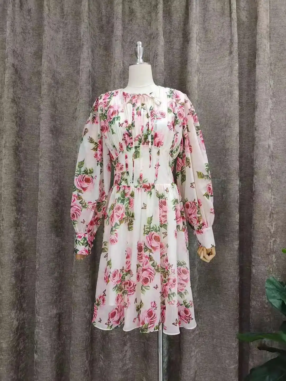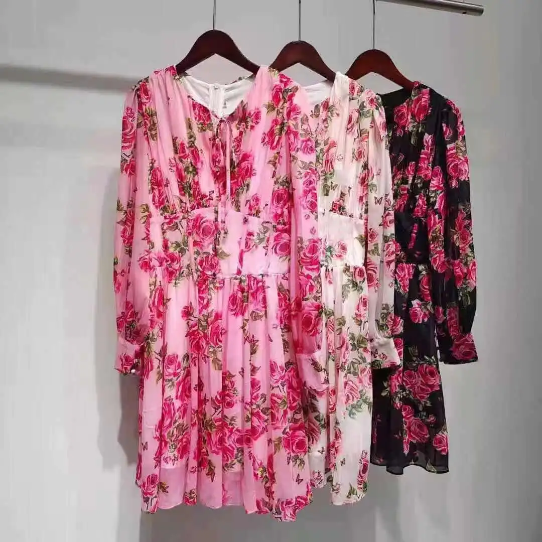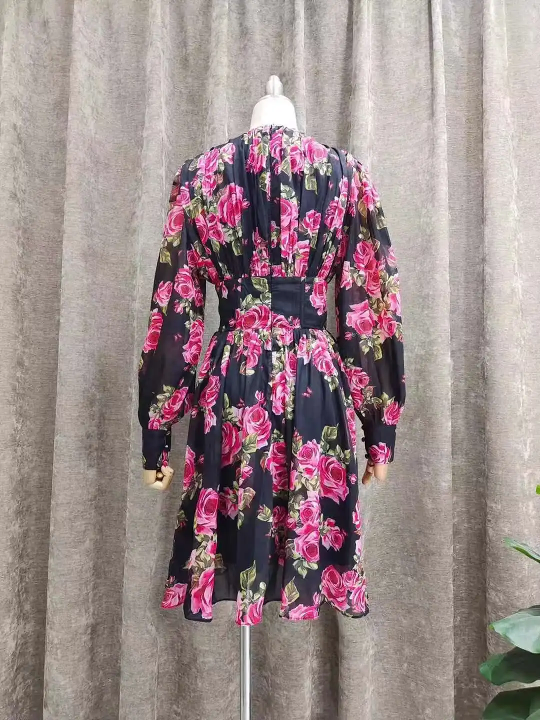 A5538 Niche Korean Floral Print Dress Chiffon Women Casual Mini Floral Dress