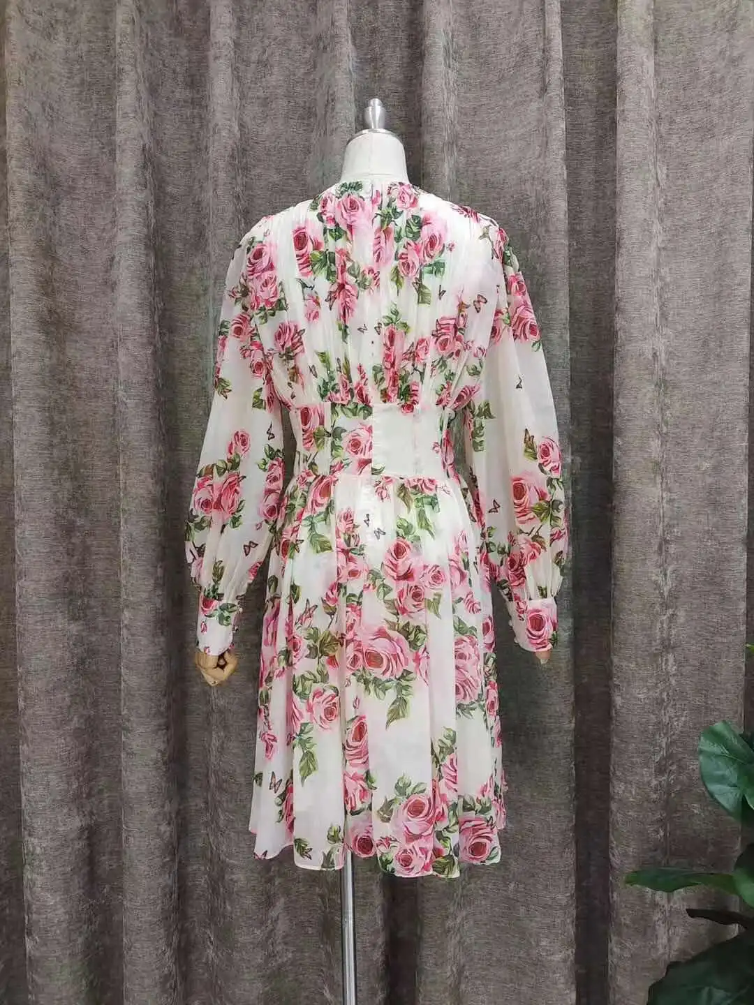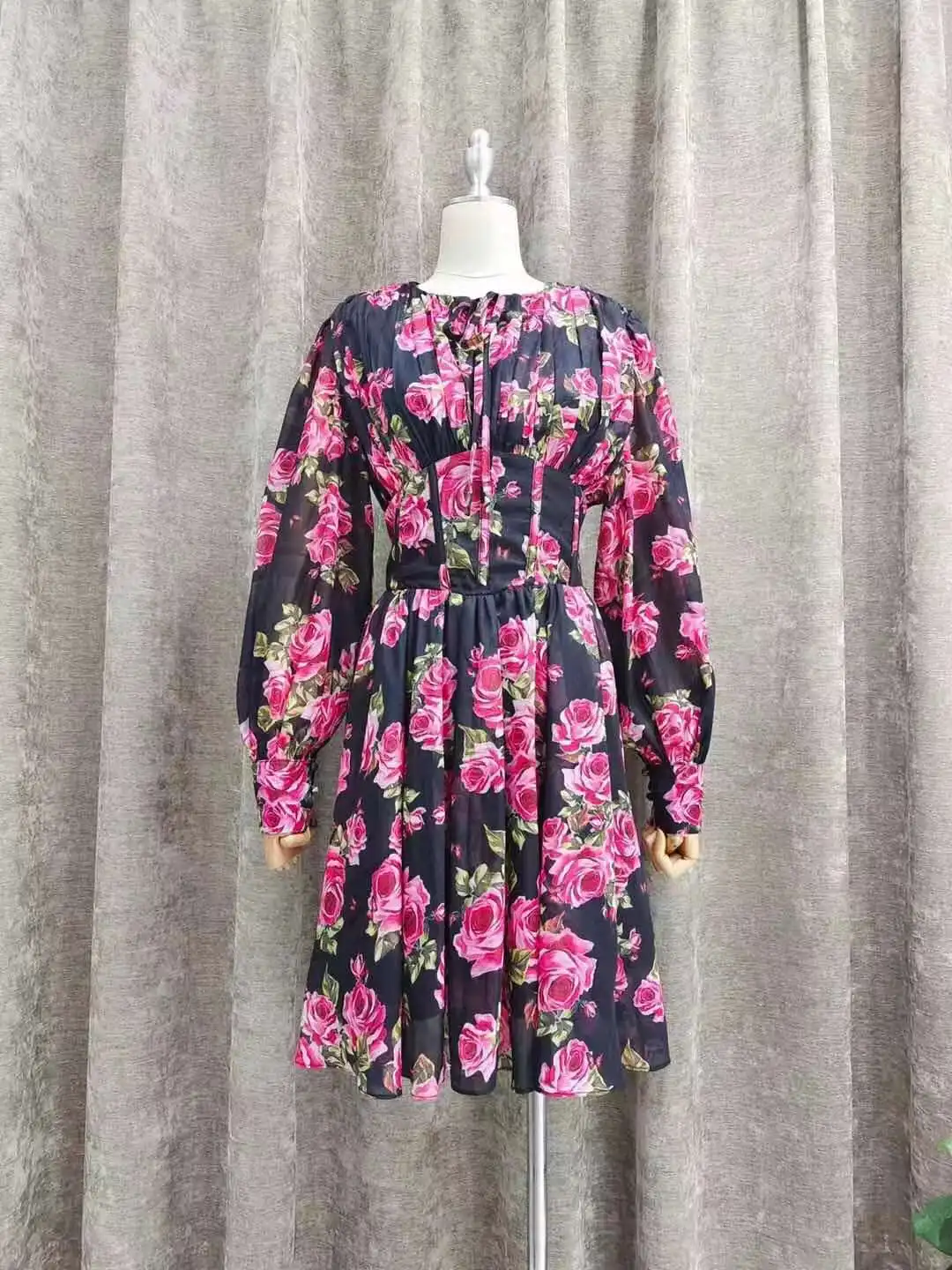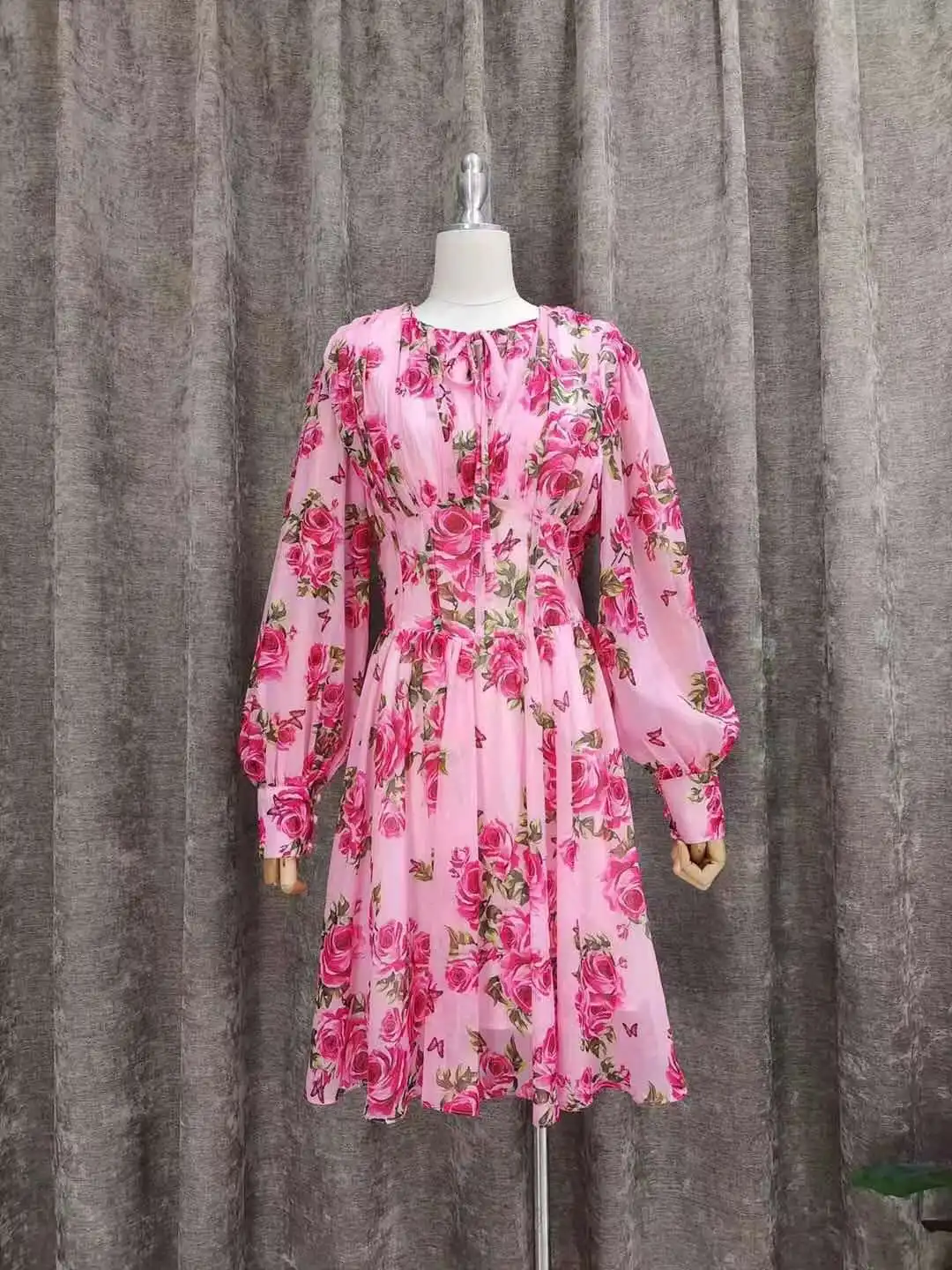 A5538 Niche Korean Floral Print Dress Chiffon Women Casual Mini Floral Dress