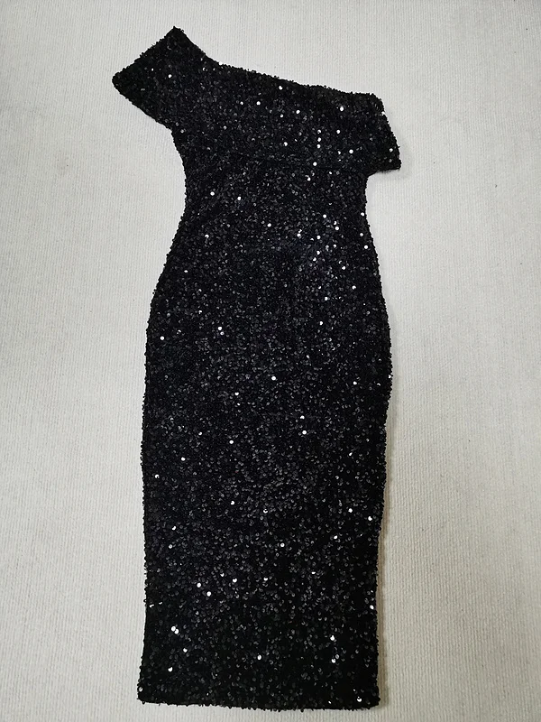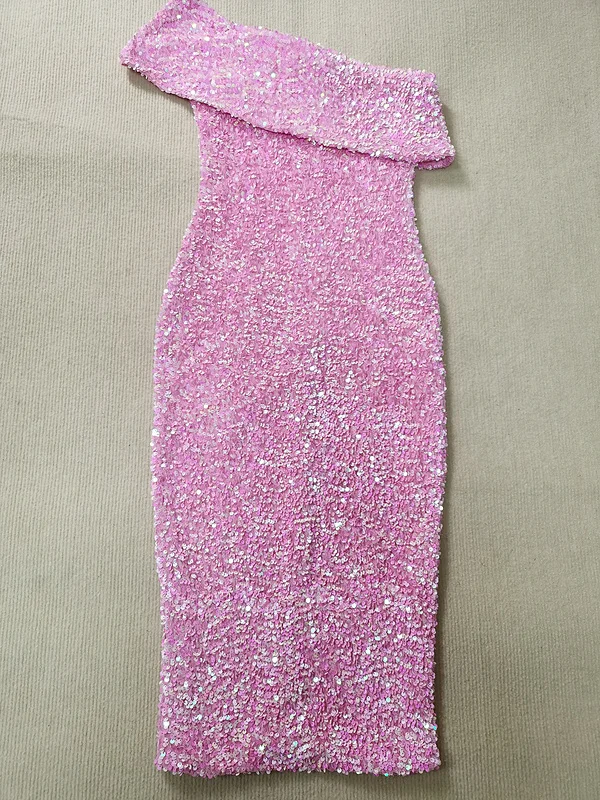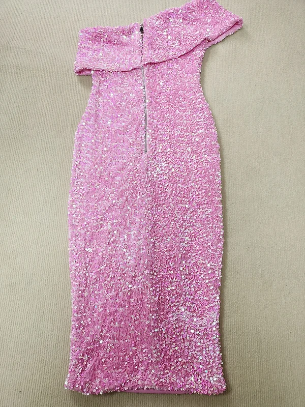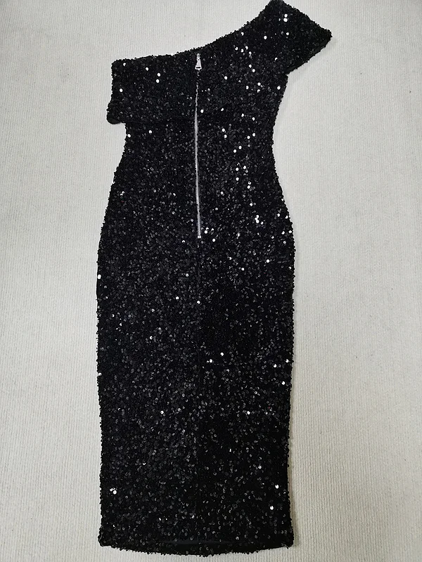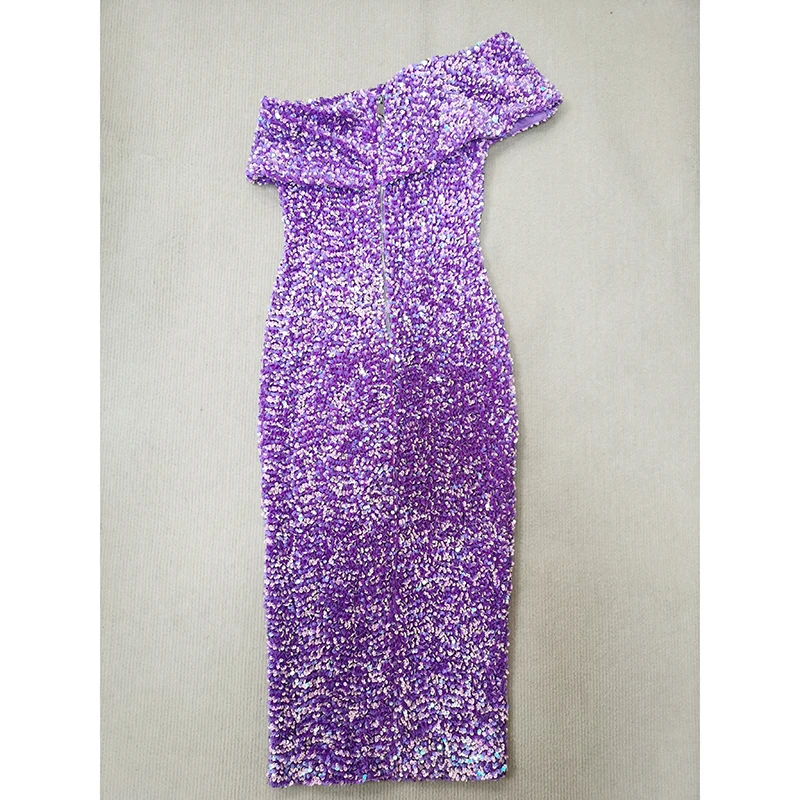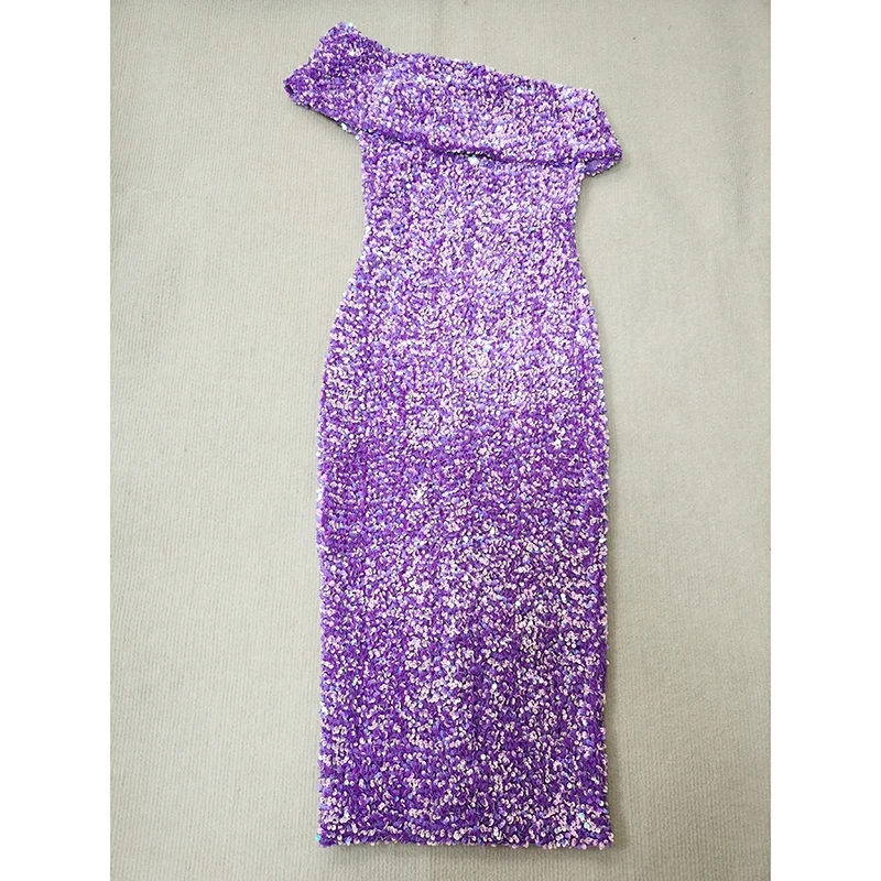 A5908 Oblique Shoulder Celebrity Fashion Sequin Evening Dress