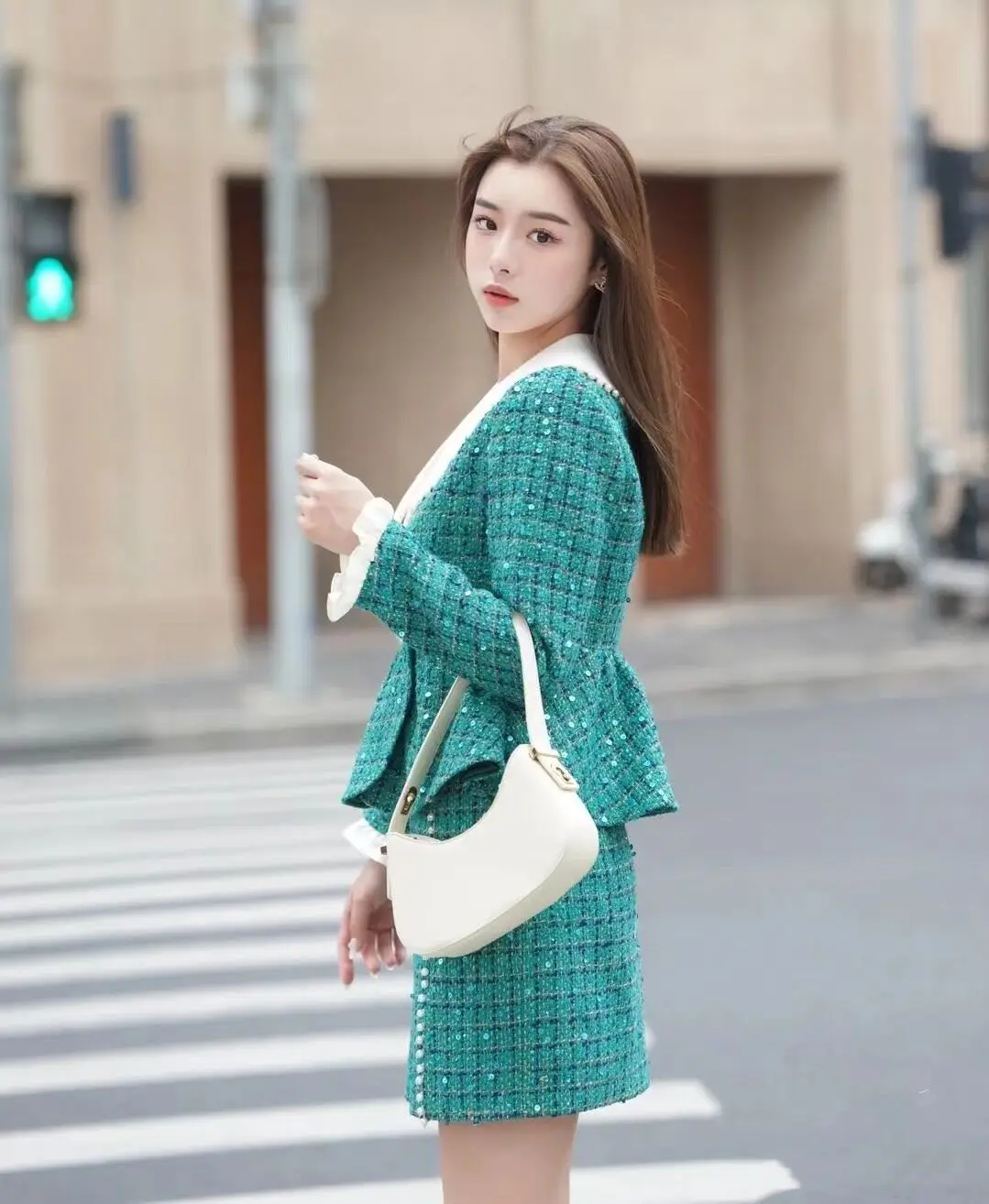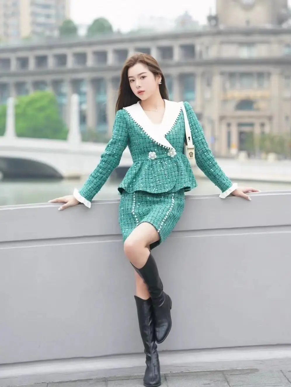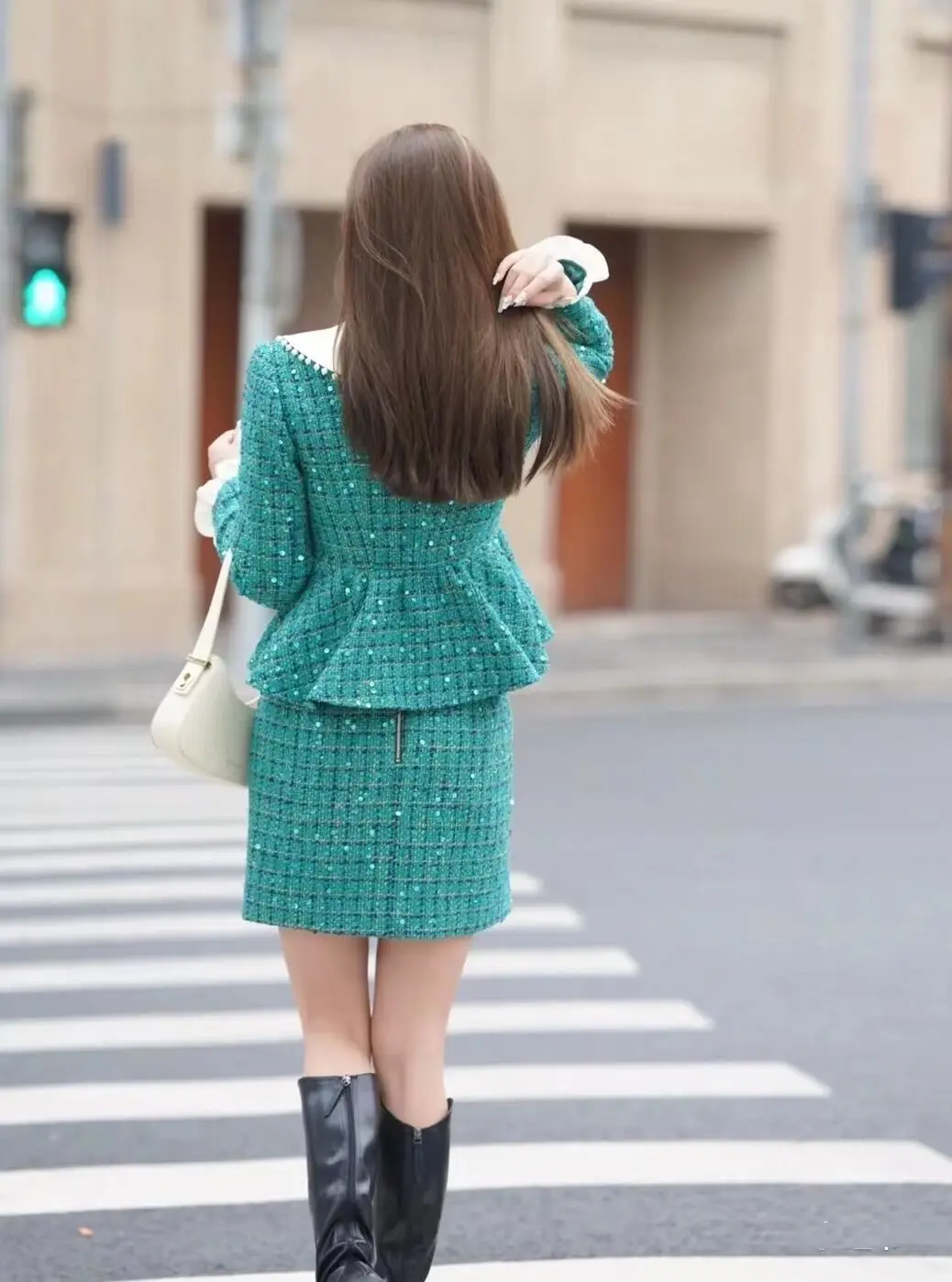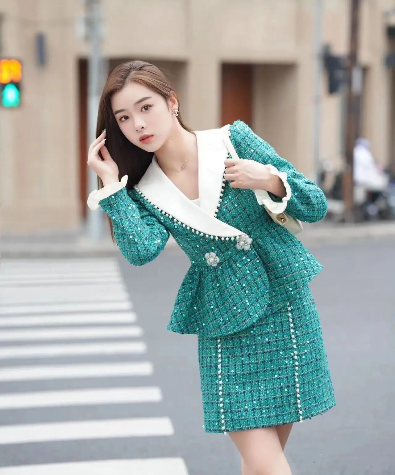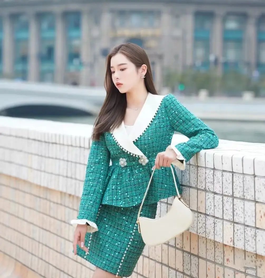 A7257 Factory Manufacturer causal suit long sleeve short top and mini skirt Casual two pieces Set