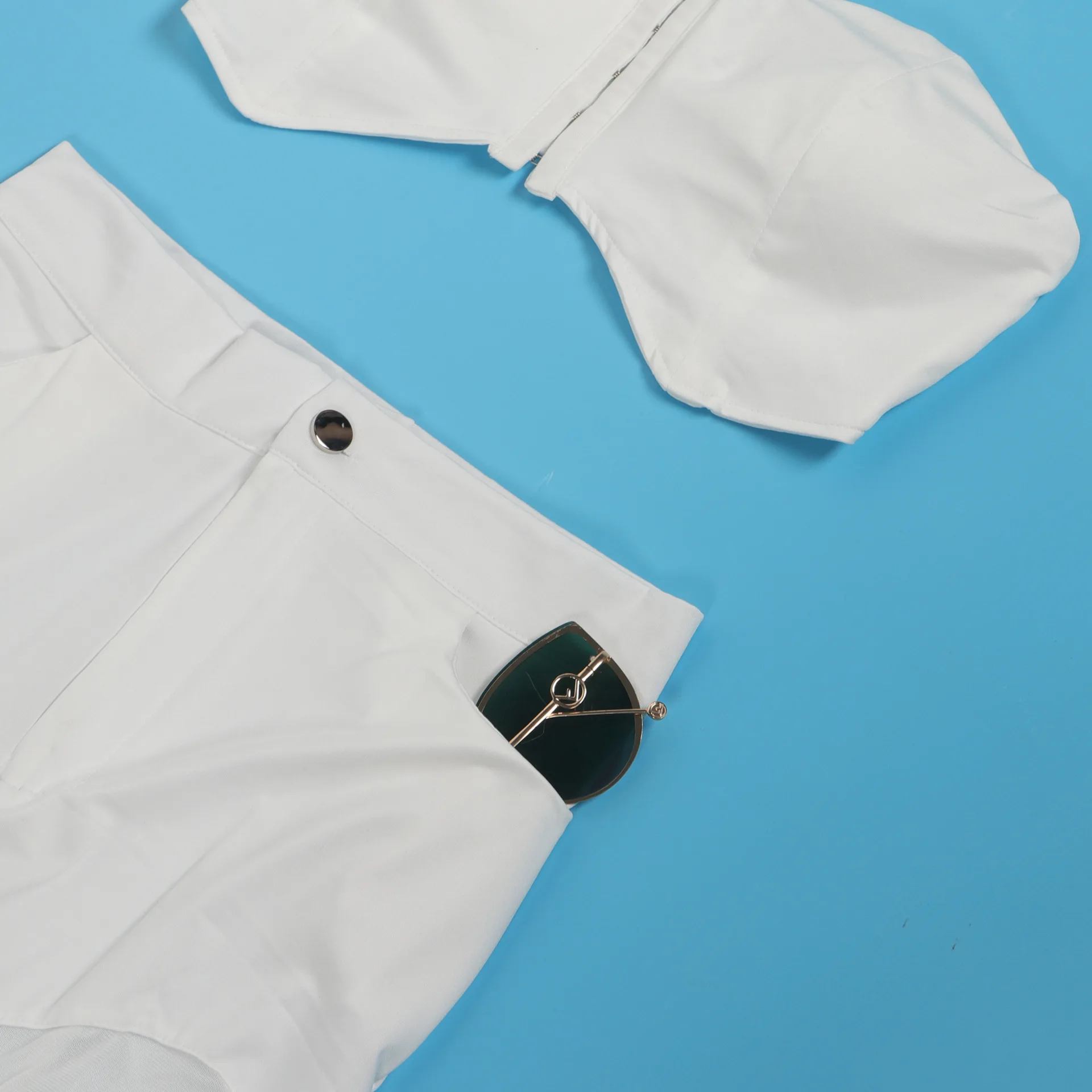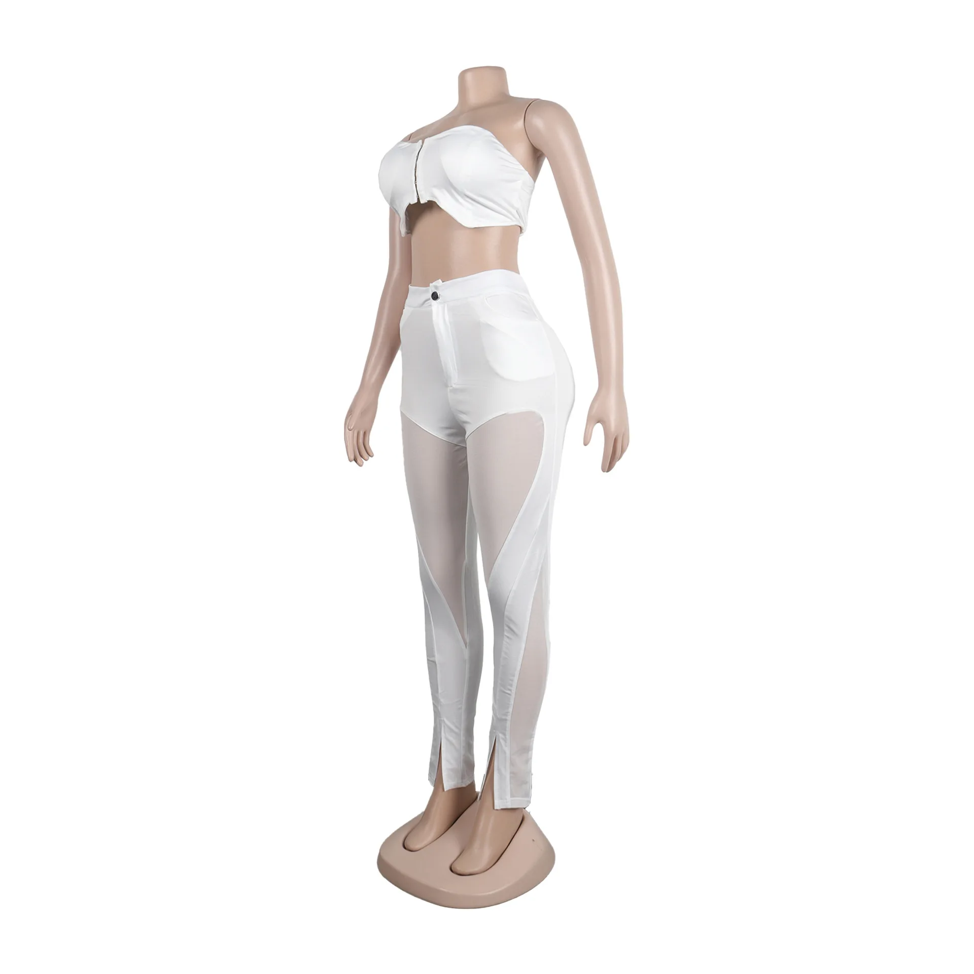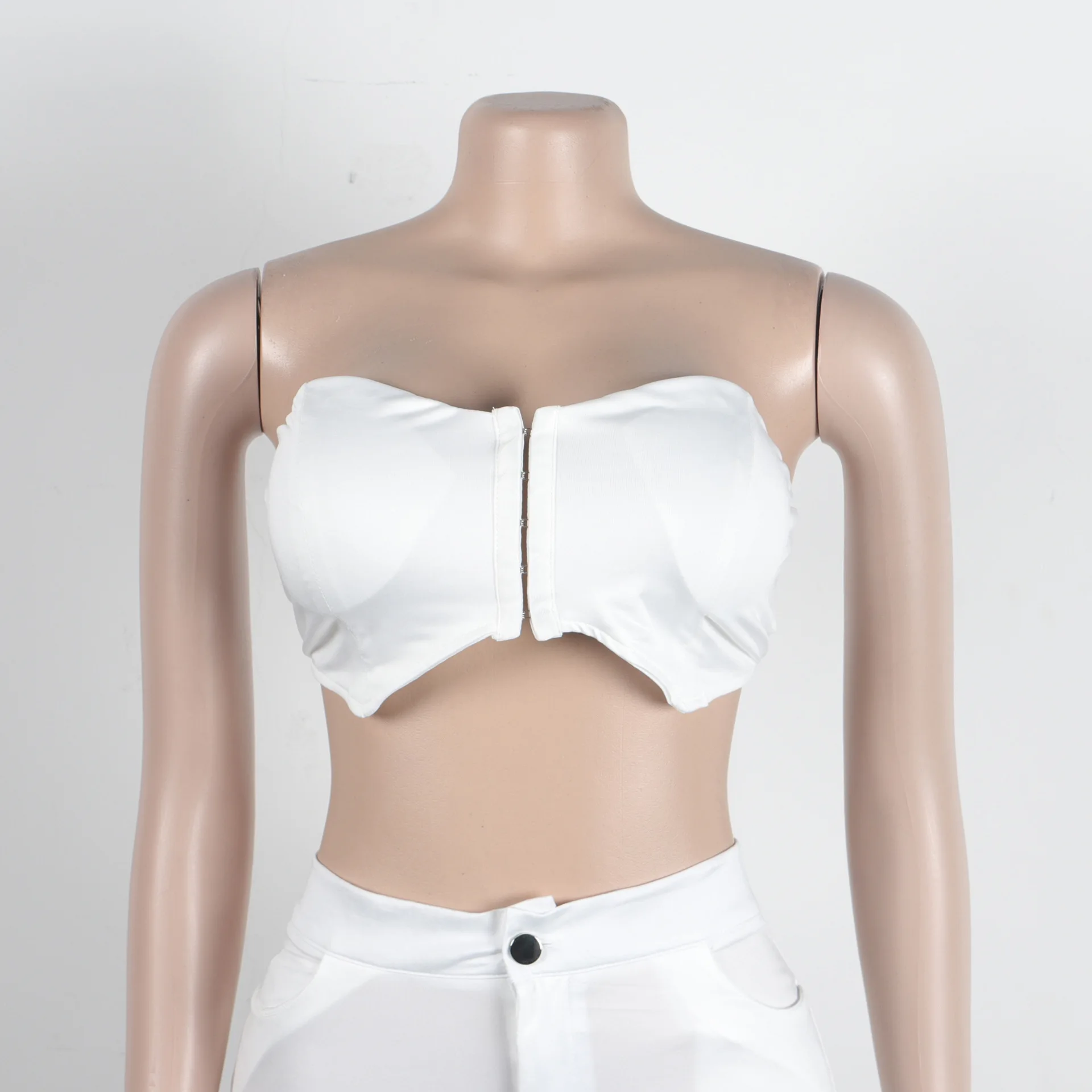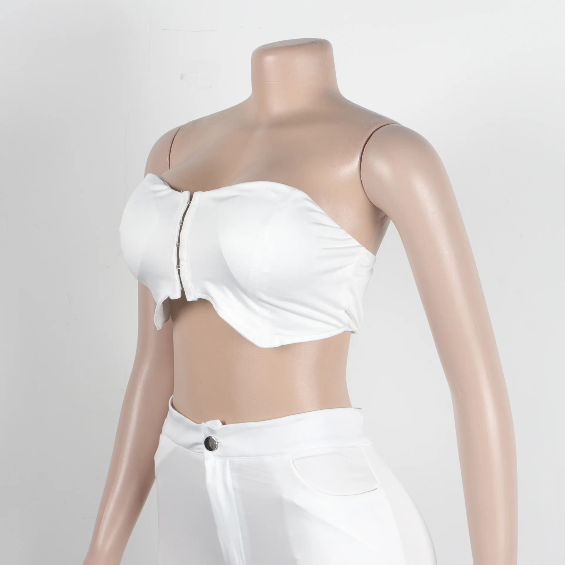 A7332 2024 Outfits For Women Solid Corset With Patchwork Pencil Pants Party Outfits Women Two Piece Set Club Set