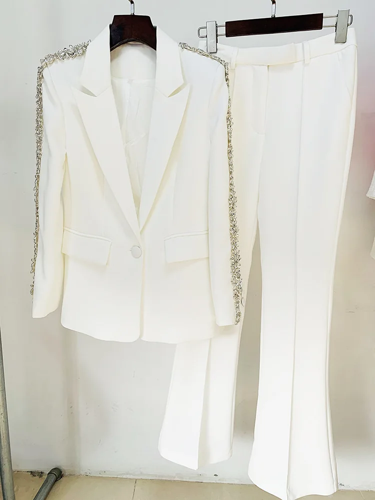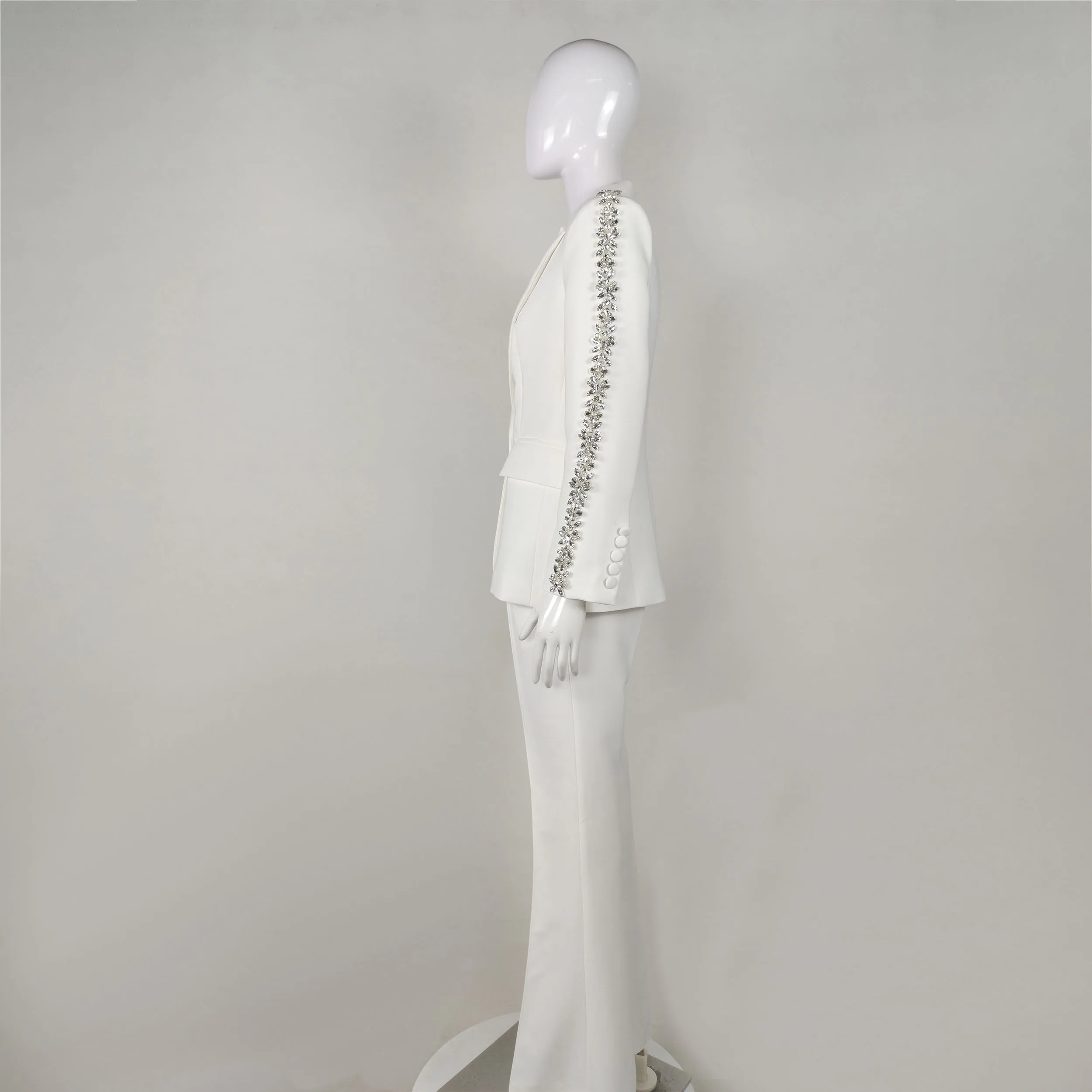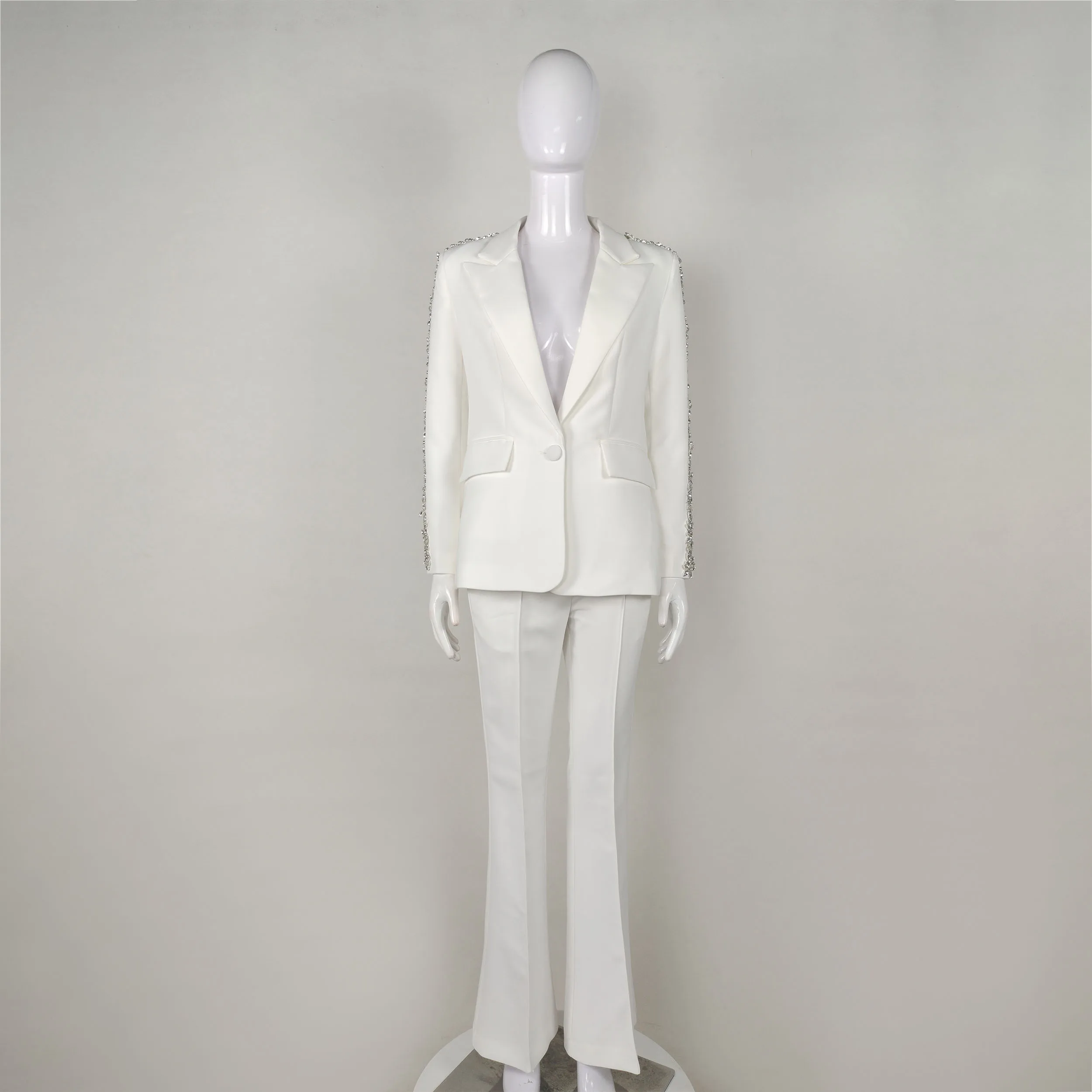 A7554 Odm clothing white Blazer and Long Pant Set Casual Women Office Lady Suit Women Suits & Tuxedo