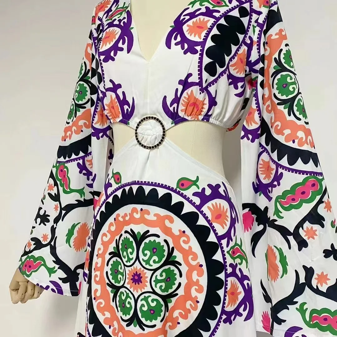 A7572 ladies women Ethnic pattern dress Beach Boho dresses