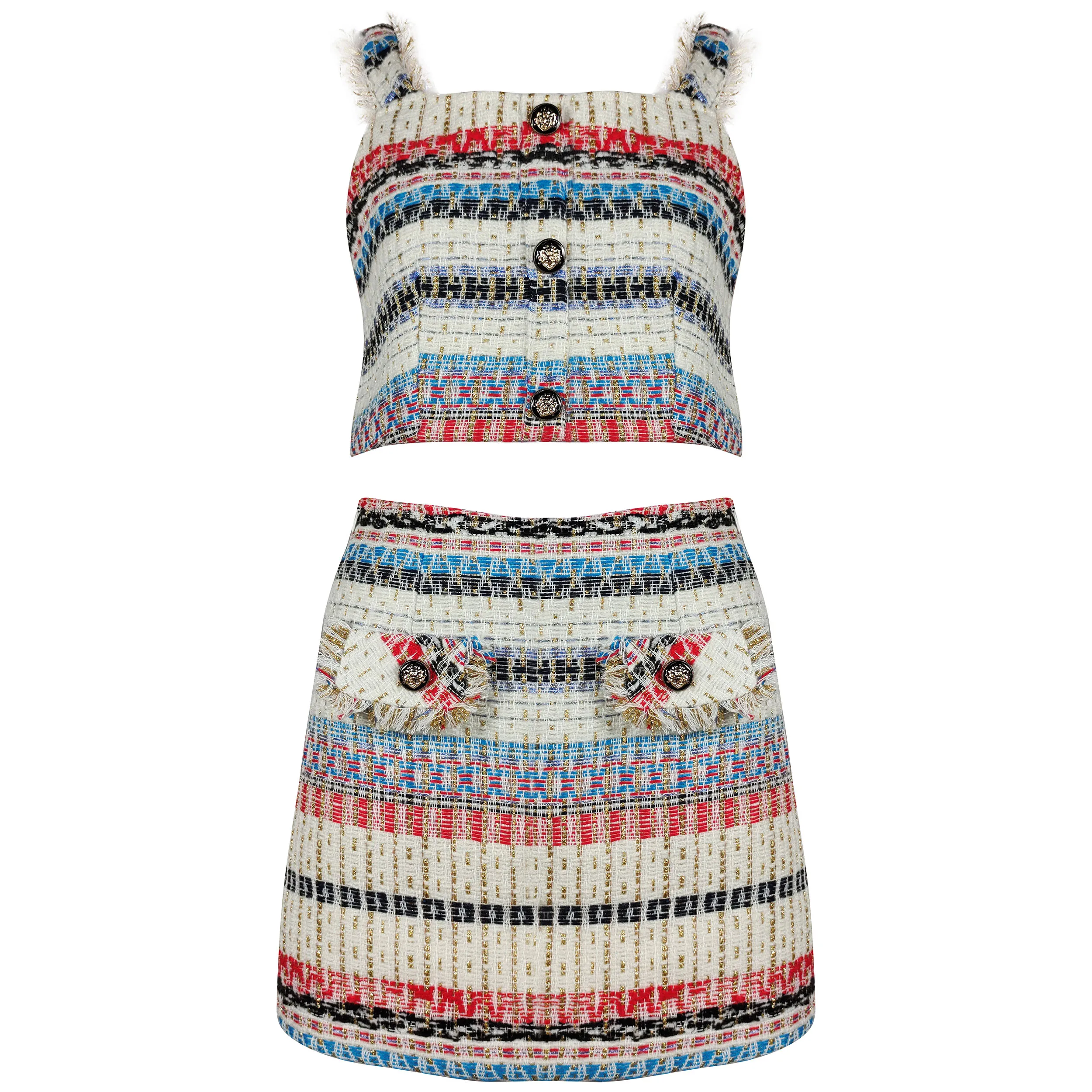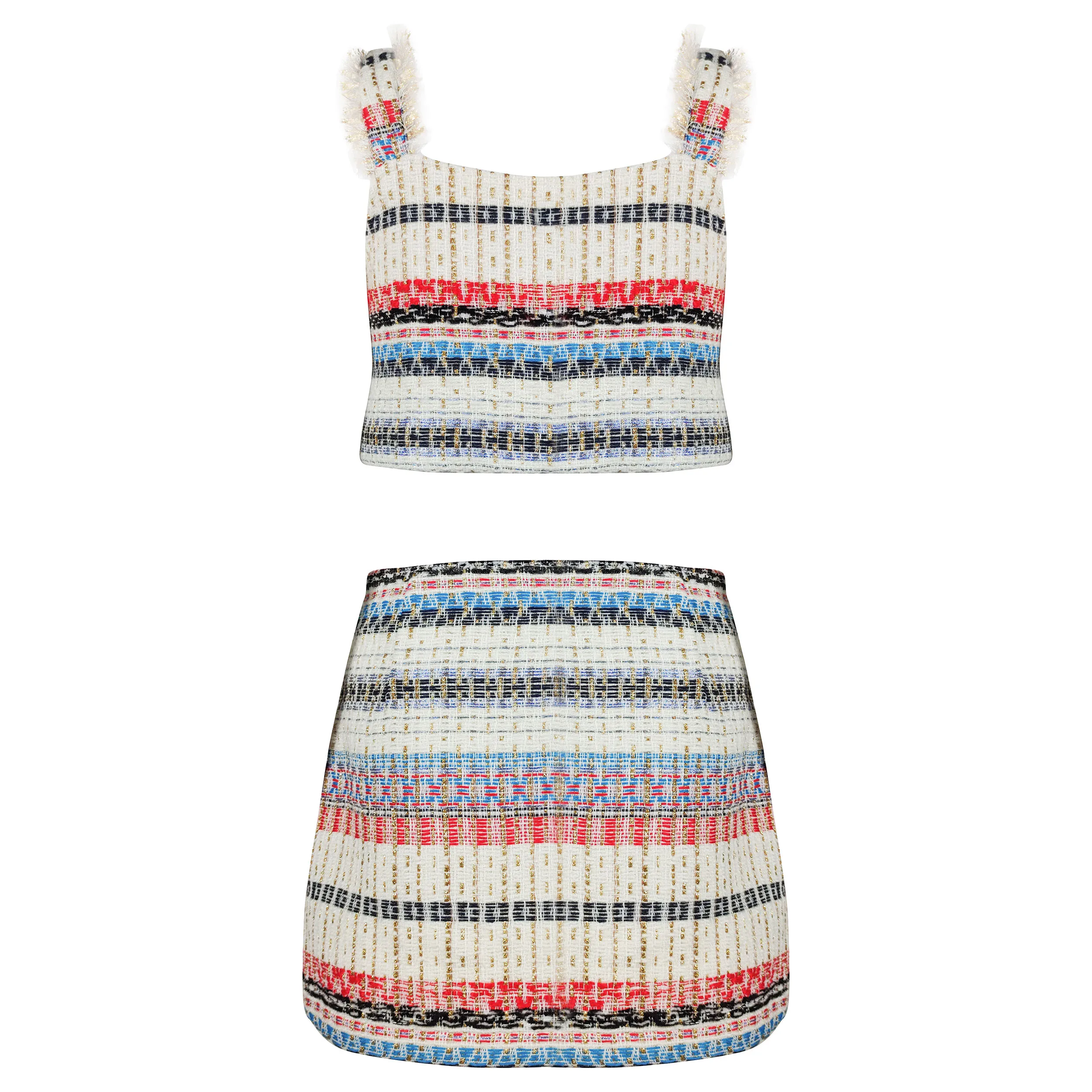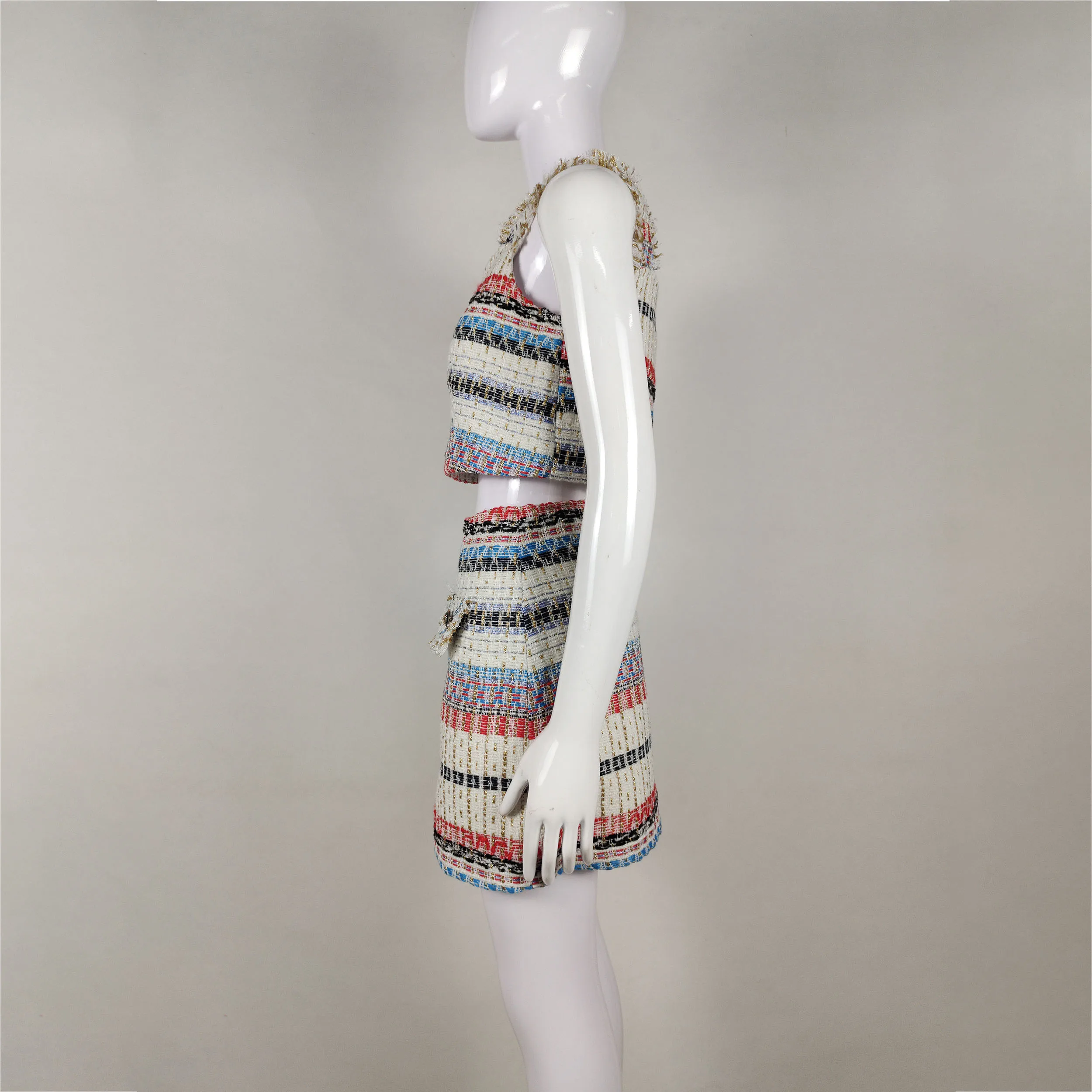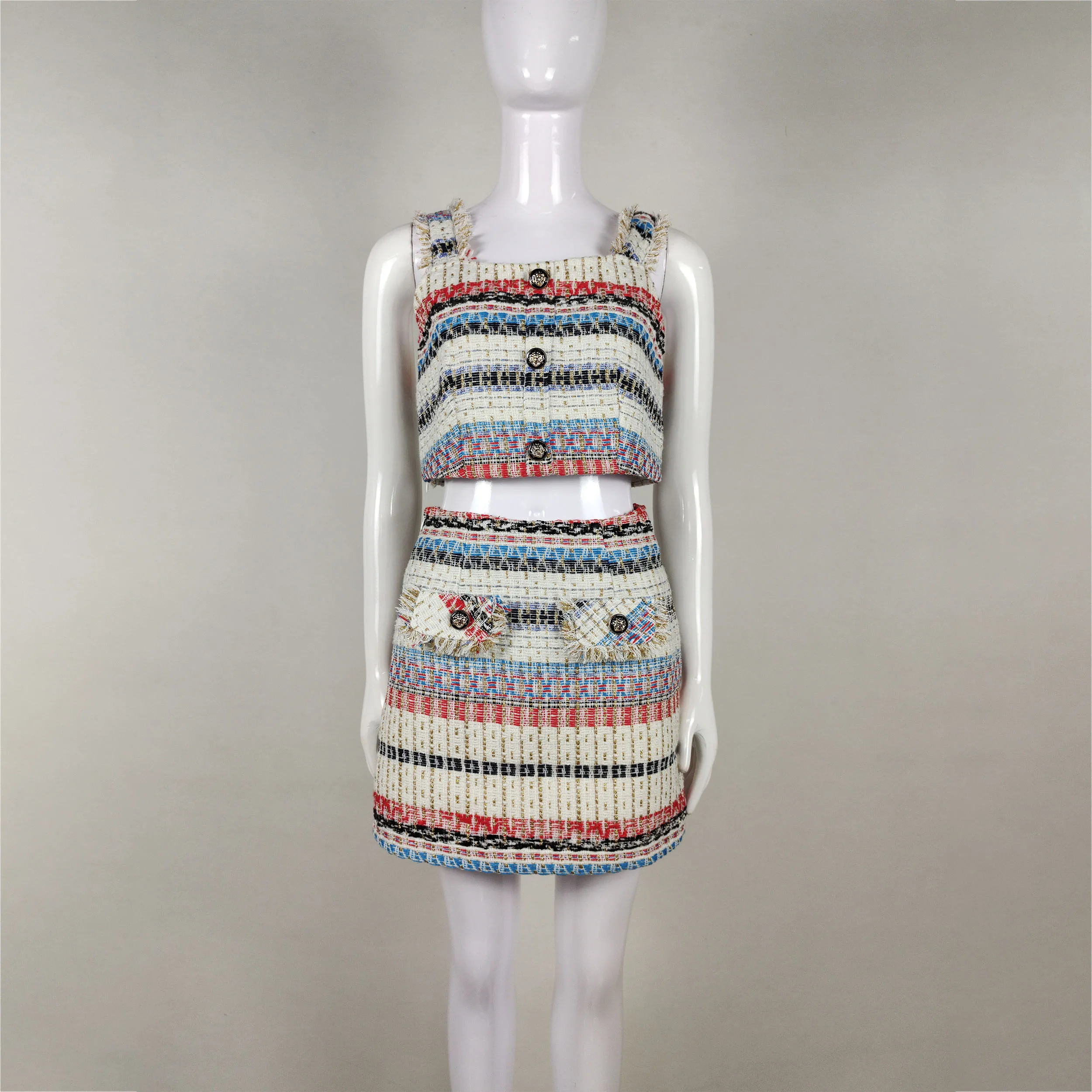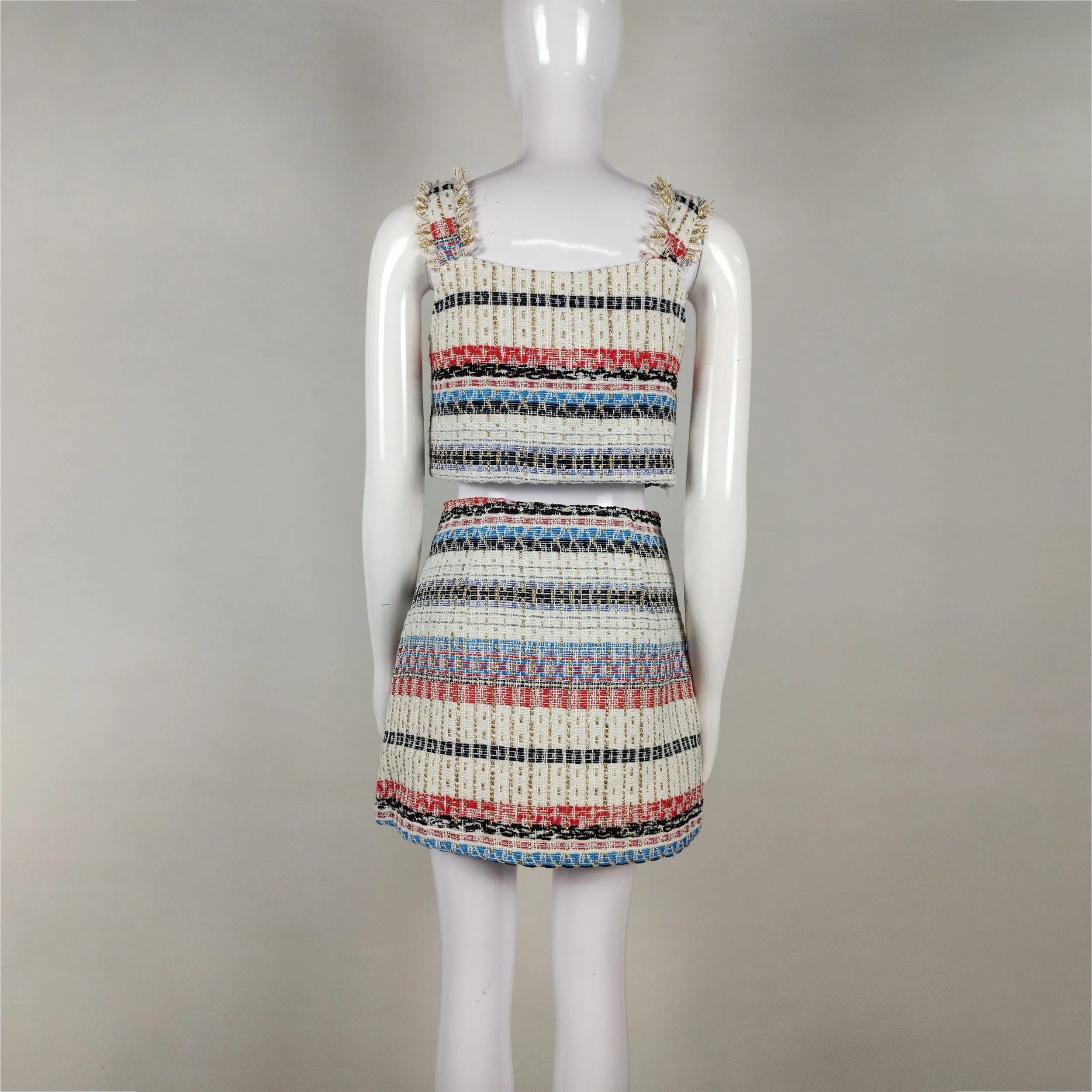 A7629 Fashionable colorful Bohemian style sleeveless mini sweater crop top and mini skirt suit women summer causal
